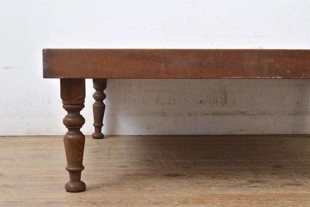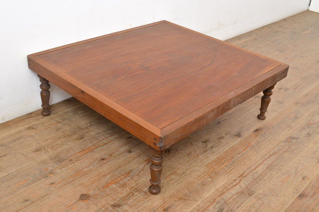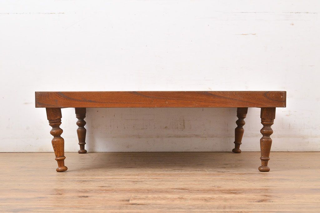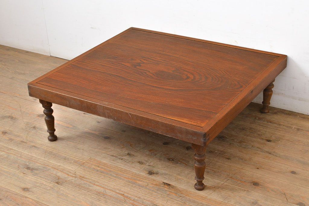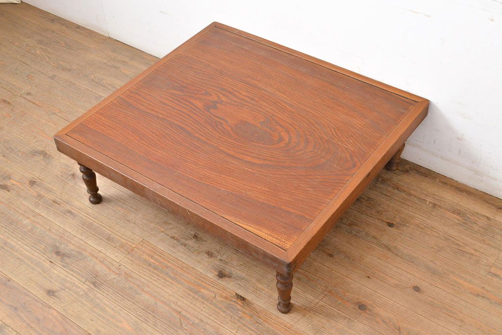 ラフジュ工房> テーブル> 座卓 > 和製アンティーク 総ケヤキ材 挽き物の脚が目を惹く角ちゃぶ台(座卓、ローテーブル、折り畳みテーブル)(R-051423)