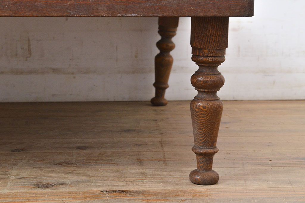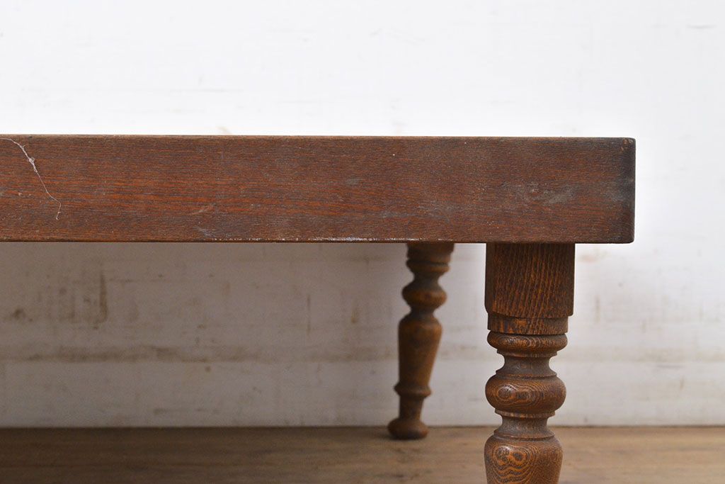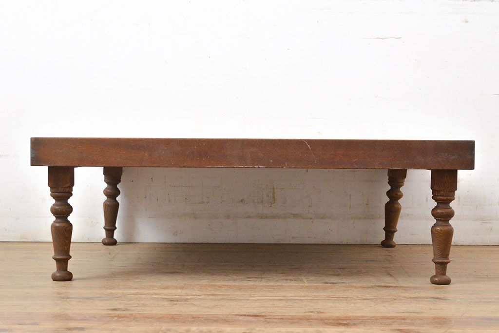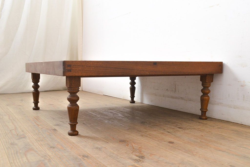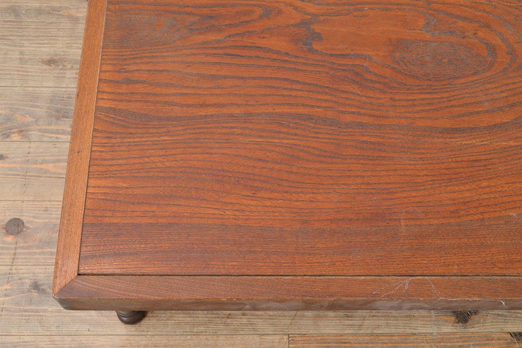 ラフジュ工房> テーブル> 座卓 > 和製アンティーク 総ケヤキ材 挽き物の脚が目を惹く角ちゃぶ台(座卓、ローテーブル、折り畳みテーブル)(R-051423)
