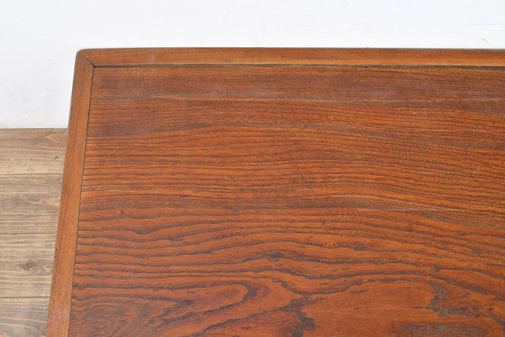 ラフジュ工房> 古家具> 古家具-テーブル > 和製アンティーク 総ケヤキ材 挽き物の脚が目を惹く角ちゃぶ台(座卓、ローテーブル、折り畳みテーブル)(R-051423)