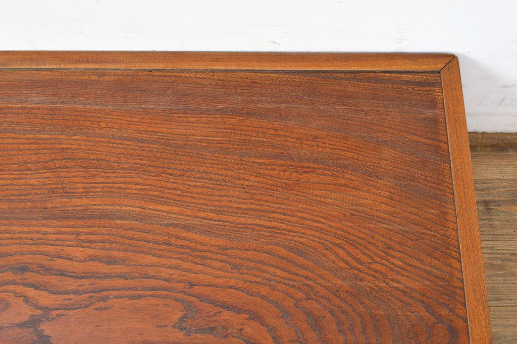 和製アンティーク 総ケヤキ材 挽き物の脚が目を惹く角ちゃぶ台(座卓、ローテーブル、折り畳みテーブル)(R-051423)