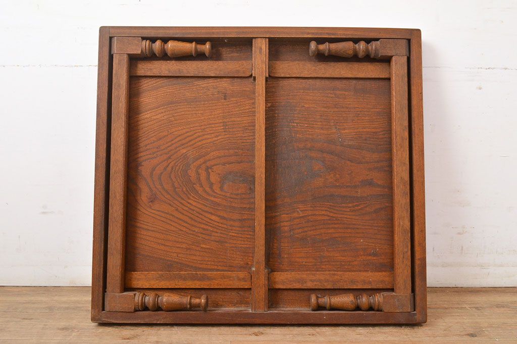 ラフジュ工房> 古家具 > 和製アンティーク 総ケヤキ材 挽き物の脚が目を惹く角ちゃぶ台(座卓、ローテーブル、折り畳みテーブル)(R-051423)