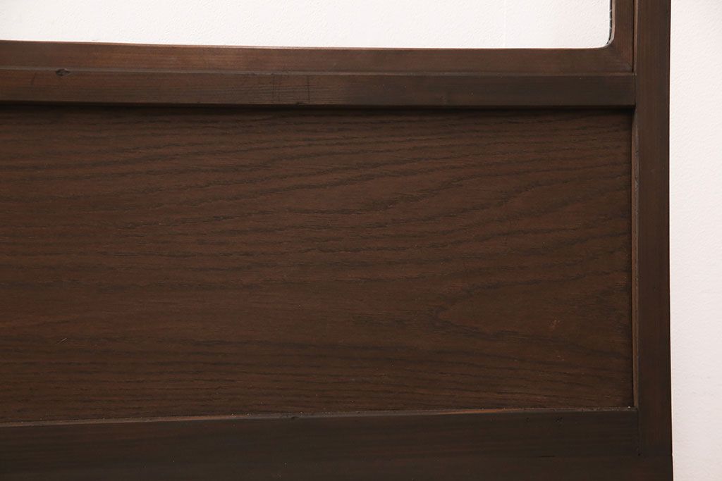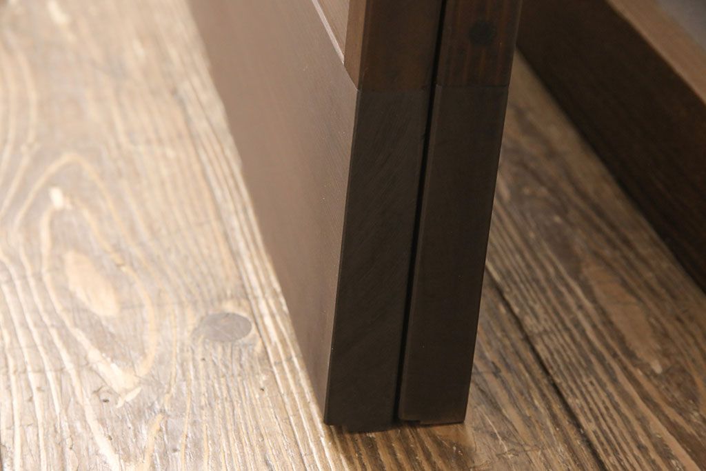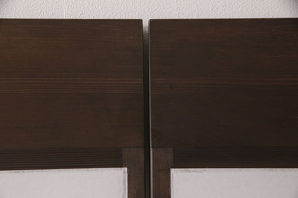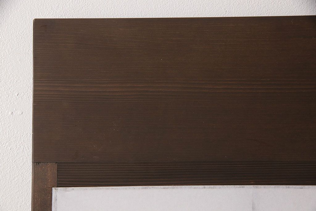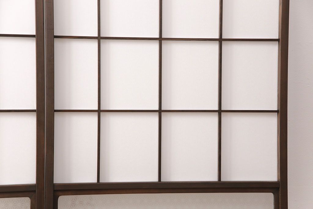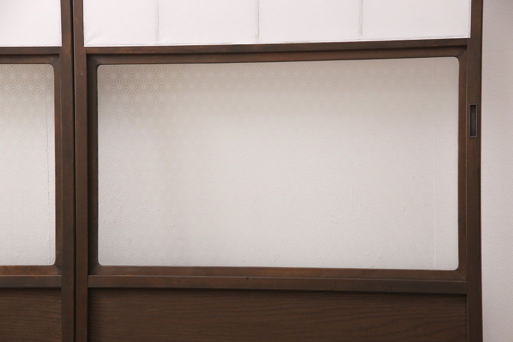 升格子の障子戸2枚をリペア&カスタム!高さ・幅をリサイズ。ガラスを麻の葉模様ガラスに入れ替え。濃い茶色で着色し仕上げ。(引き戸、建具)