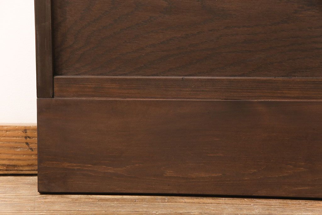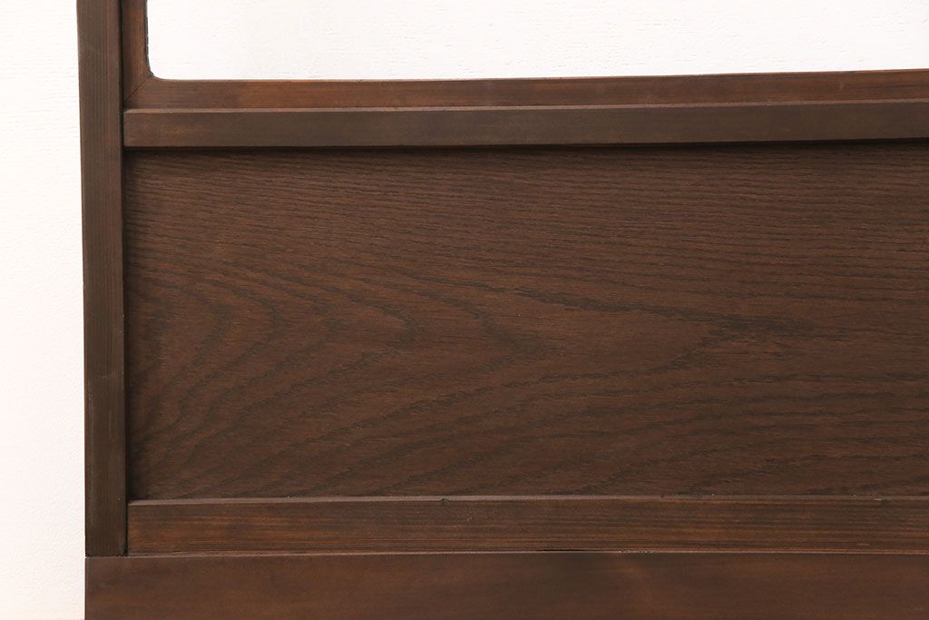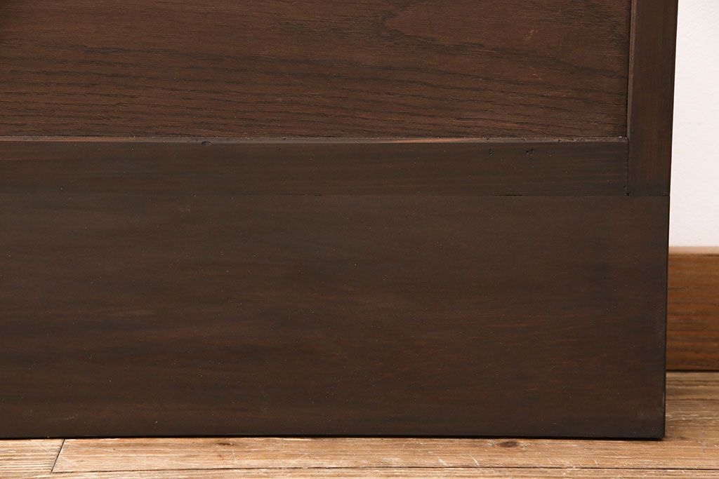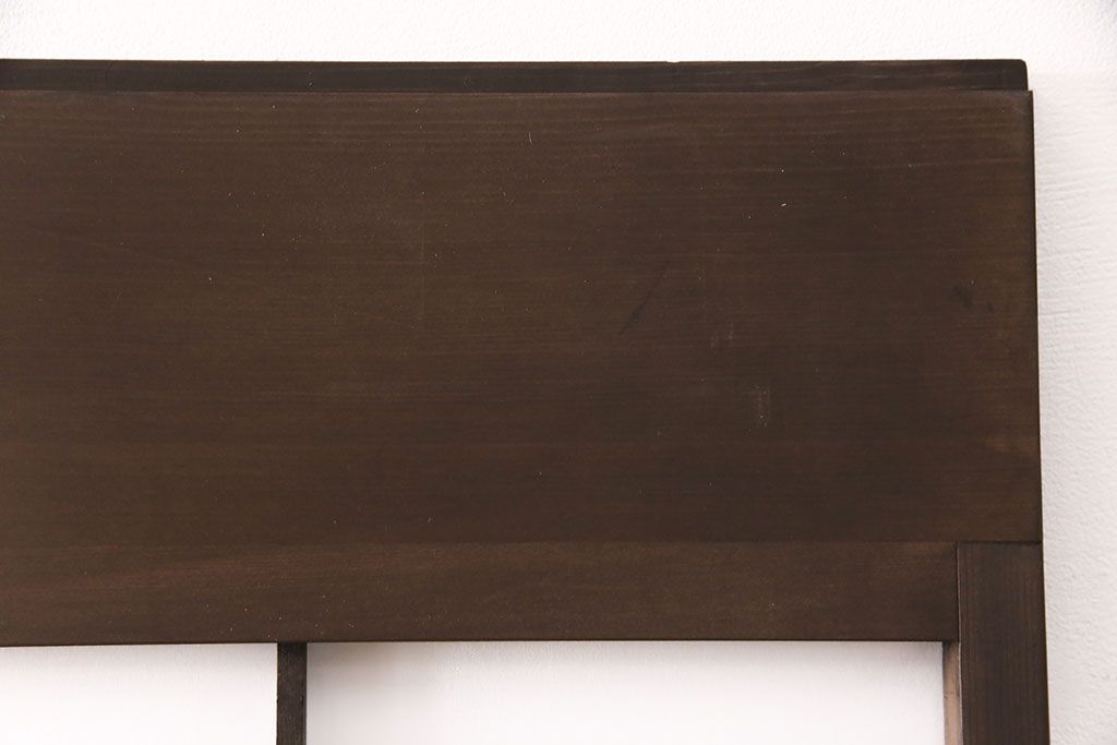 セミオーダー家具実績 > 升格子の障子戸2枚をリペア&カスタム!高さ・幅をリサイズ。ガラスを麻の葉模様ガラスに入れ替え。濃い茶色で着色し仕上げ。(引き戸、建具)