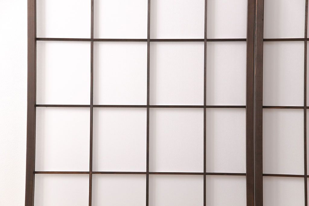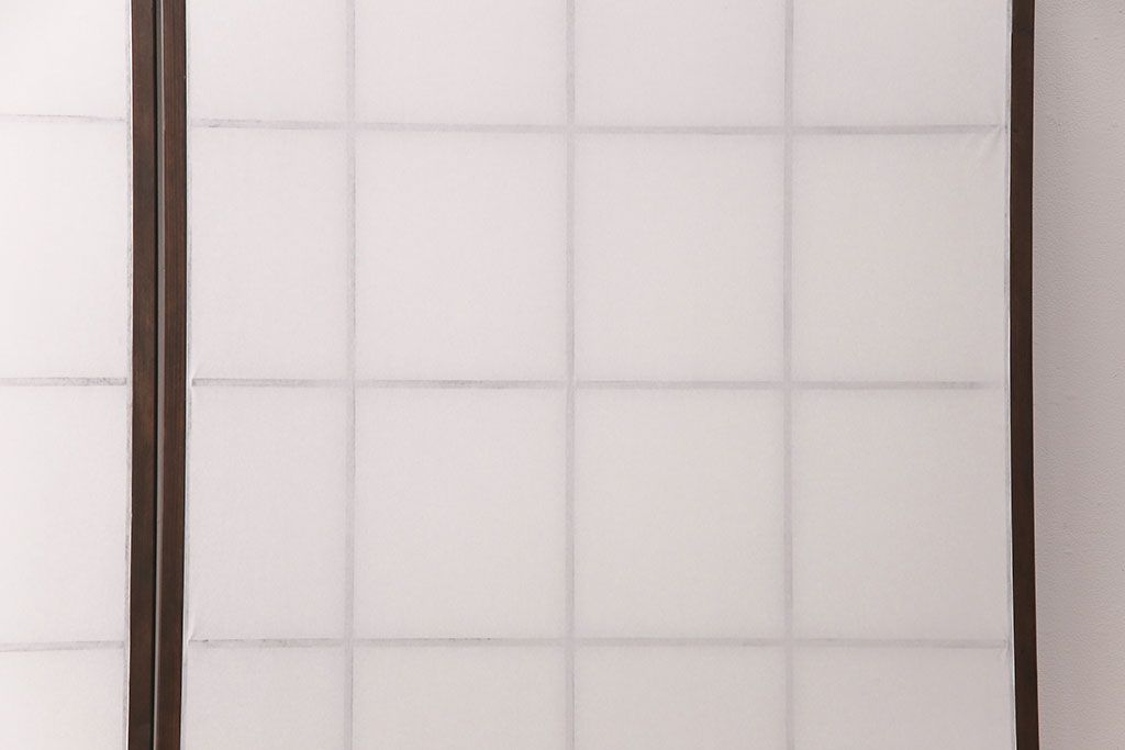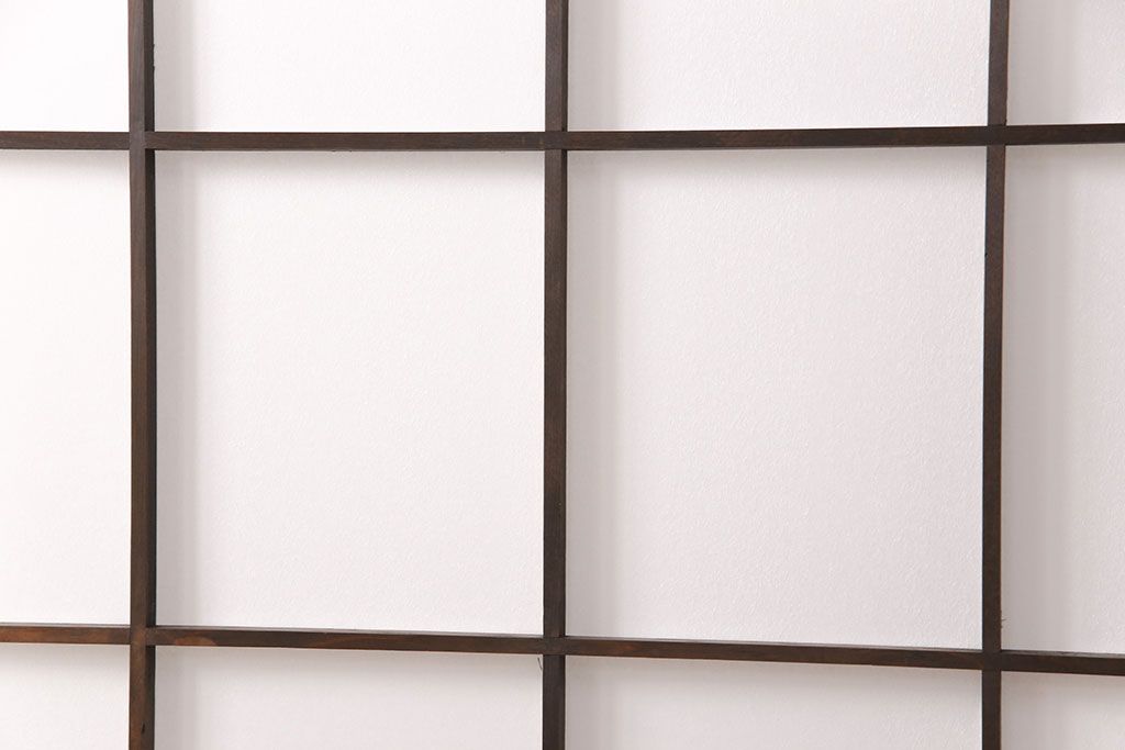 ドア・建具> 格子戸 > 升格子の障子戸2枚をリペア&カスタム!高さ・幅をリサイズ。ガラスを麻の葉模様ガラスに入れ替え。濃い茶色で着色し仕上げ。(引き戸、建具)