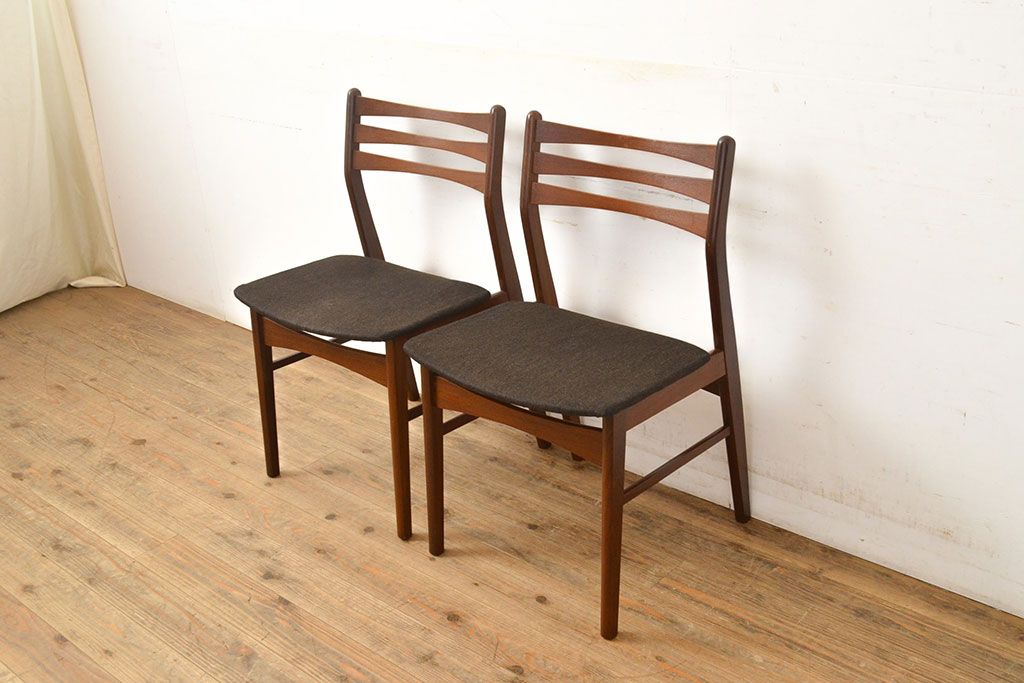 北欧ヴィンテージ チーク材 メンズライクなお部屋にも合う、シャープなデザインが格好良いダイニングチェア2脚セット(椅子、イス、ビンテージ)(R-051509)です。