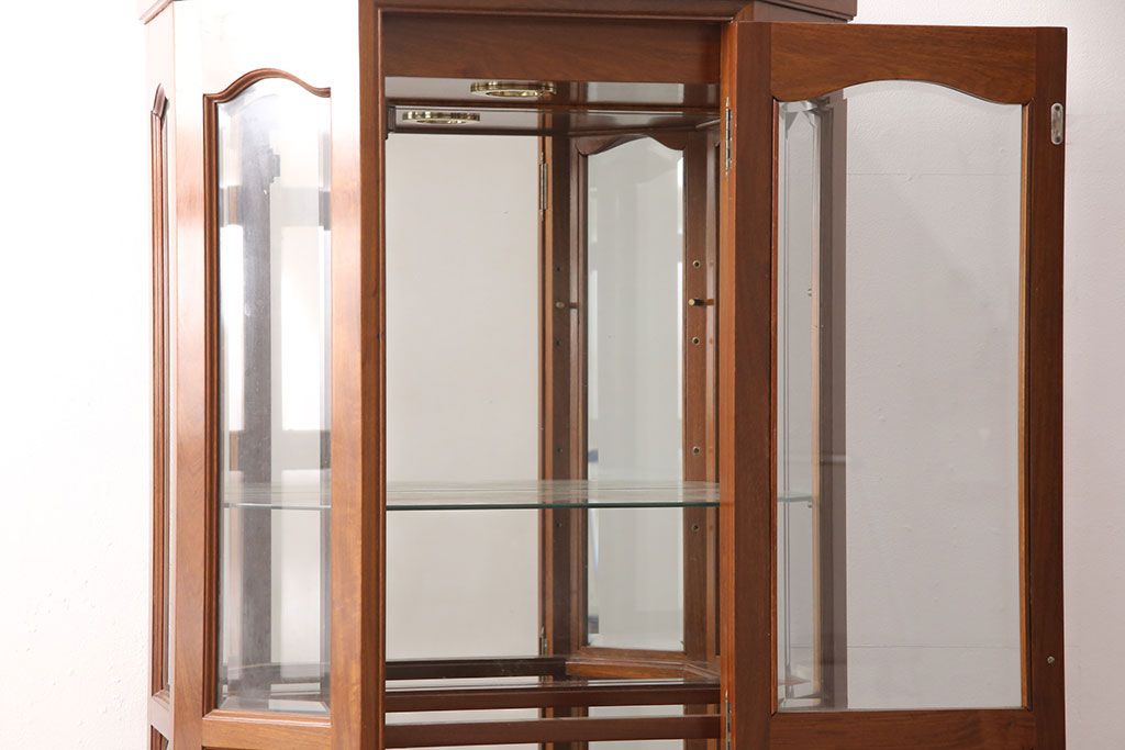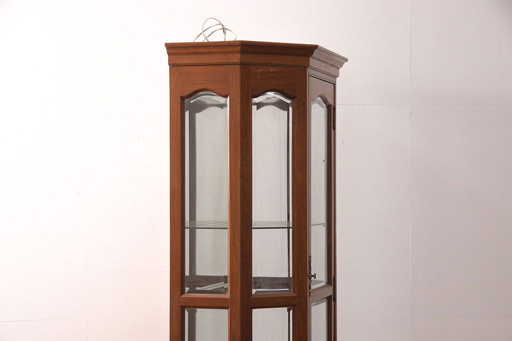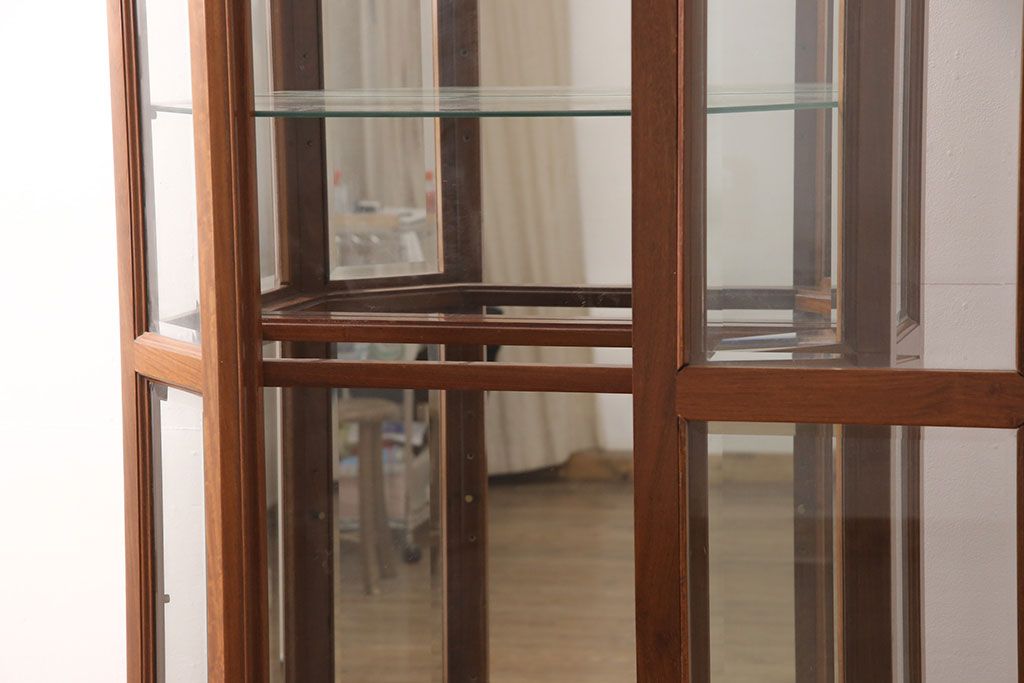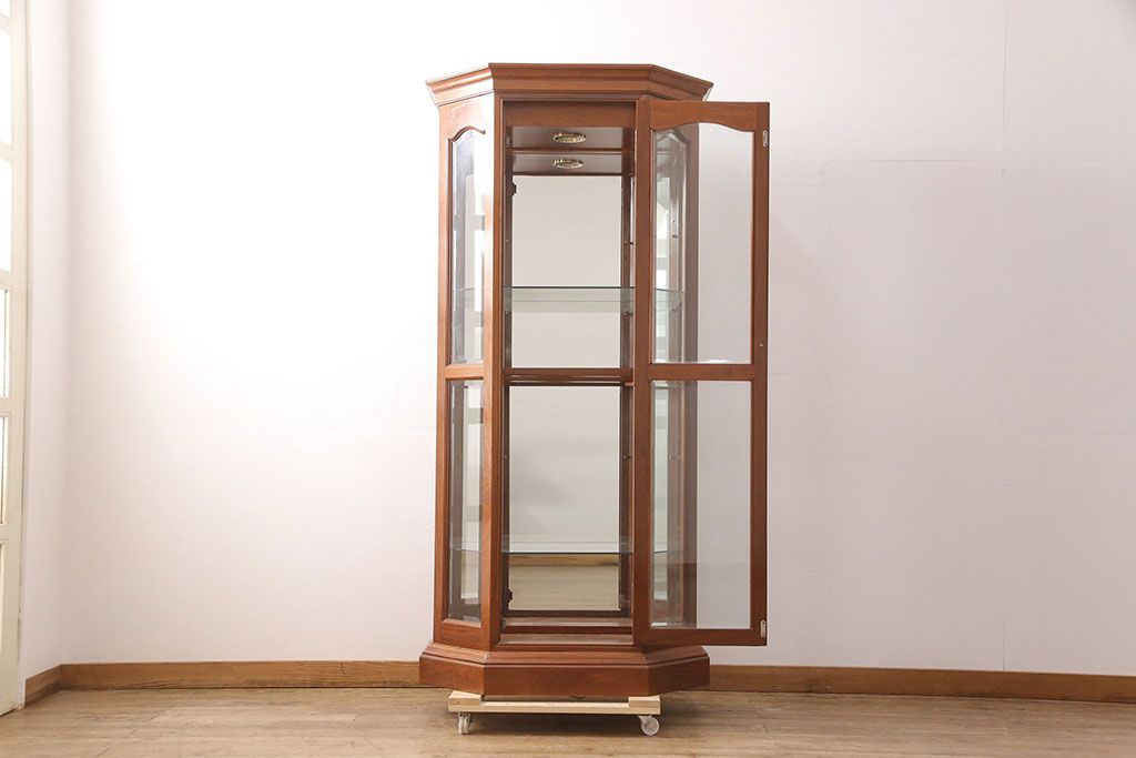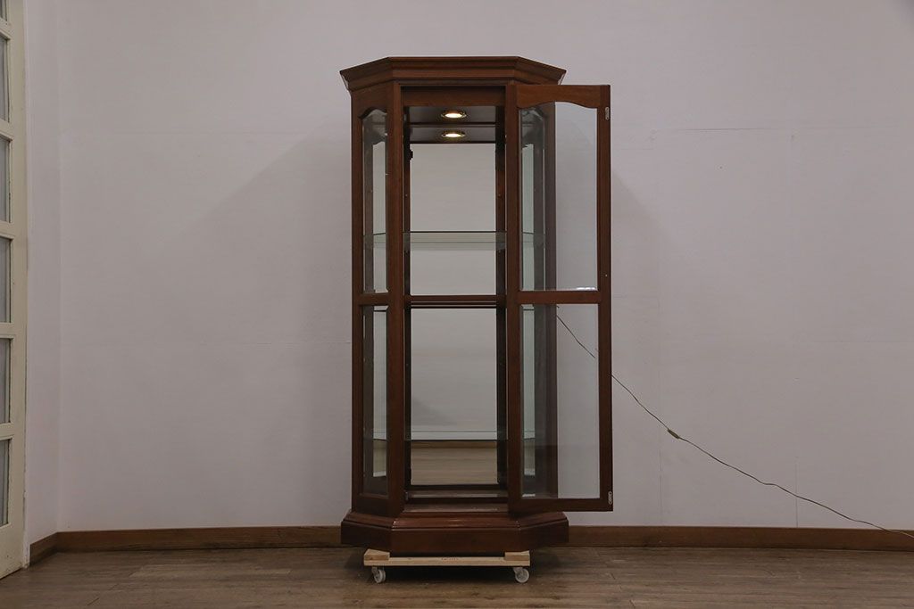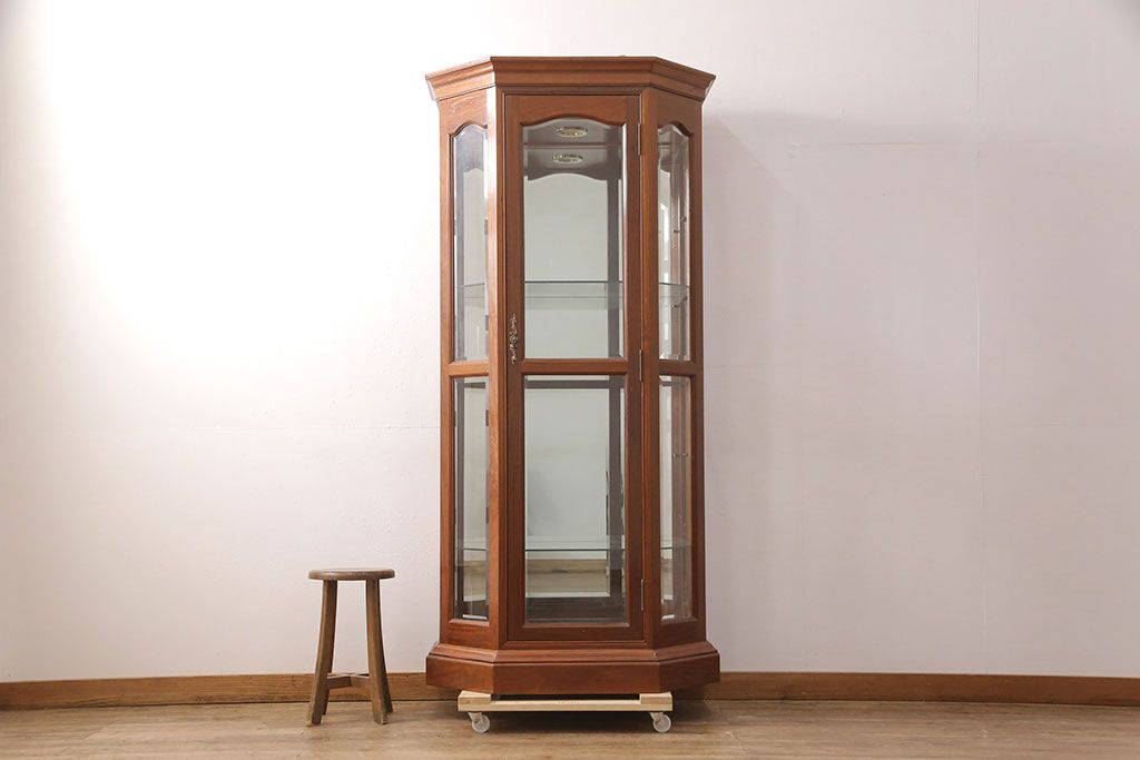 ガラスケース・ショーケース > ヴィンテージ家具 和製ビンテージ カリン無垢材 花梨 クラシカルな空間を演出する照明付き縦型キュリオケース(飾り棚、ガラスケース、陳列棚、収納棚)(R-051591)