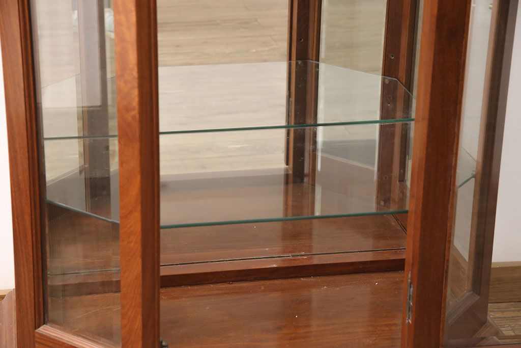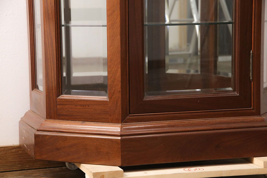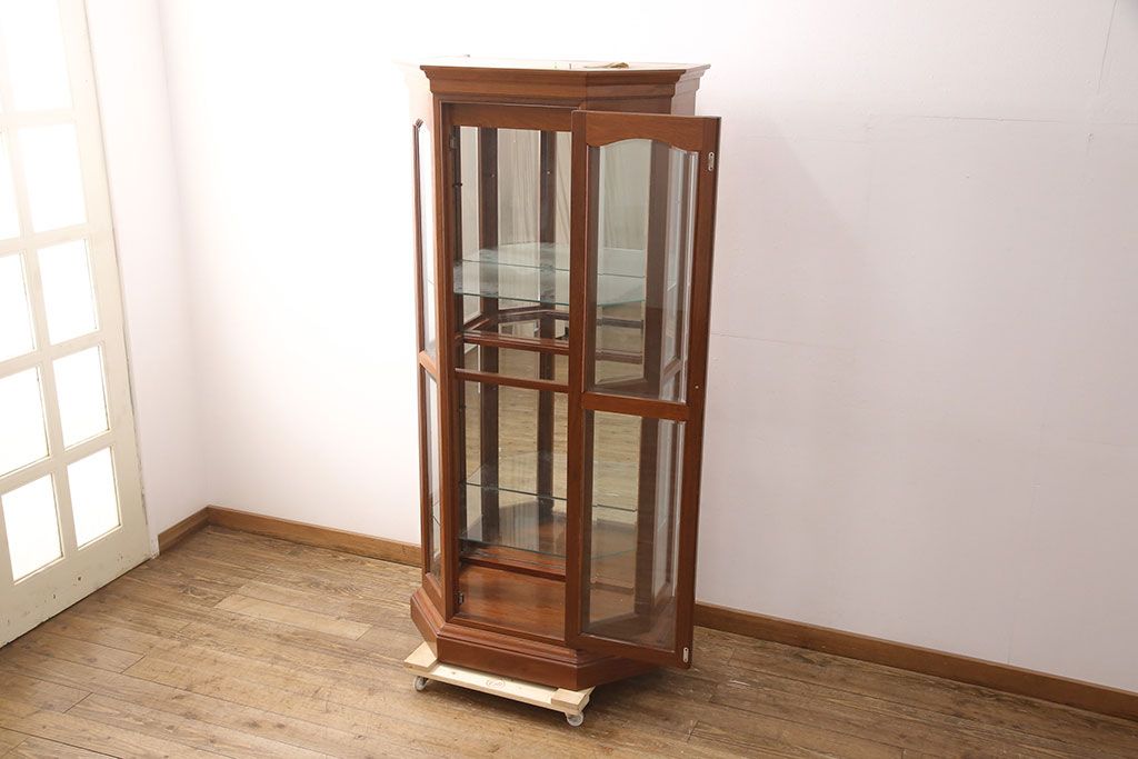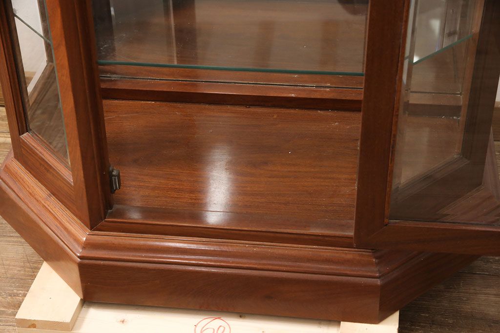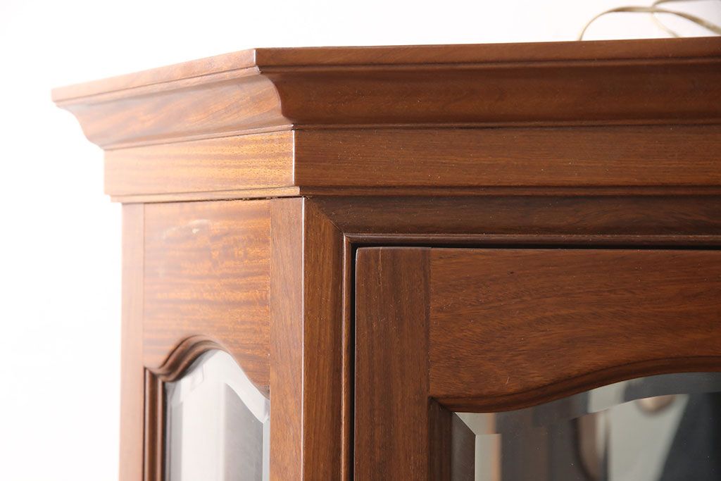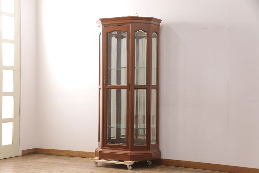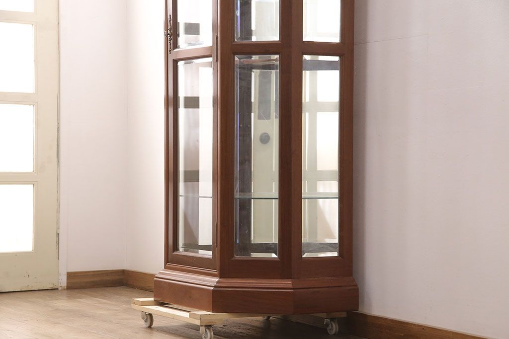 ガラスケース・ショーケース > ヴィンテージ家具 和製ビンテージ カリン無垢材 花梨 クラシカルな空間を演出する照明付き縦型キュリオケース(飾り棚、ガラスケース、陳列棚、収納棚)(R-051591)