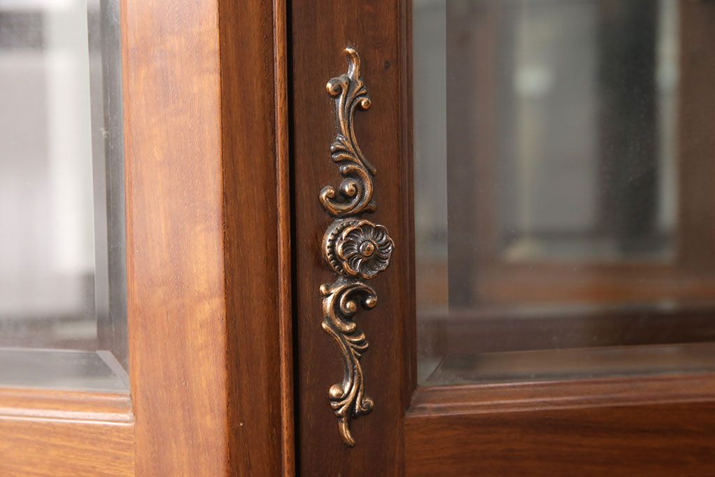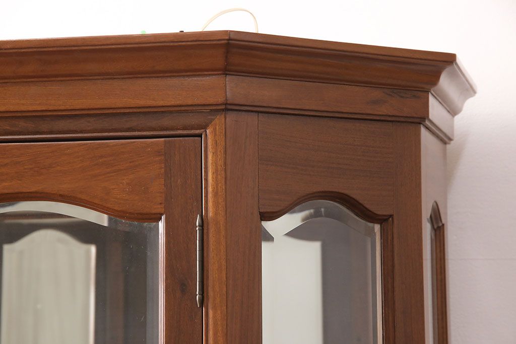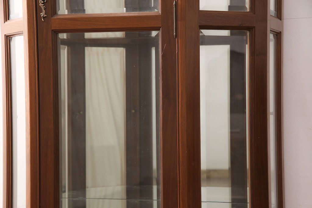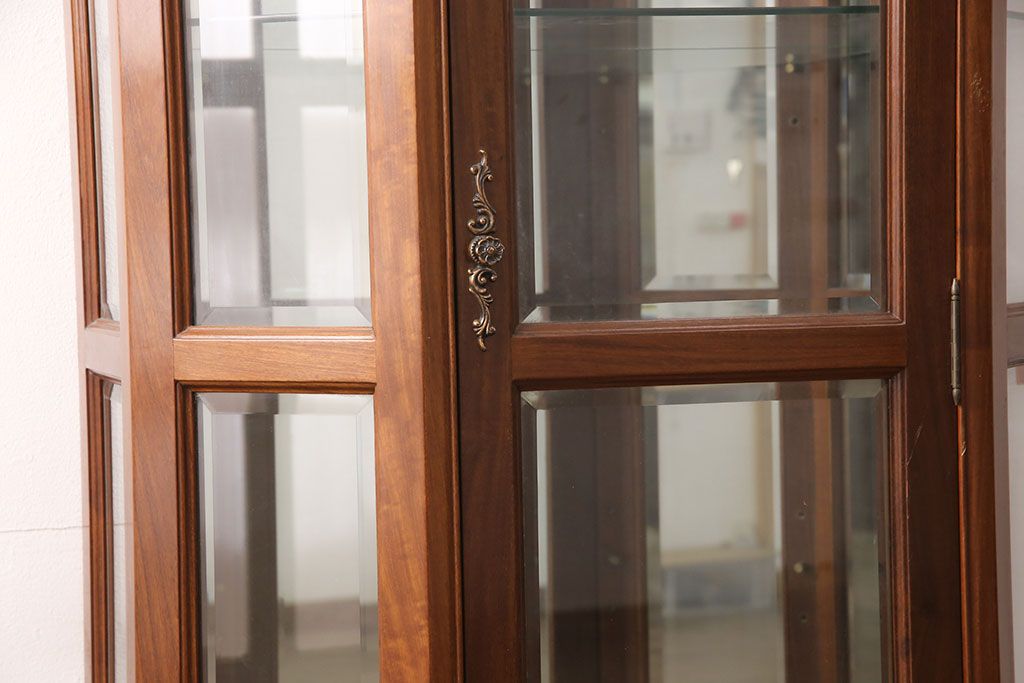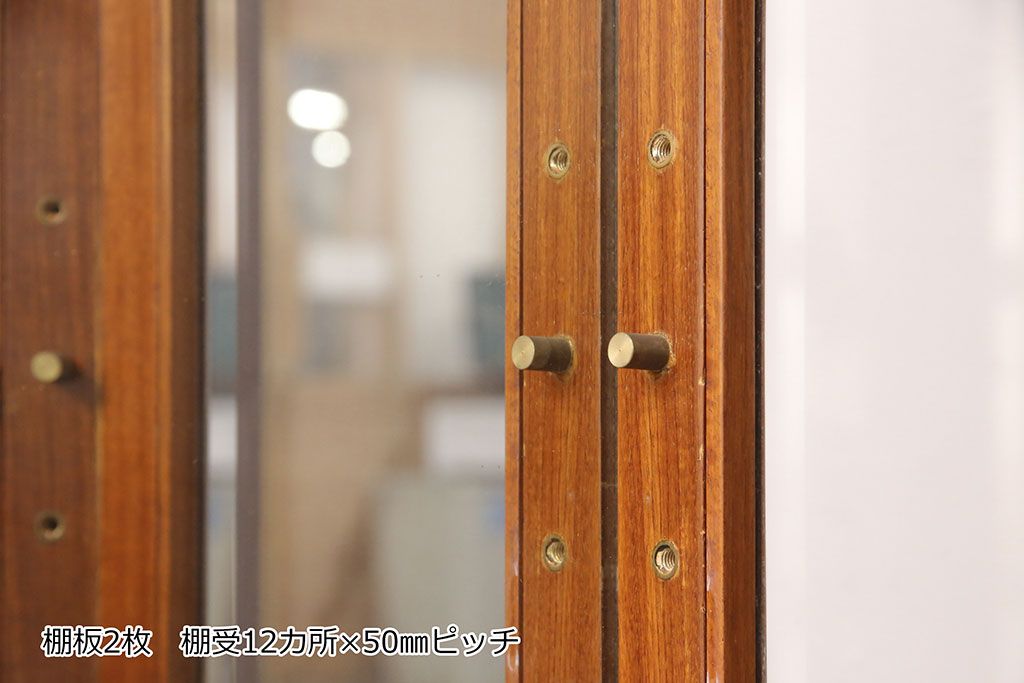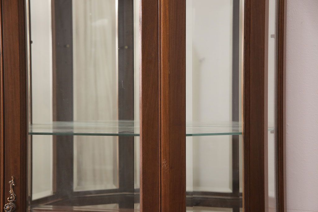 ガラスケース・ショーケース > ヴィンテージ家具 和製ビンテージ カリン無垢材 花梨 クラシカルな空間を演出する照明付き縦型キュリオケース(飾り棚、ガラスケース、陳列棚、収納棚)(R-051591)