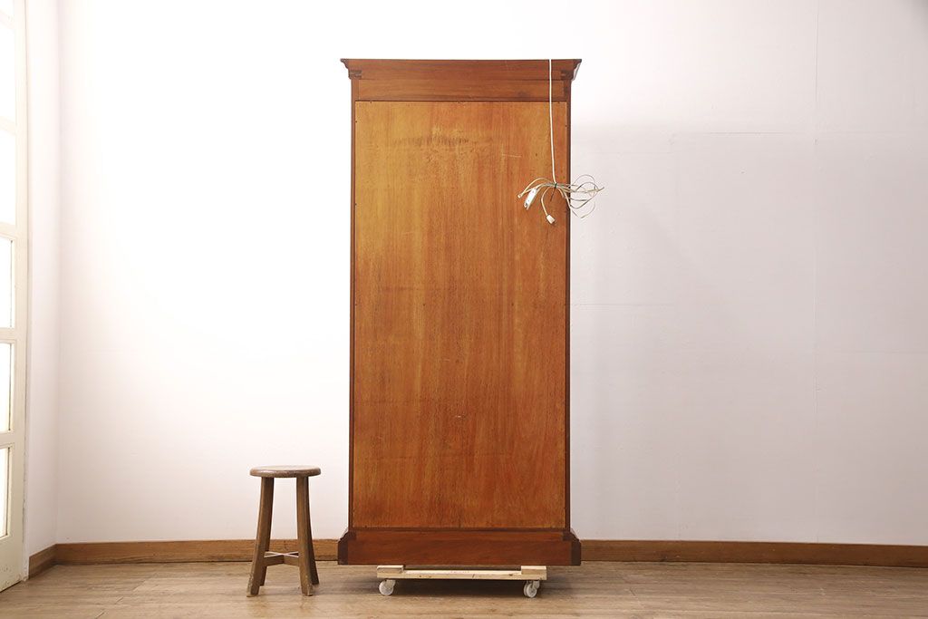 ヴィンテージ家具 和製ビンテージ カリン無垢材 クラシカルな空間を演出する照明付き縦型キュリオケース(飾り棚、ガラスケース、陳列棚、収納棚)(R-051591)です。
