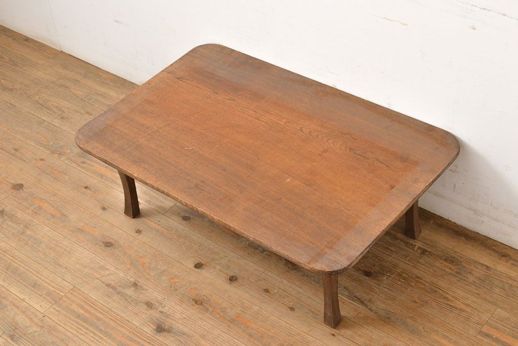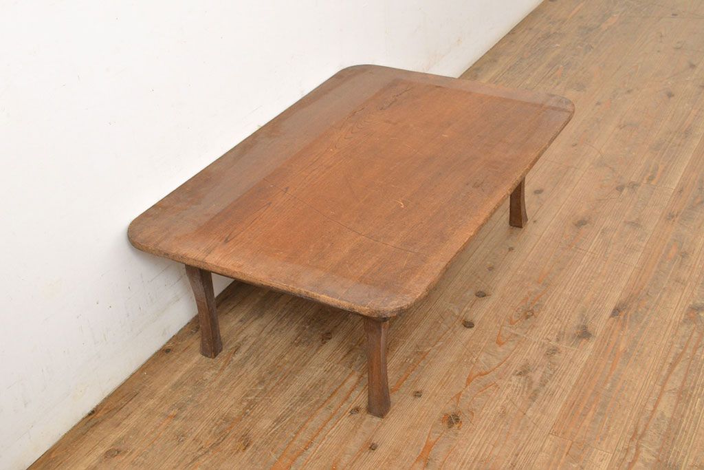 ラフジュ工房> 古家具 > 和製アンティーク 栓材 天板一枚板 素朴な木の風合いが味わい深い角ちゃぶ台(ローテーブル、座卓、折りたたみテーブル)(R-051431)