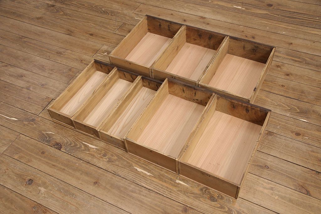 ラフジュ工房> セミオーダー家具実績 > 明治大正期の水屋箪笥サイドボードをリペア&カスタム!建具の金網をクリアガラスに入れ替え。棚板はヒノキ材の一枚板に変更。天板の補強を行い、現状に近しい色味に着色し仕上げ。(収納棚、戸棚、サイドキャビネット、食器棚)