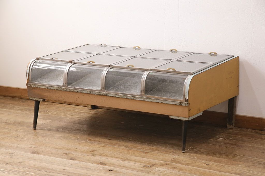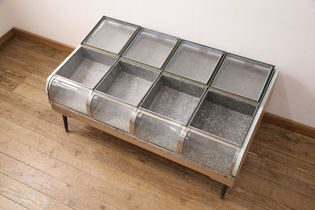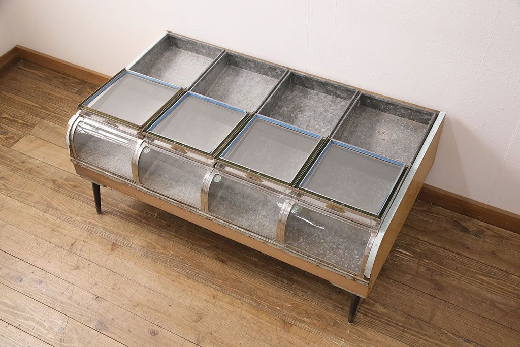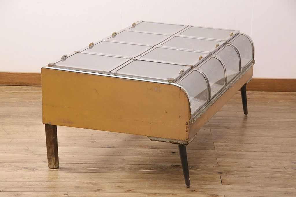 昭和レトロ 駄菓子屋さんの昔懐かしいガラスケース(陳列台、飾り台、ブリキガラスケース)(R-051585)