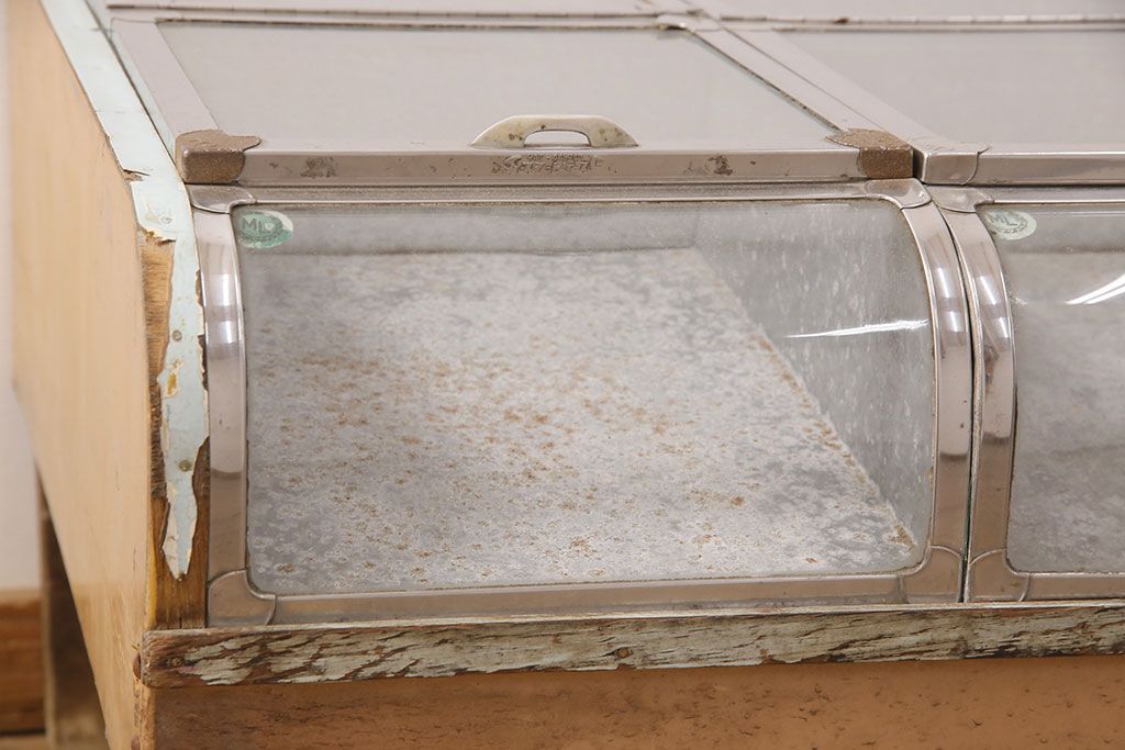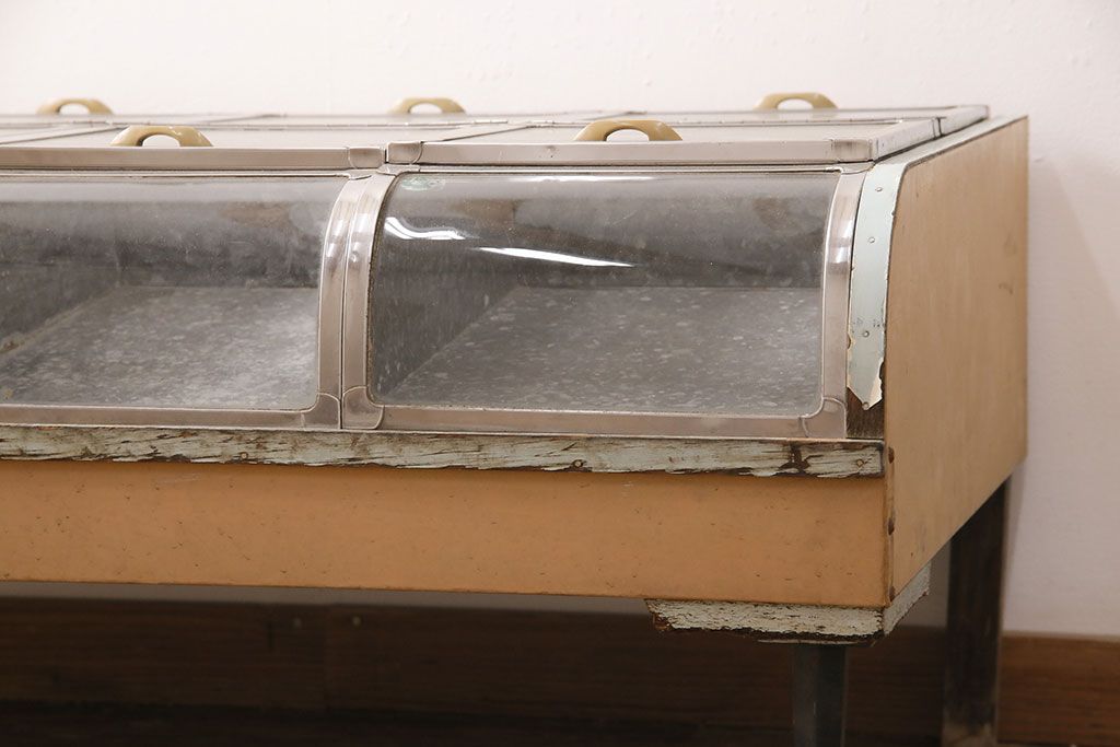 ラフジュ工房> ガラスケース・ショーケース > 昭和レトロ 駄菓子屋さんの昔懐かしいガラスケース(陳列台、飾り台、ブリキガラスケース)(R-051585)