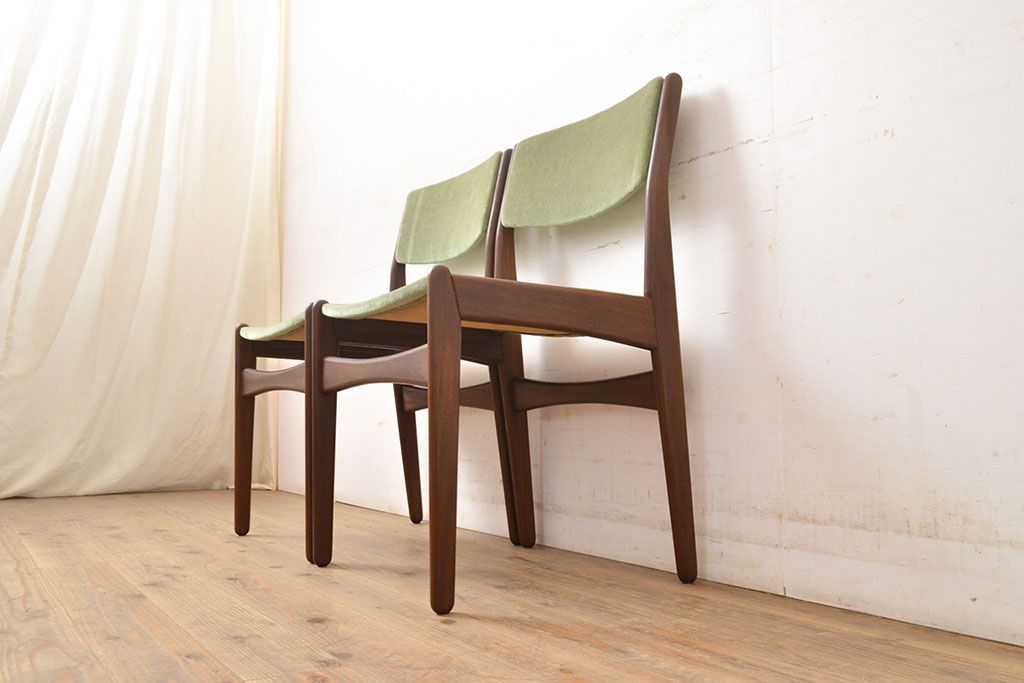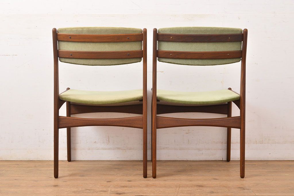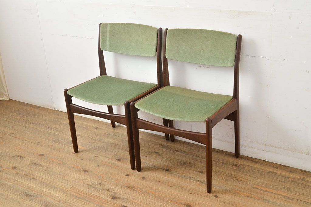 椅子・ベンチ> 				ダイニングチェア				> ヴィンテージ家具 デンマークビンテージ チーク材 北欧家具らしい温もり溢れる佇まいが魅力のチェア2脚セット(ダイニングチェア、椅子)(R-051462)
