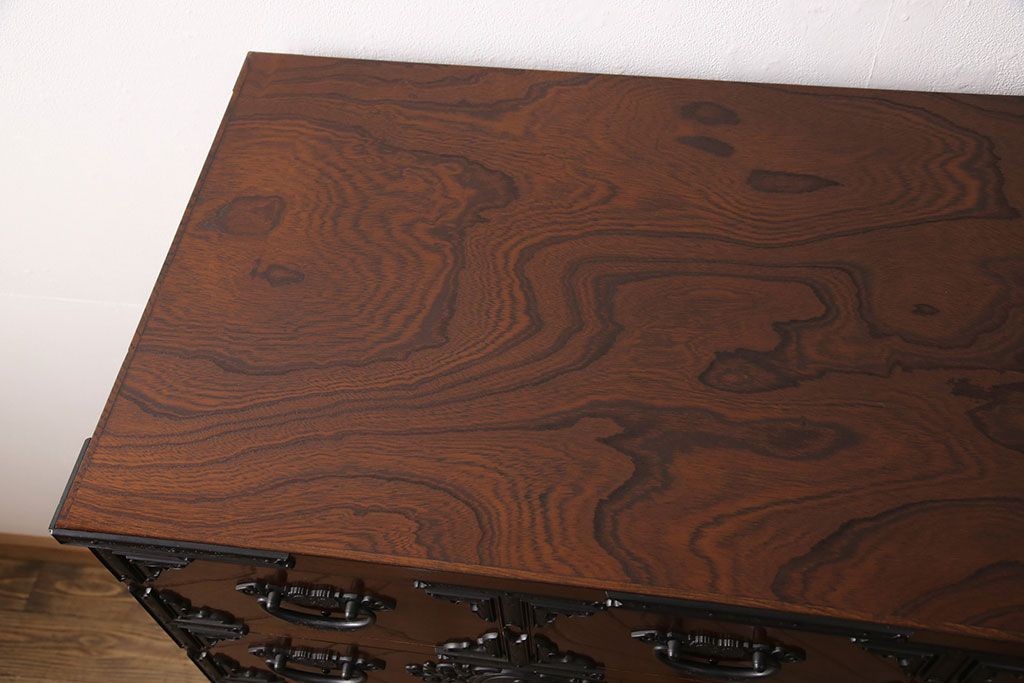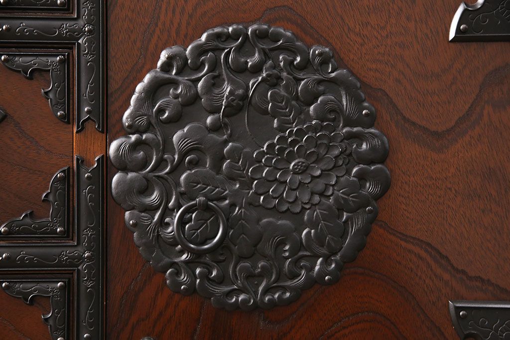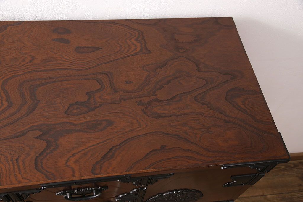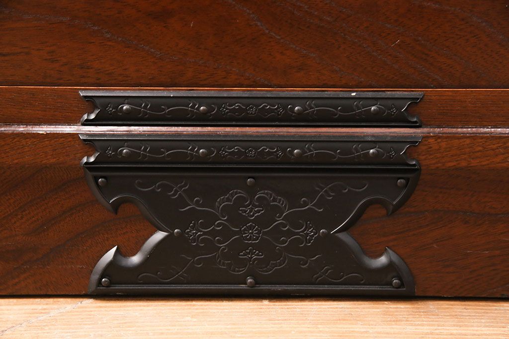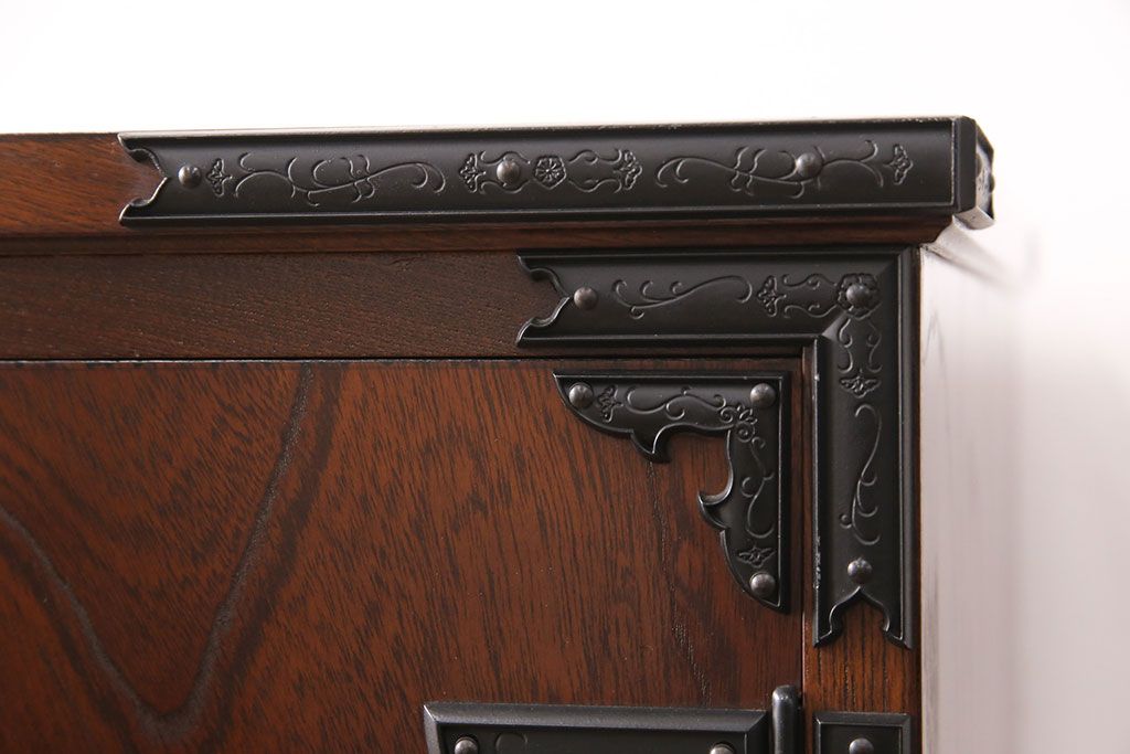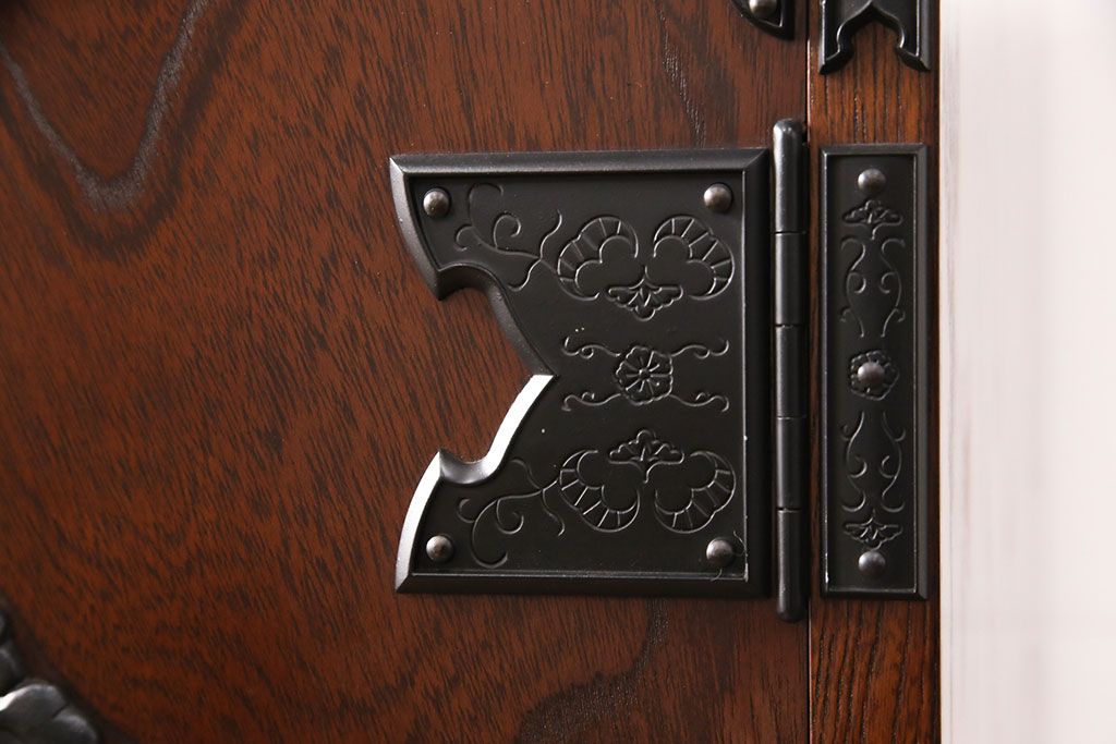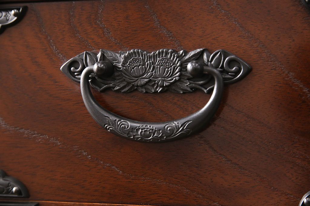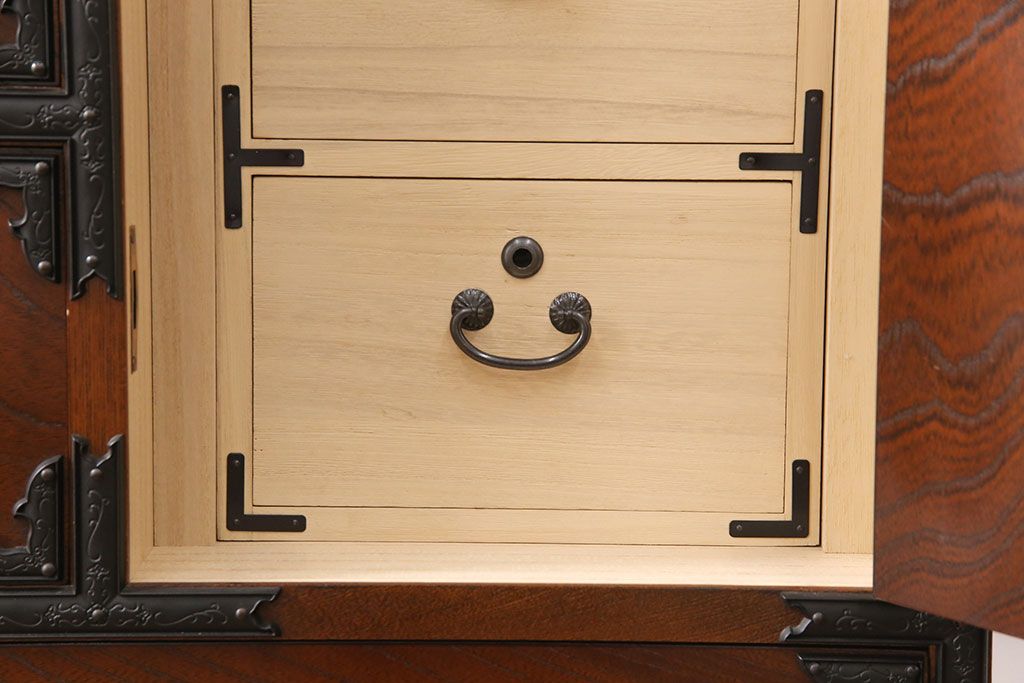 民芸家具 > 中古 美品 国産民芸家具 内部総桐材 飾り金具の意匠が美しい衣装箪笥(和タンス、チェスト、引き出し)(R-051663)