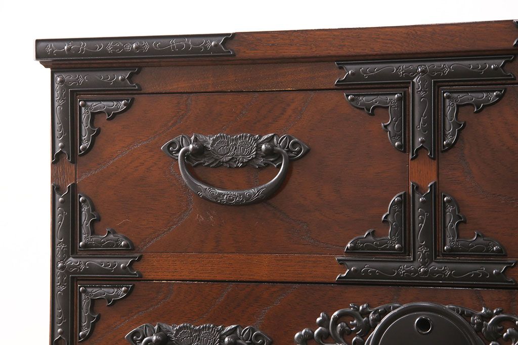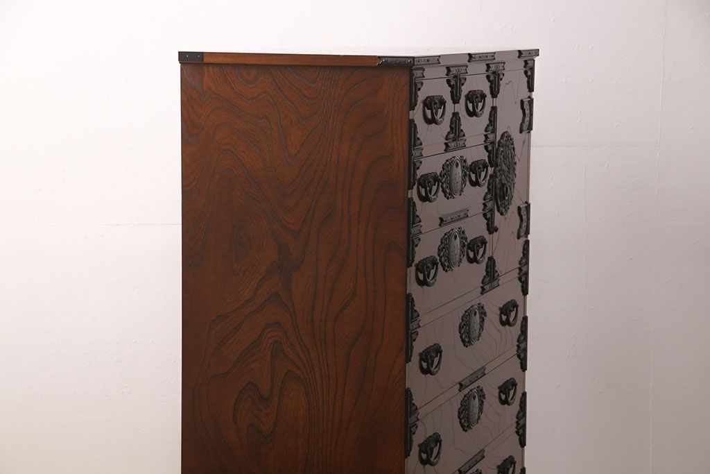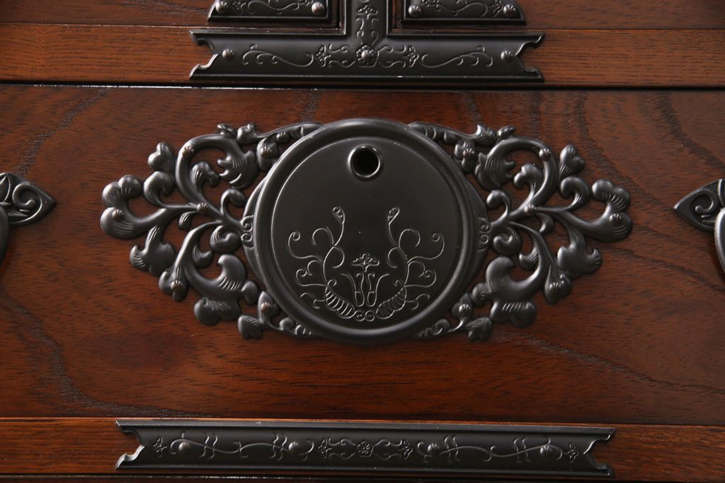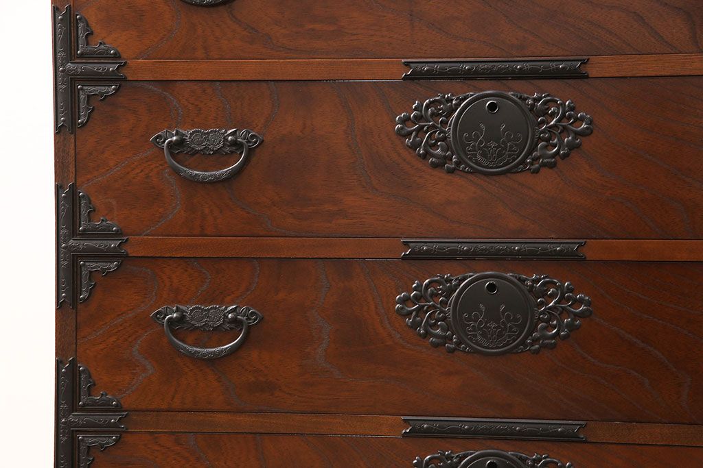 和箪笥> 衣装箪笥 > 中古 美品 国産民芸家具 内部総桐材 飾り金具の意匠が美しい衣装箪笥(和タンス、チェスト、引き出し)(R-051663)