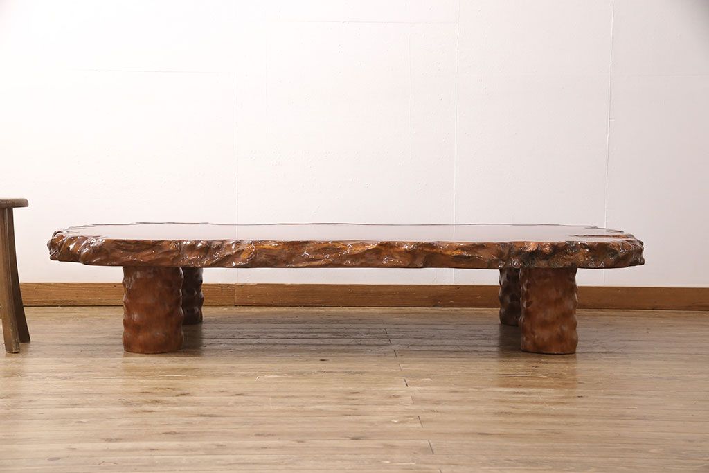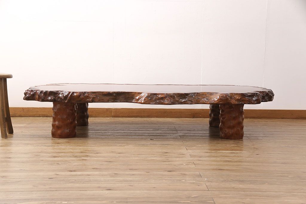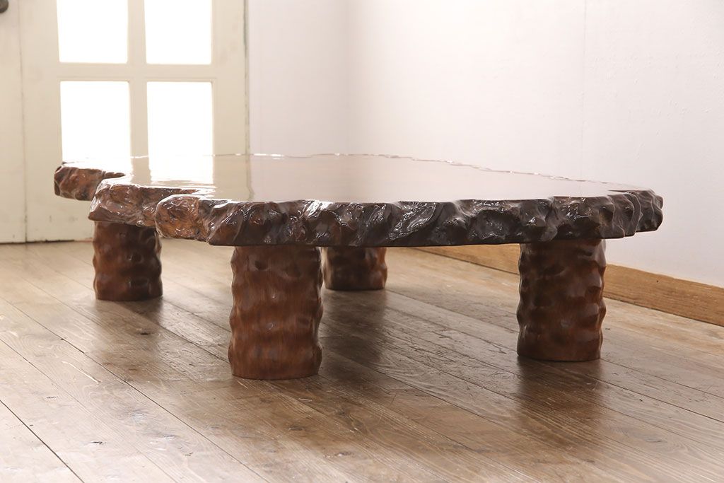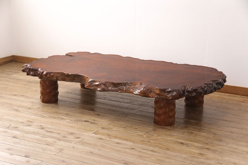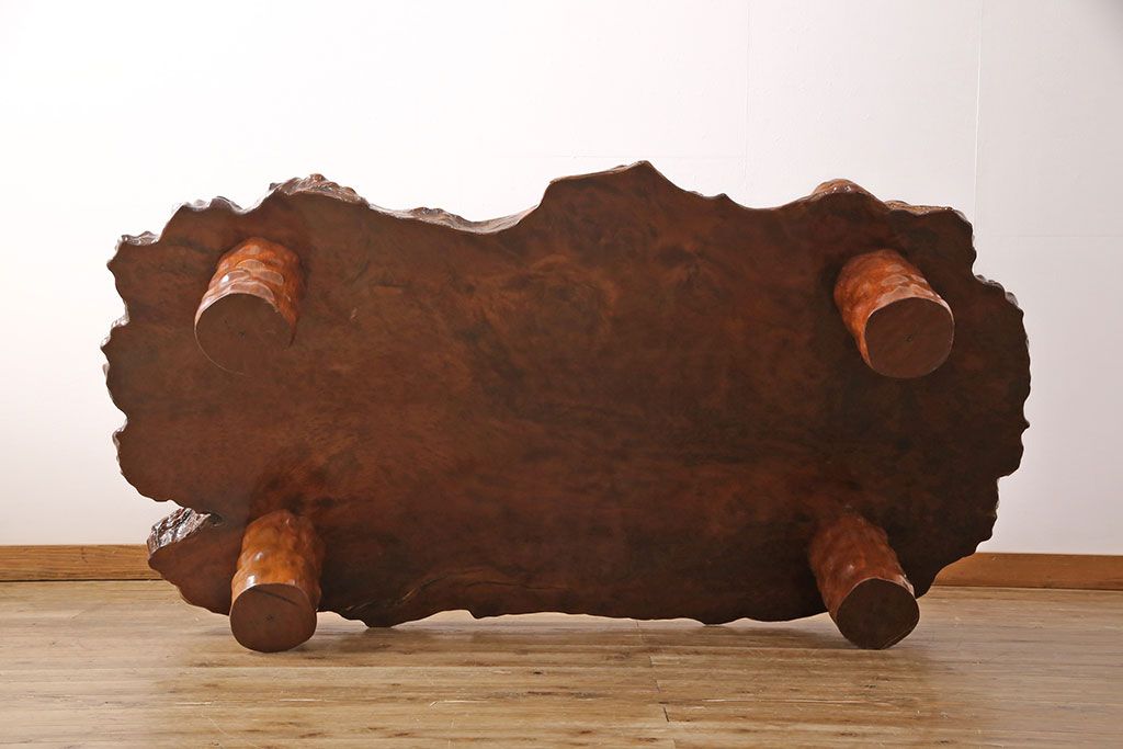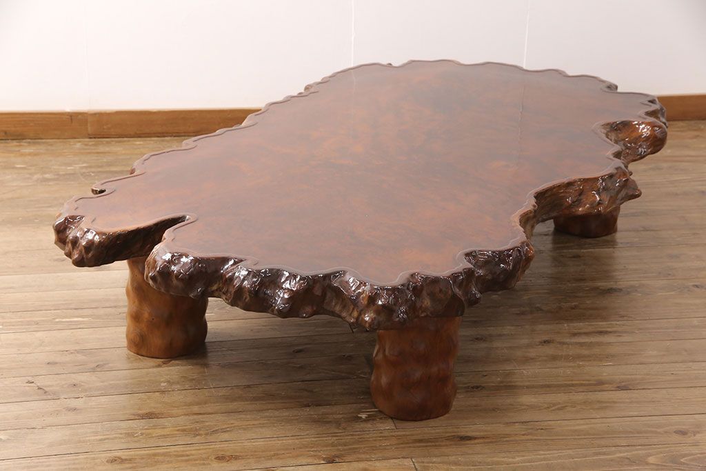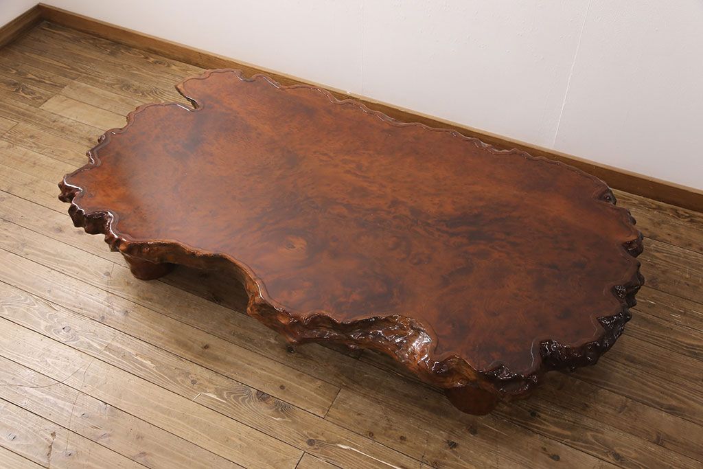 お問い合わせいただければ、優先してアップいたします。中古 楓(カエデ)材 鳥眼杢(バーズアイ)一枚板 自然な木の風合いを活かした、分厚い天板の特大座卓(ローテーブル)(R-051655)です。