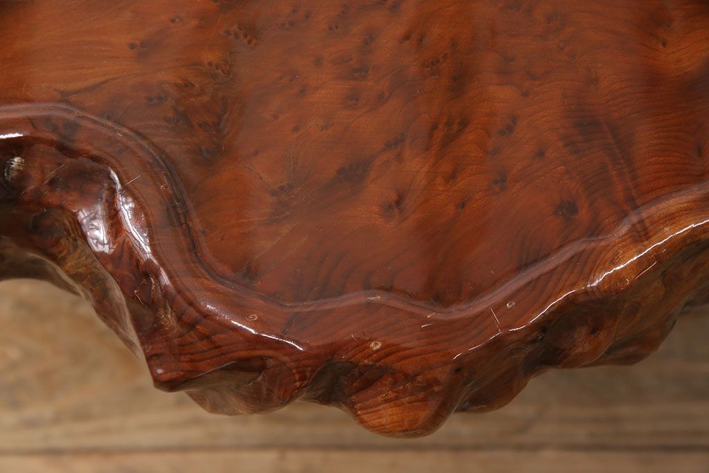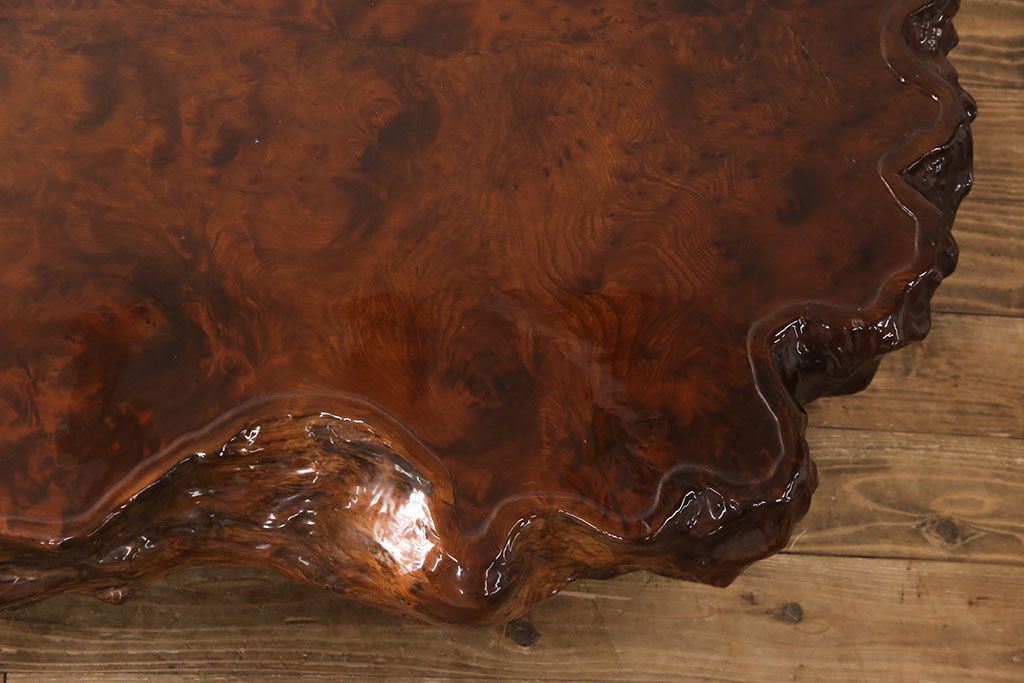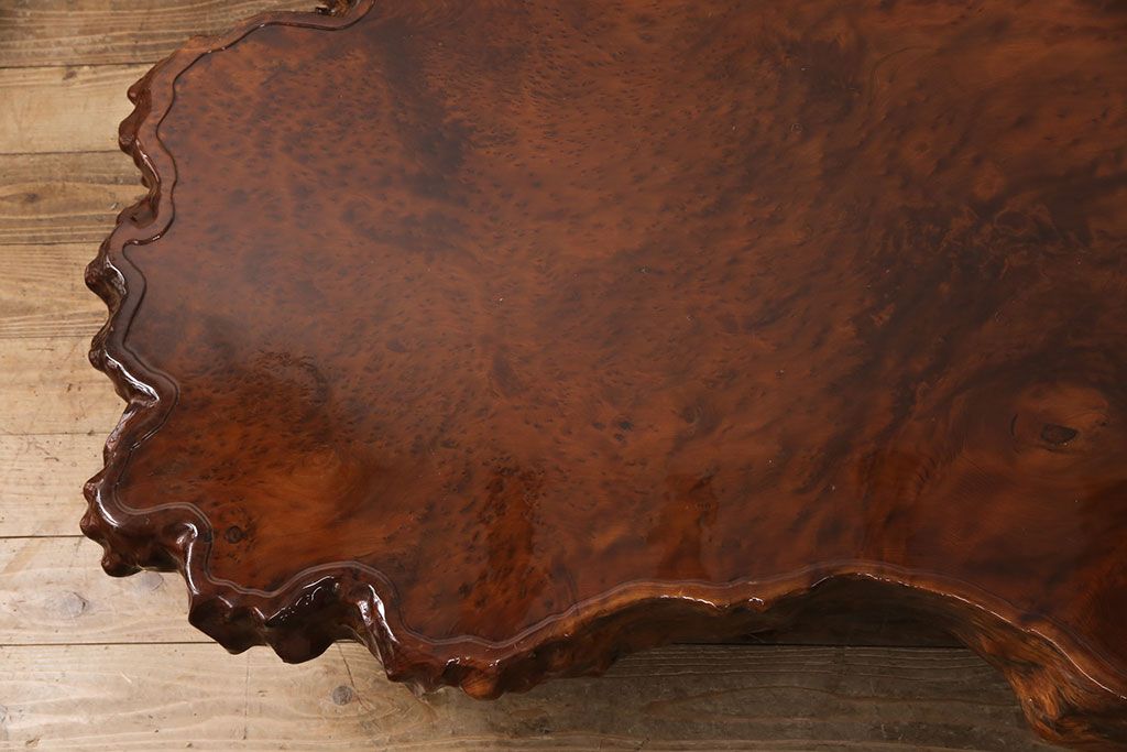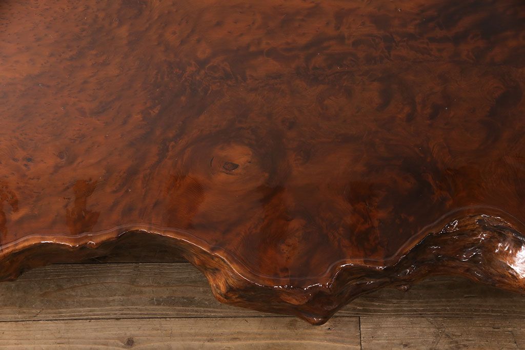 中古 楓(カエデ)材 鳥眼杢(バーズアイ)一枚板 自然な木の風合いを活かした、分厚い天板の特大座卓(ローテーブル)(R-051655)