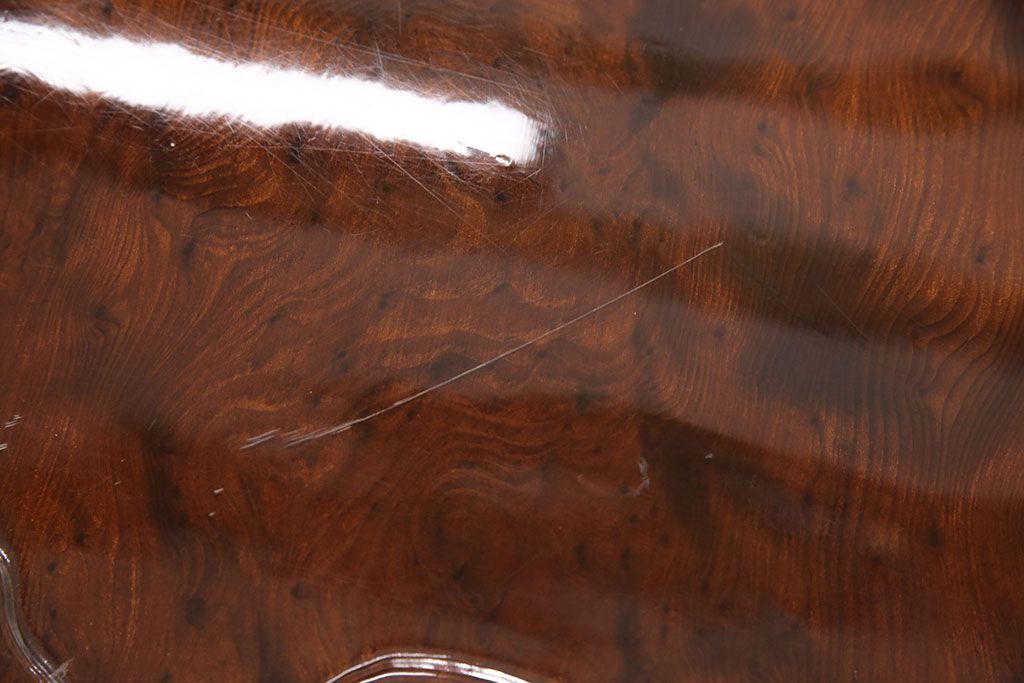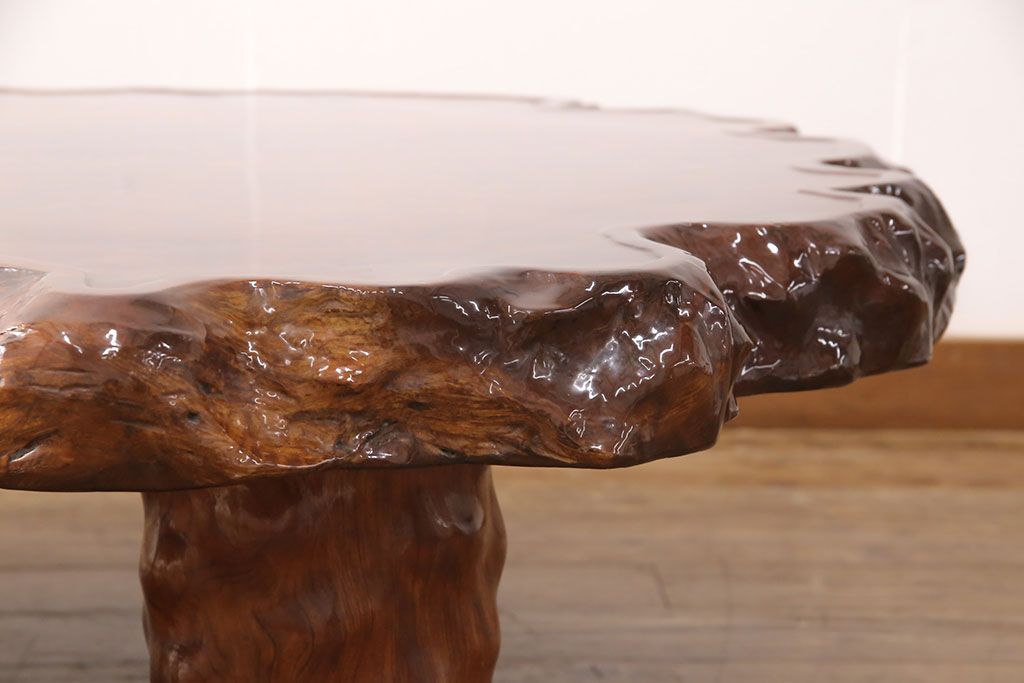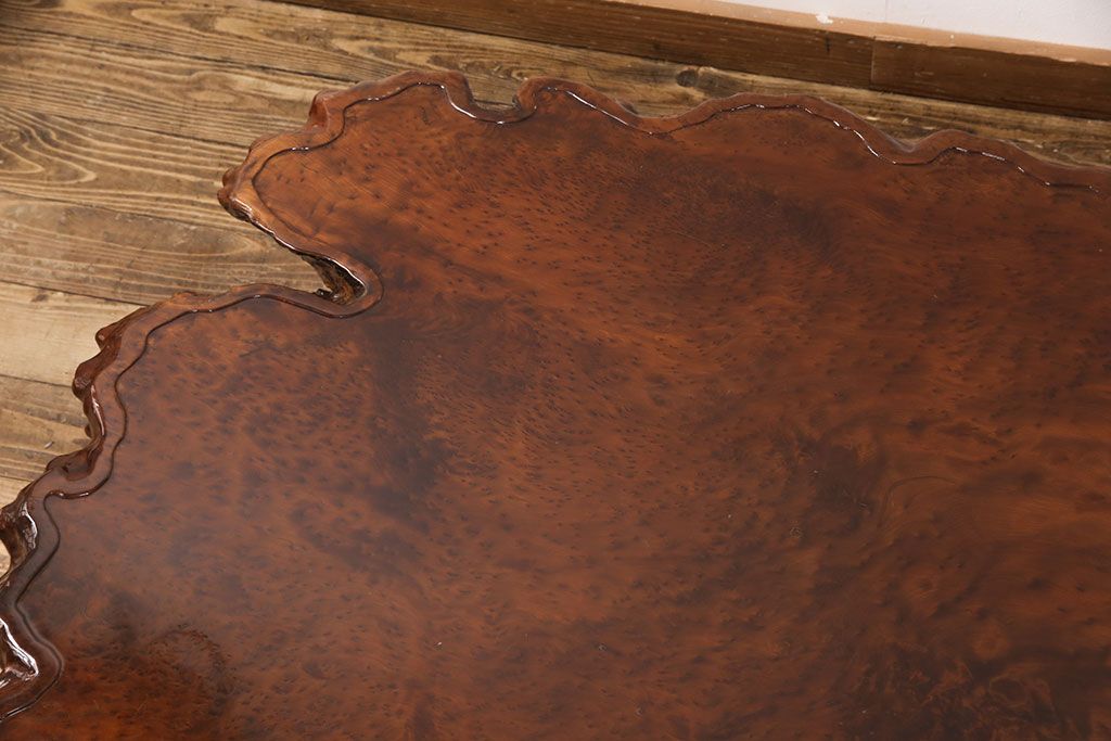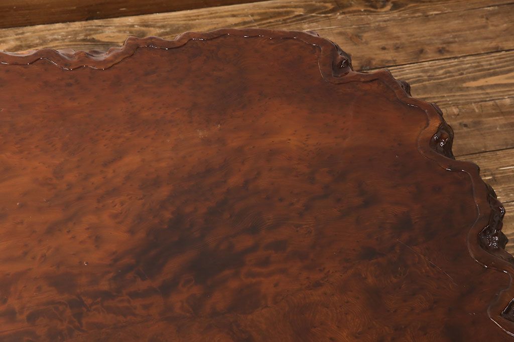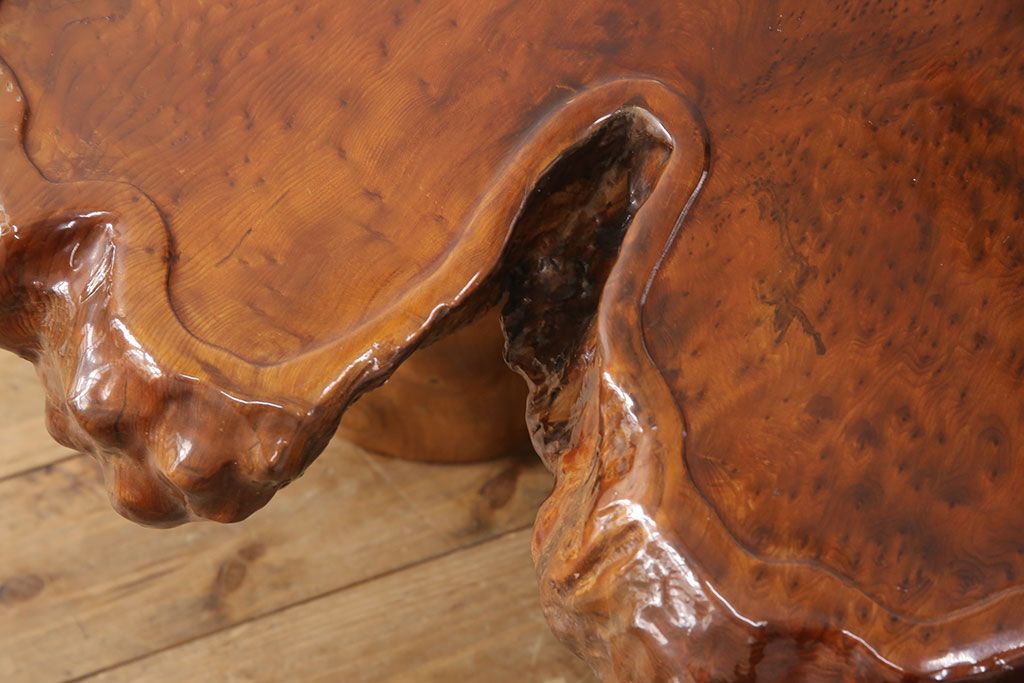 中古 楓(カエデ)材 鳥眼杢(バーズアイ)一枚板 自然な木の風合いを活かした、分厚い天板の特大座卓(ローテーブル)(R-051655)