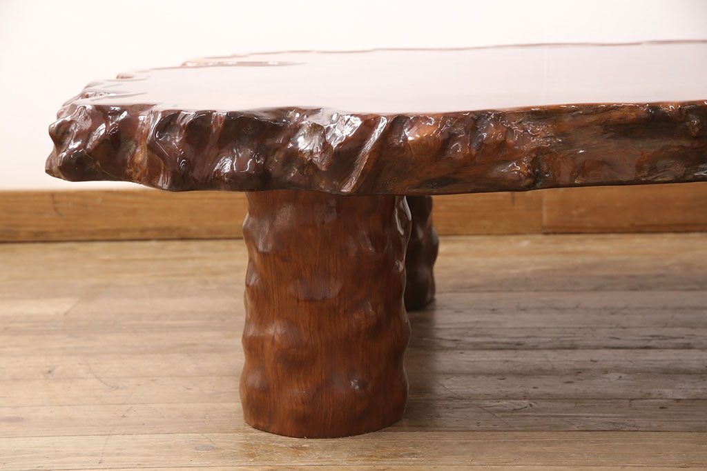 テーブル> 座卓 > 中古 楓(カエデ)材 鳥眼杢(バーズアイ)一枚板 自然な木の風合いを活かした、分厚い天板の特大座卓(ローテーブル)(R-051655)