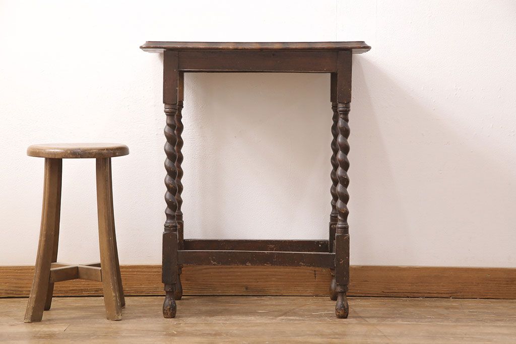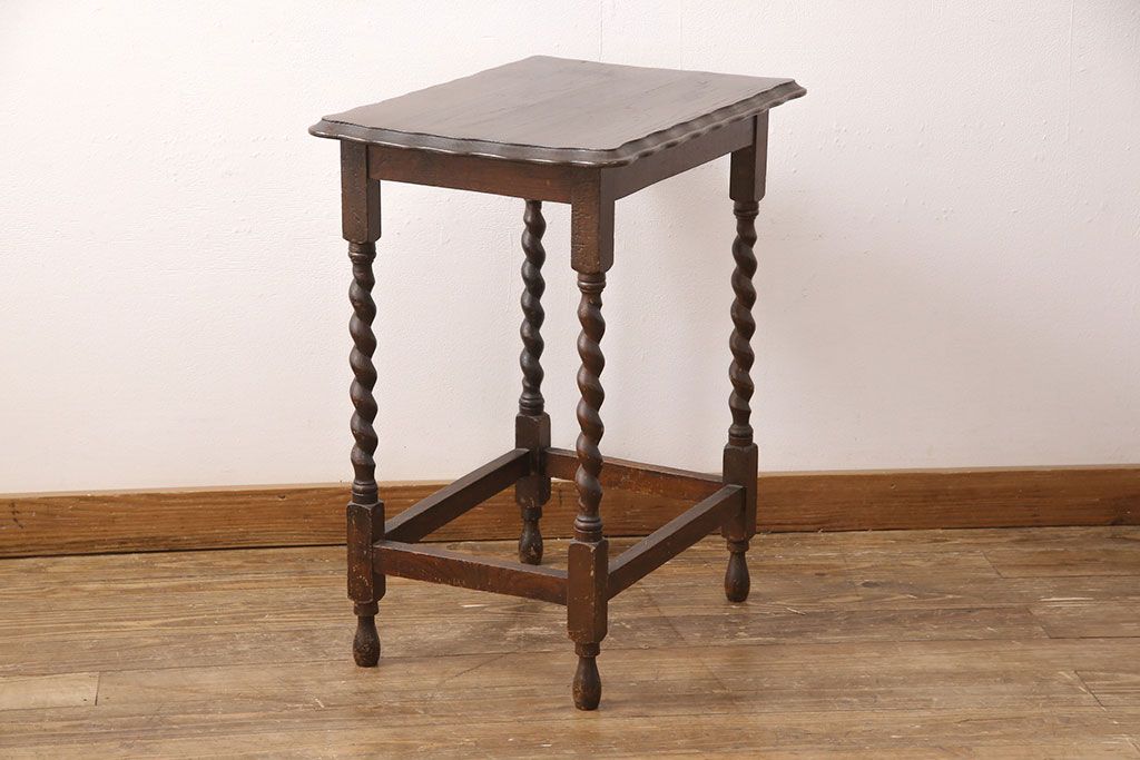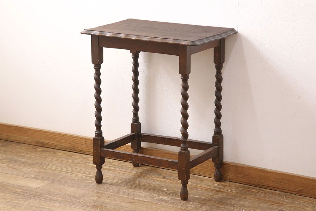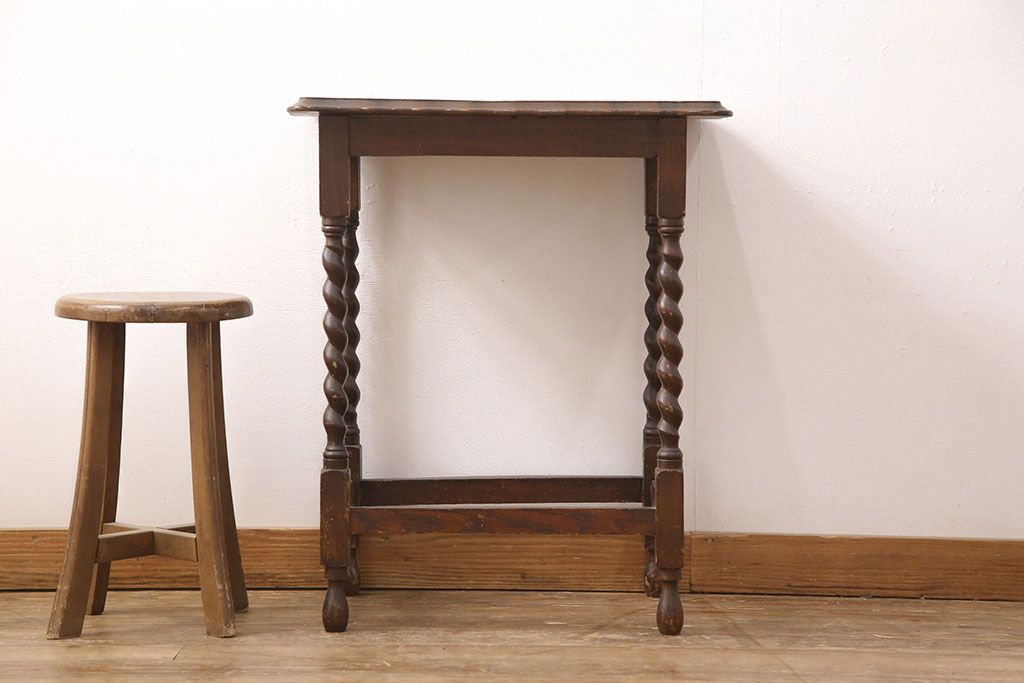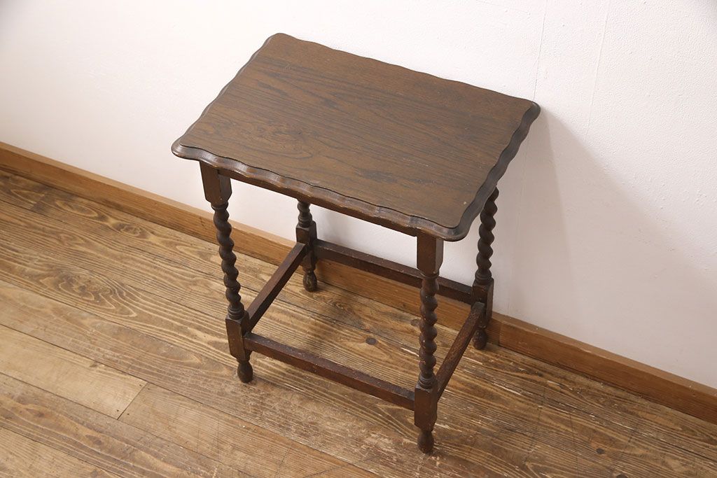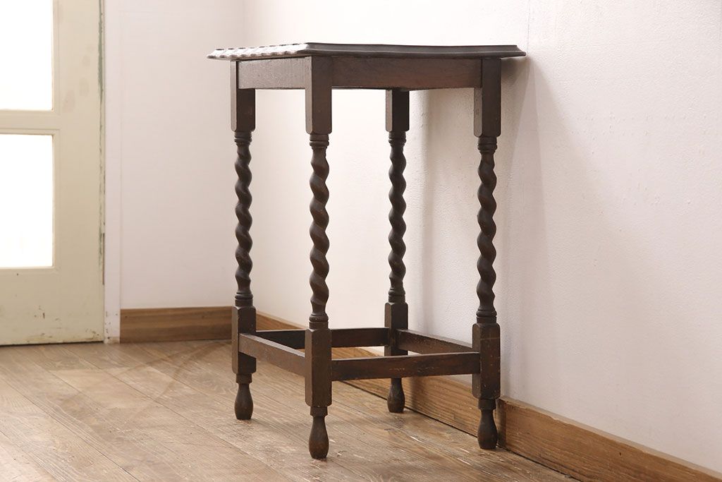 イギリスアンティーク オーク材 ツイストレッグと天板の縁のデザインがお洒落なサイドテーブル(飾り台)(R-051643)
