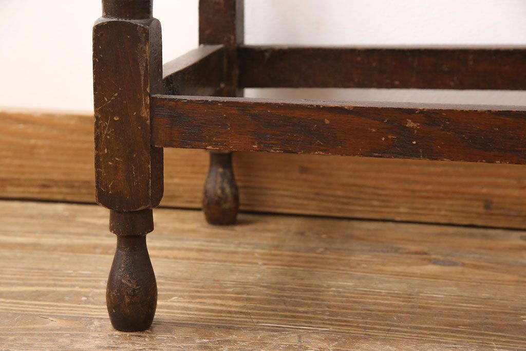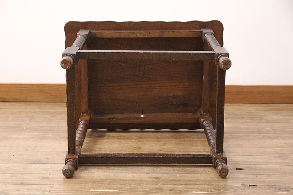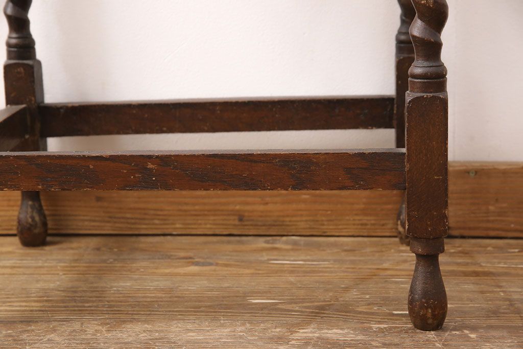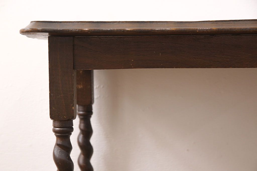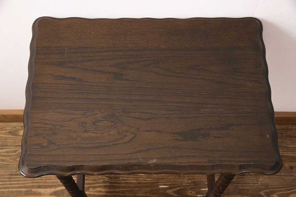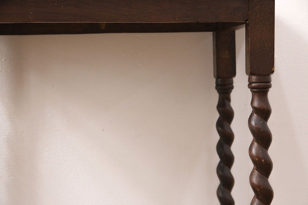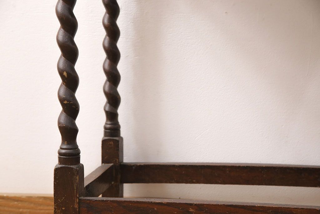 イギリスアンティーク オーク材 ツイストレッグと天板の縁のデザインがお洒落なサイドテーブル(飾り台)(R-051643)