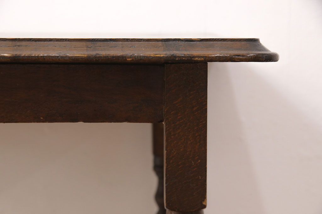 イギリスアンティーク オーク材 ツイストレッグと天板の縁のデザインがお洒落なサイドテーブル(飾り台)(R-051643)です。