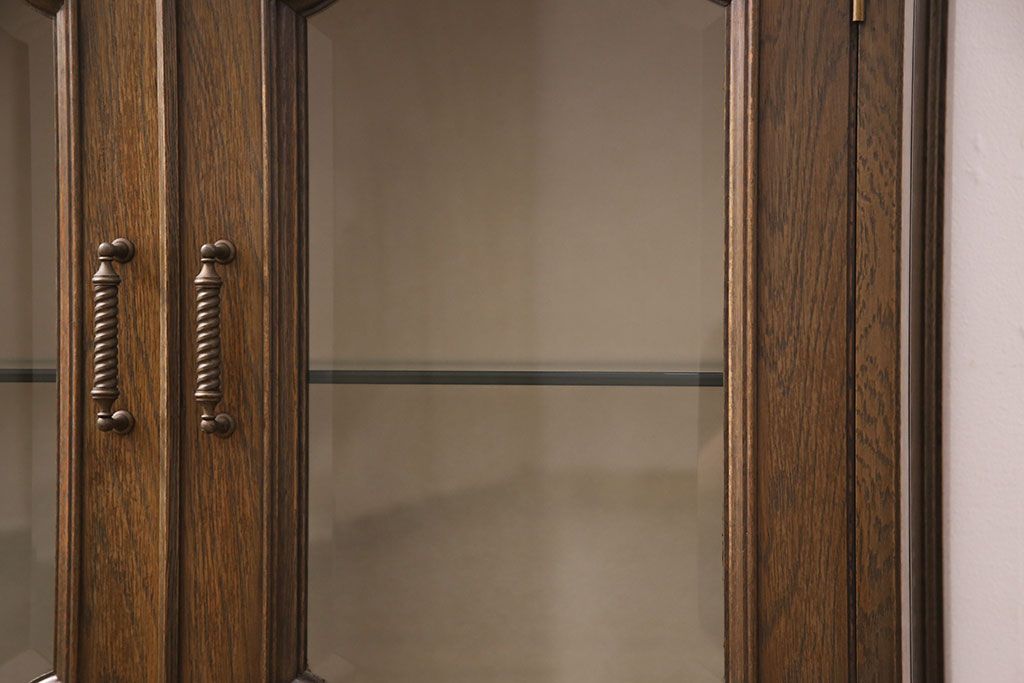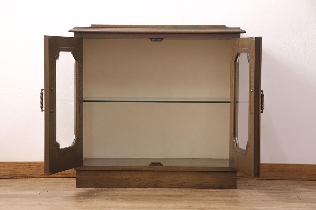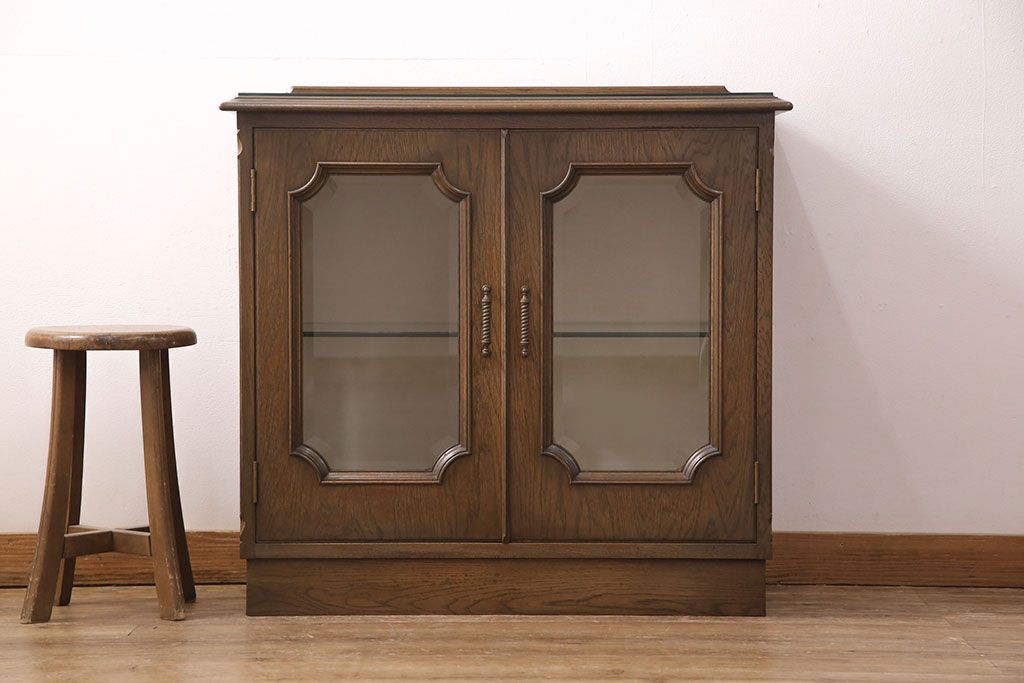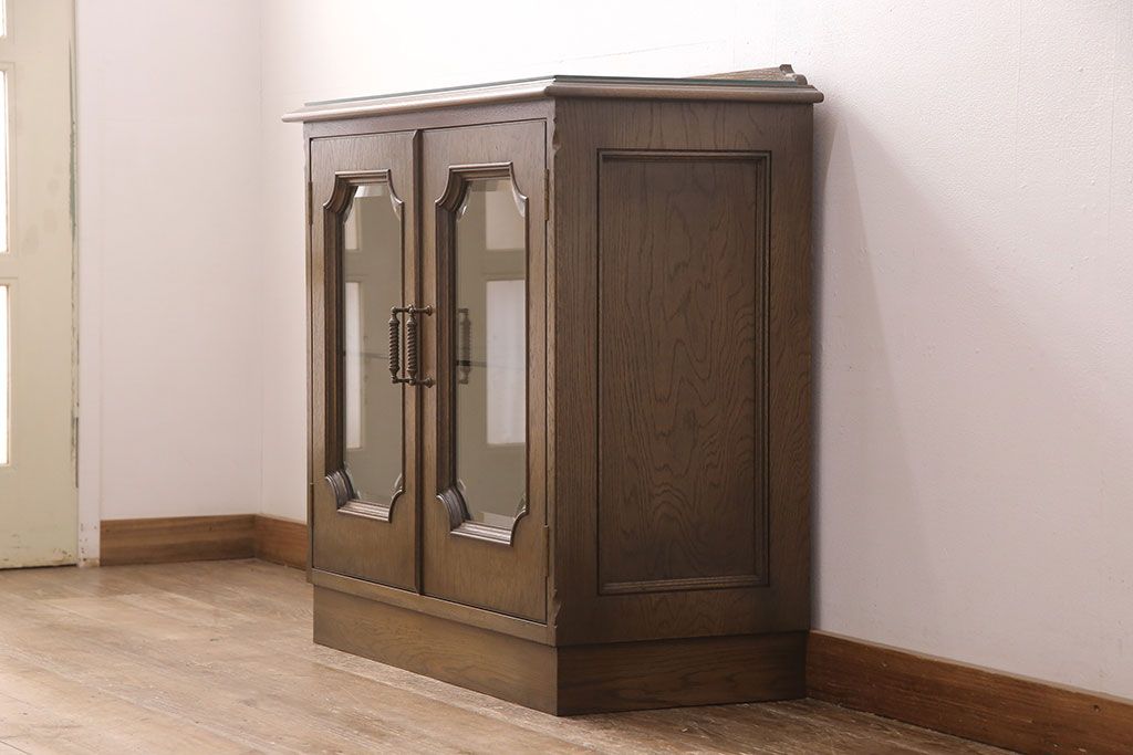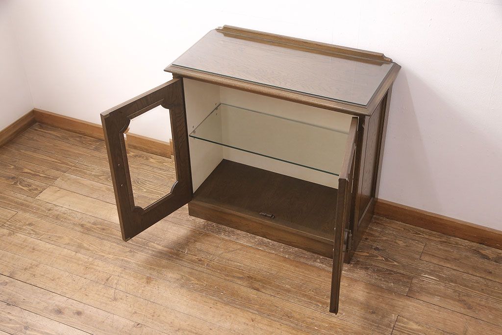 中古 美品 神戸洋家具 永田良介商店 ナラ材 ガラス天板付きの小振りなサイドボード(キャビネット、収納棚、戸棚)(R-051683)です。
