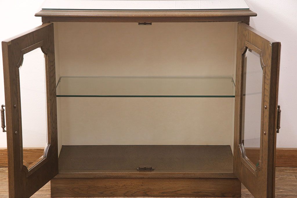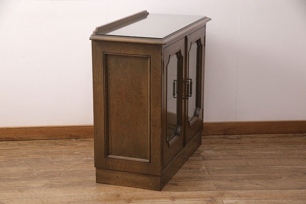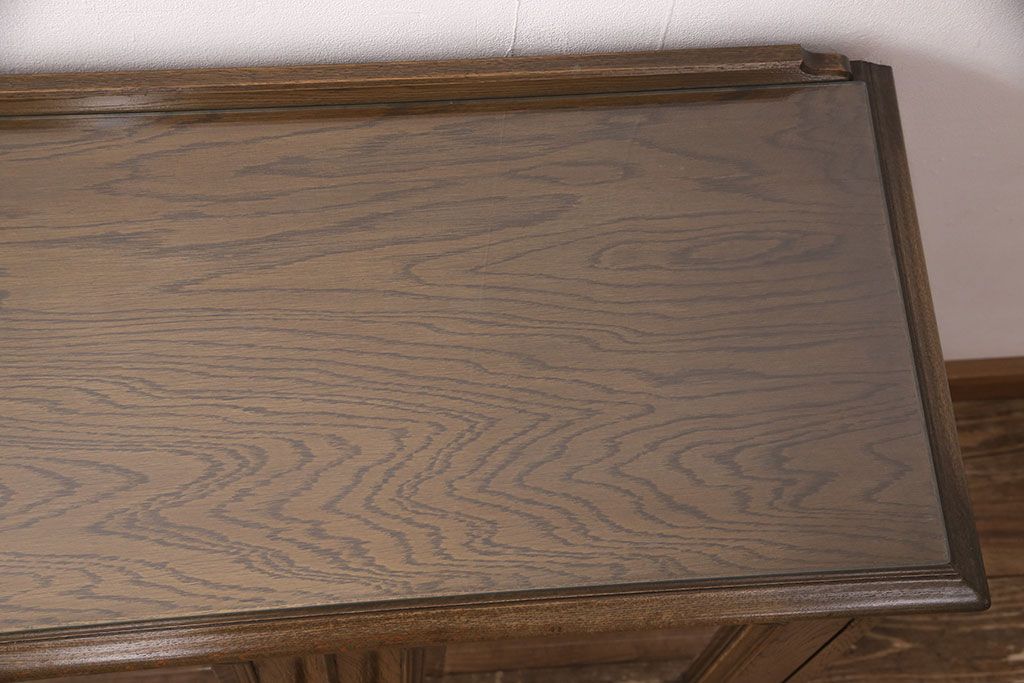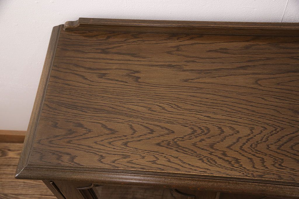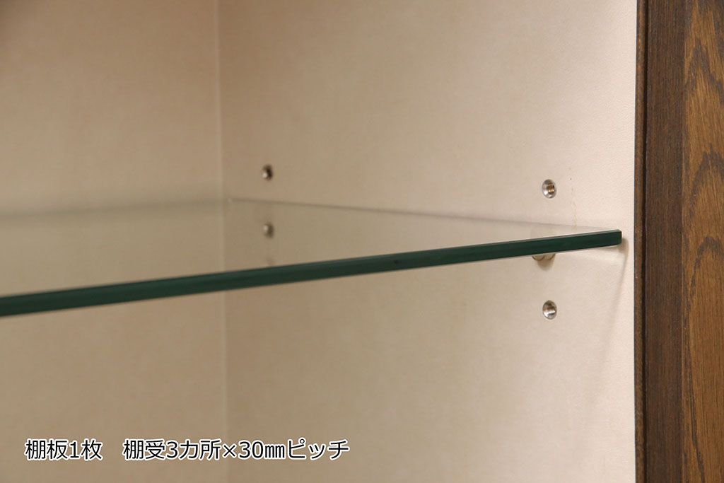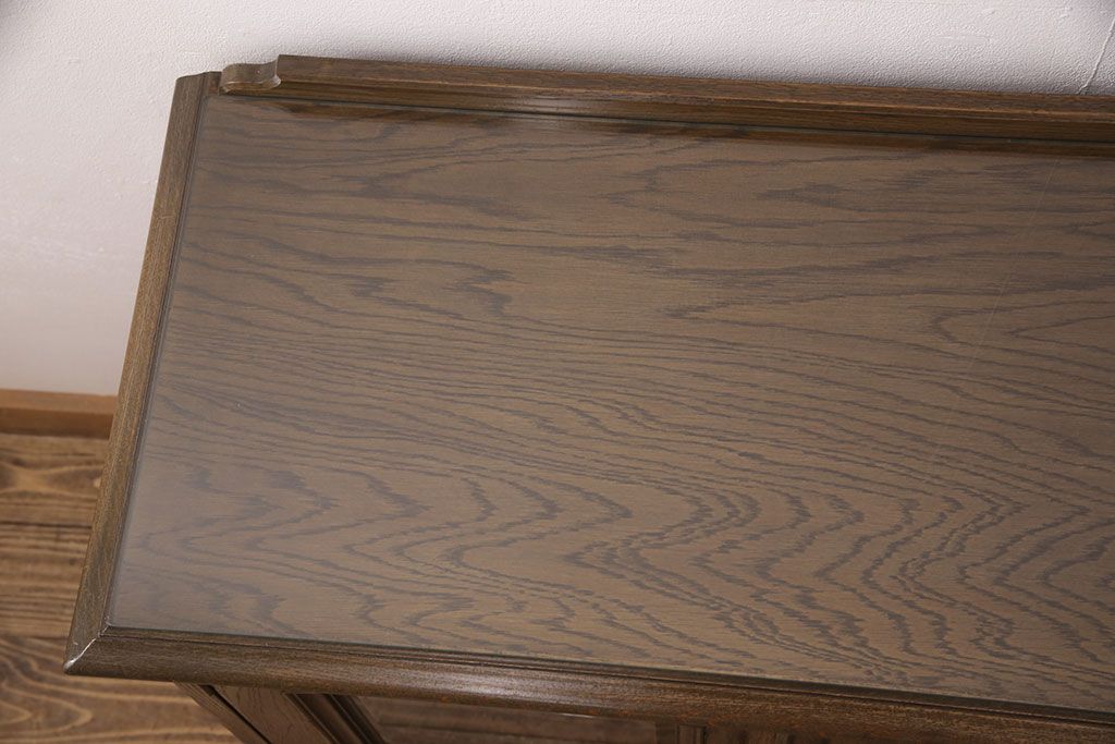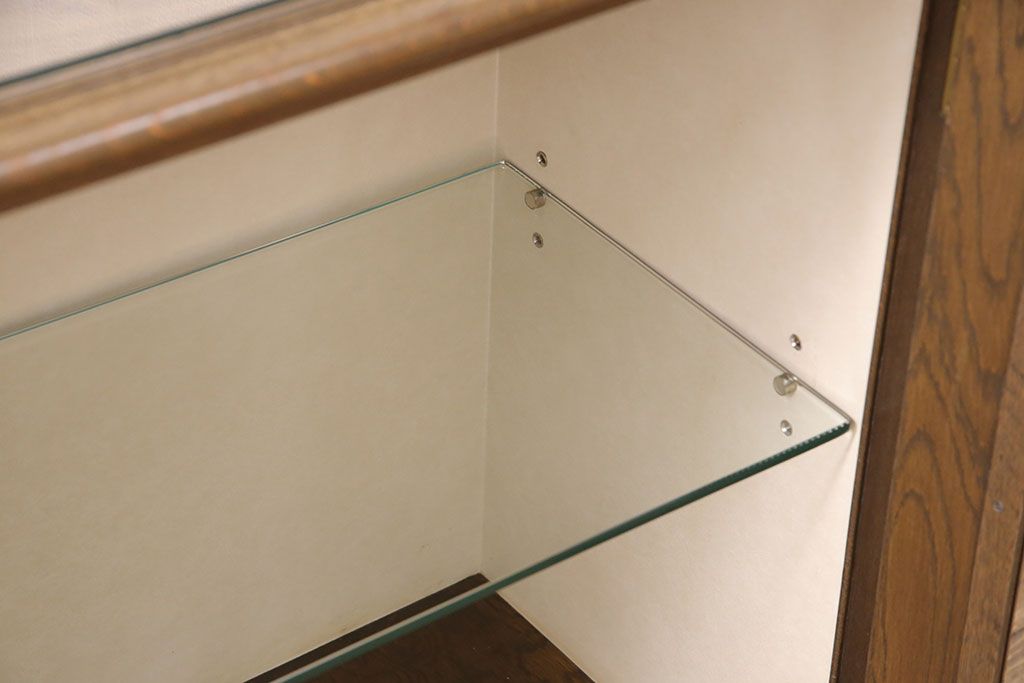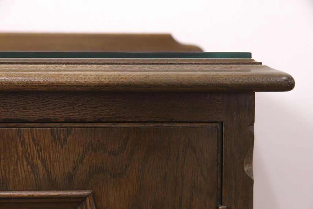 中古 美品 神戸洋家具 永田良介商店 ナラ材 ガラス天板付きの小振りなサイドボード(キャビネット、収納棚、戸棚)(R-051683)