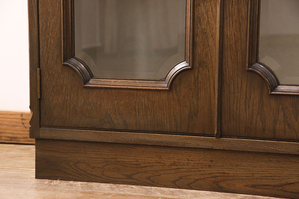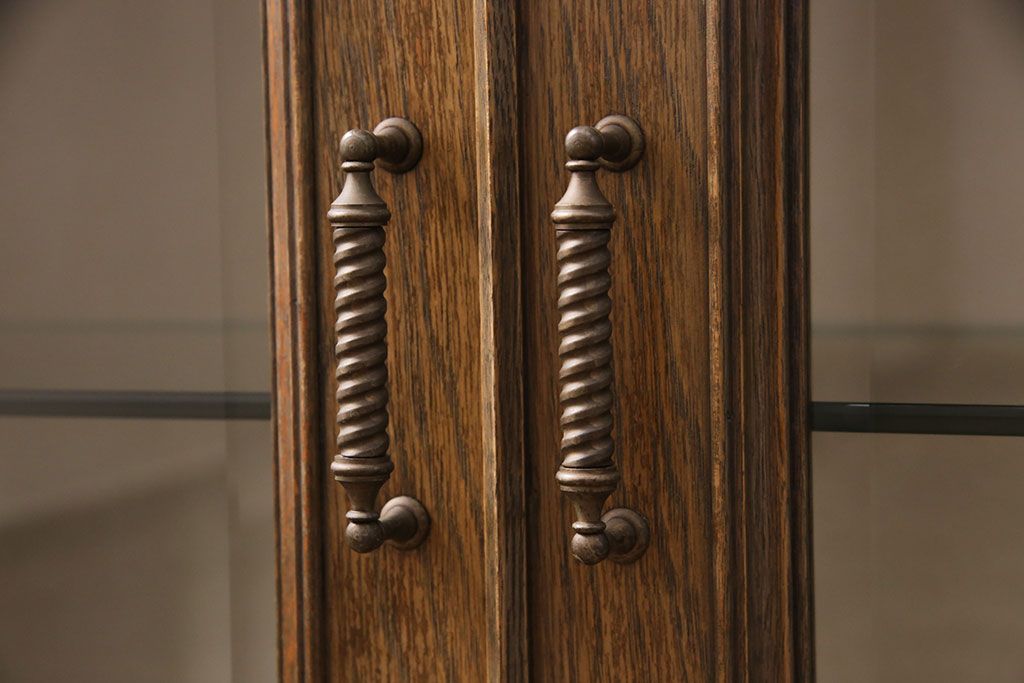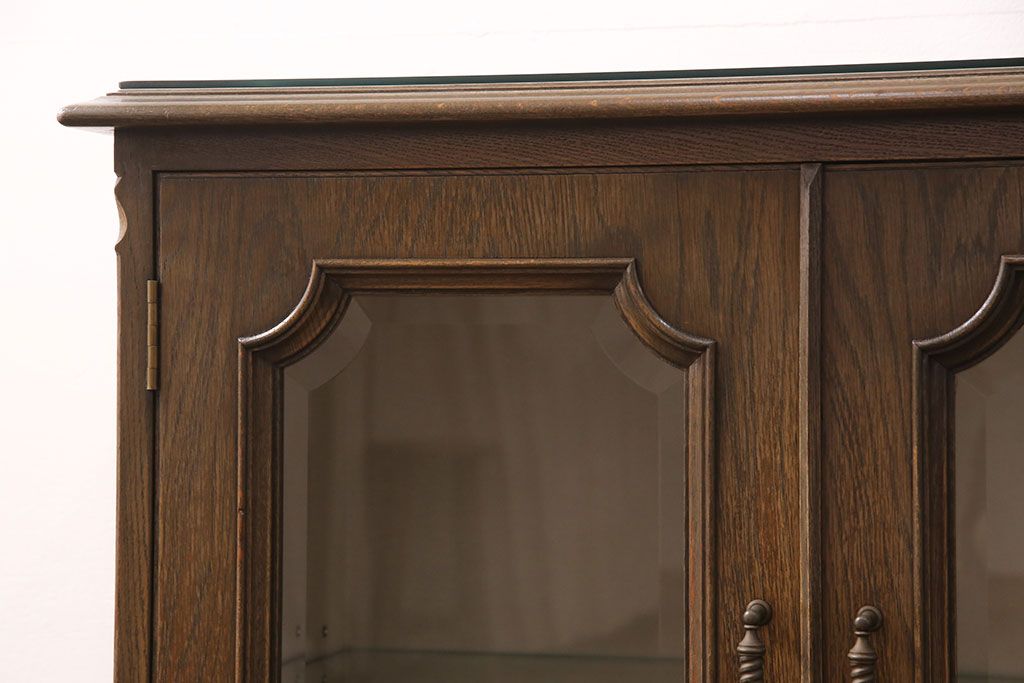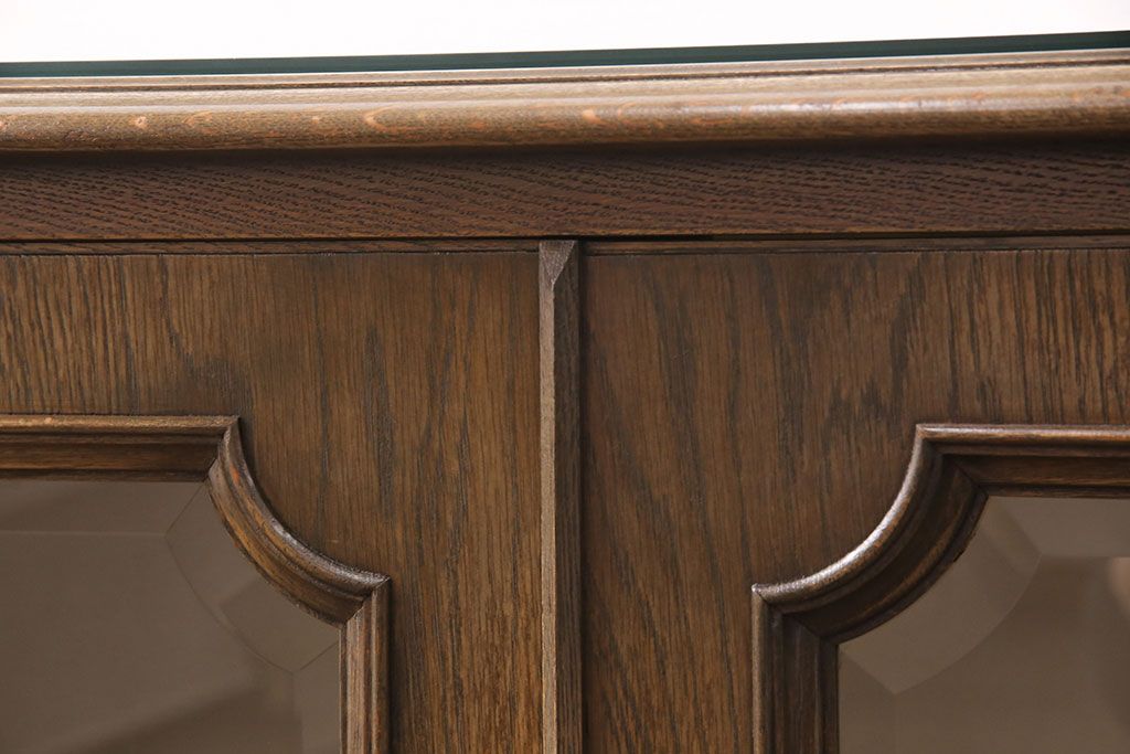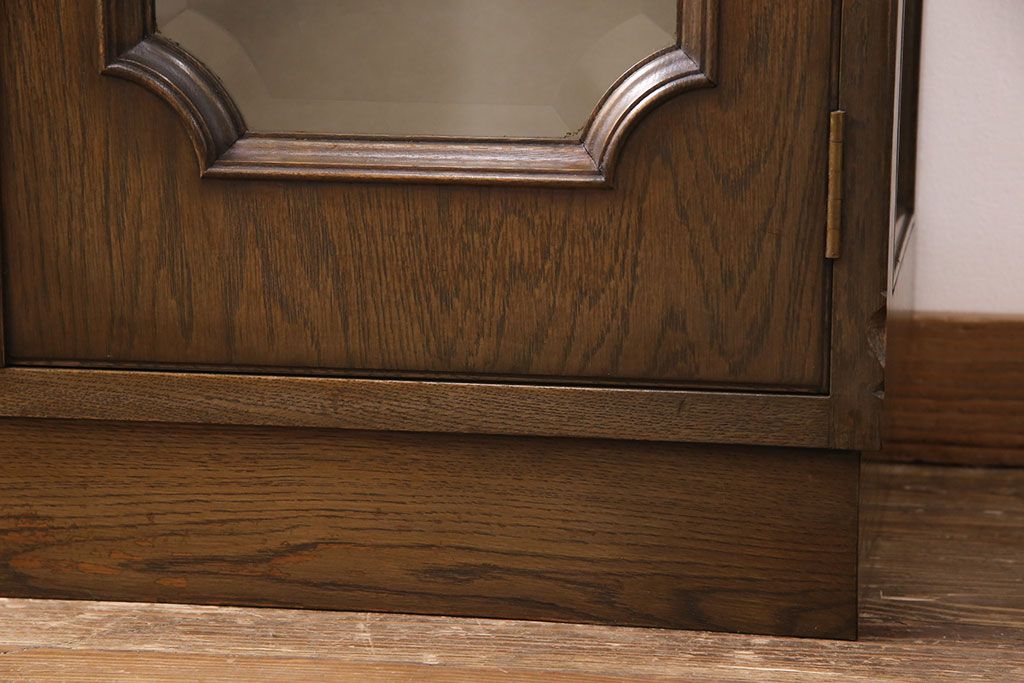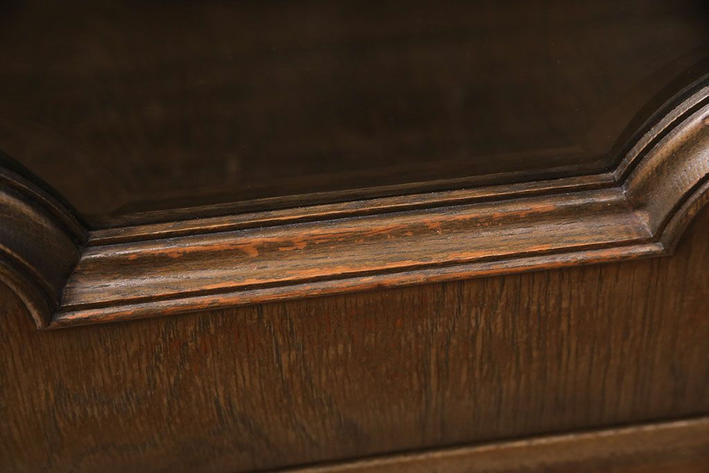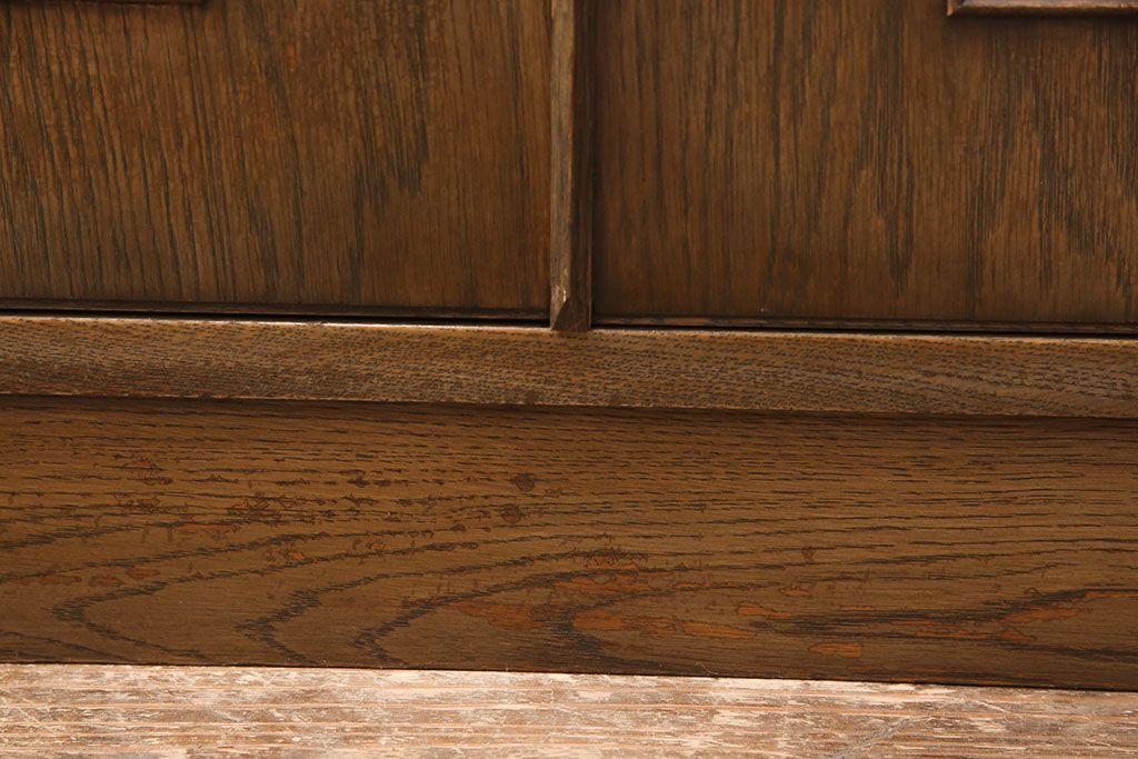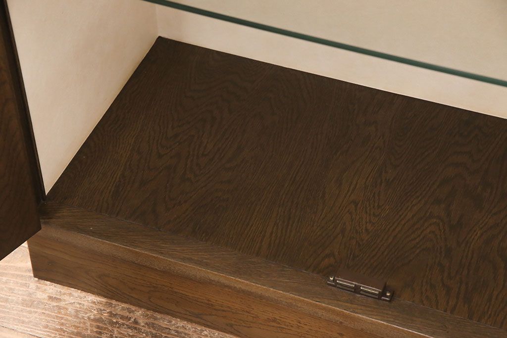 中古 美品 神戸洋家具 永田良介商店 ナラ材 ガラス天板付きの小振りなサイドボード(キャビネット、収納棚、戸棚)(R-051683)