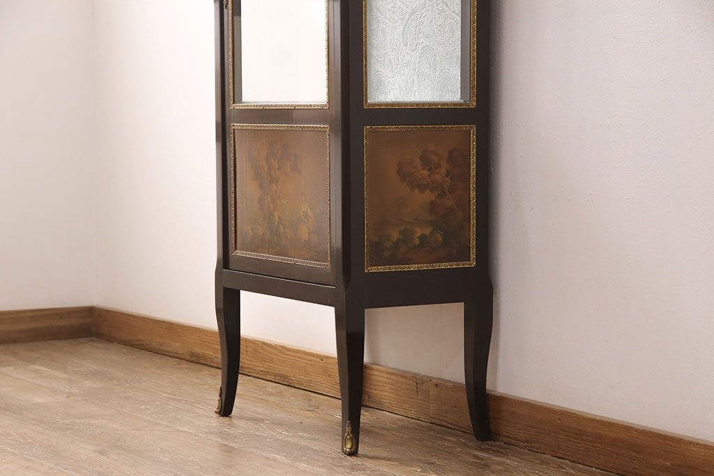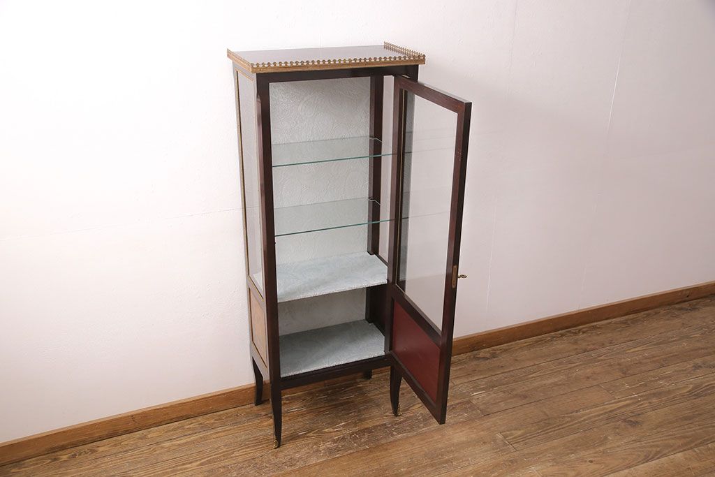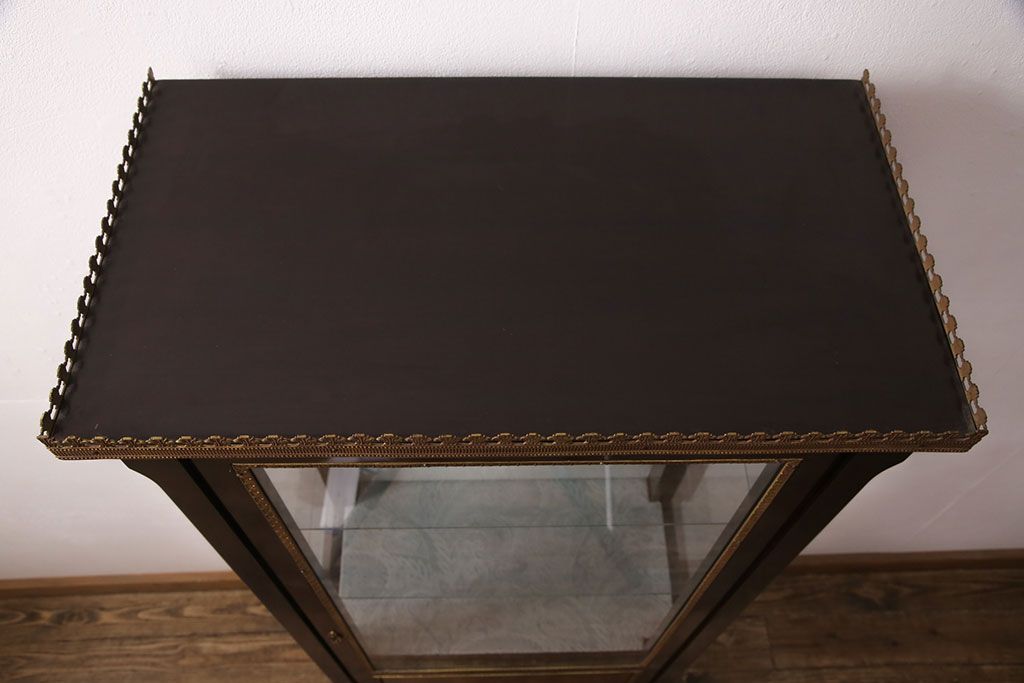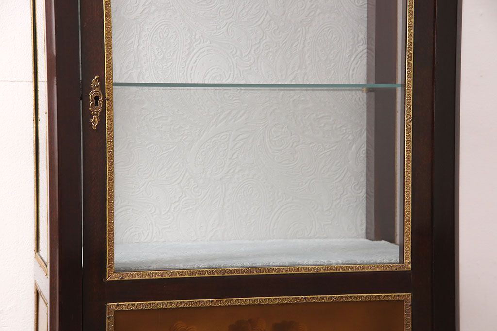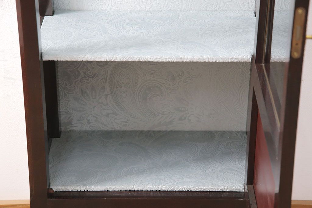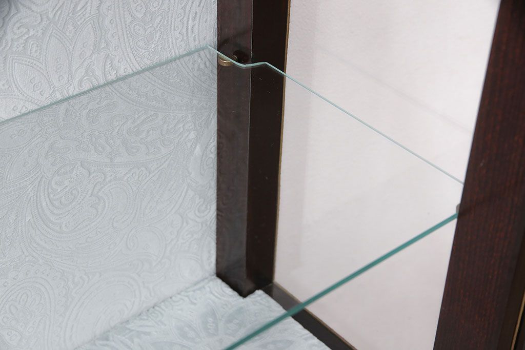 セミオーダー家具実績 > イタリアヴィンテージのショーケースをリペア&カスタム!扉内背面、底面の生地を張り替え。(ガラスケース、陳列棚、飾り棚、キャビネット)