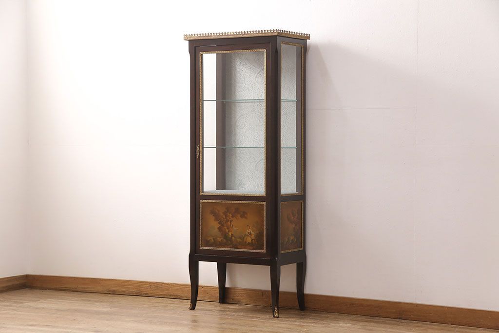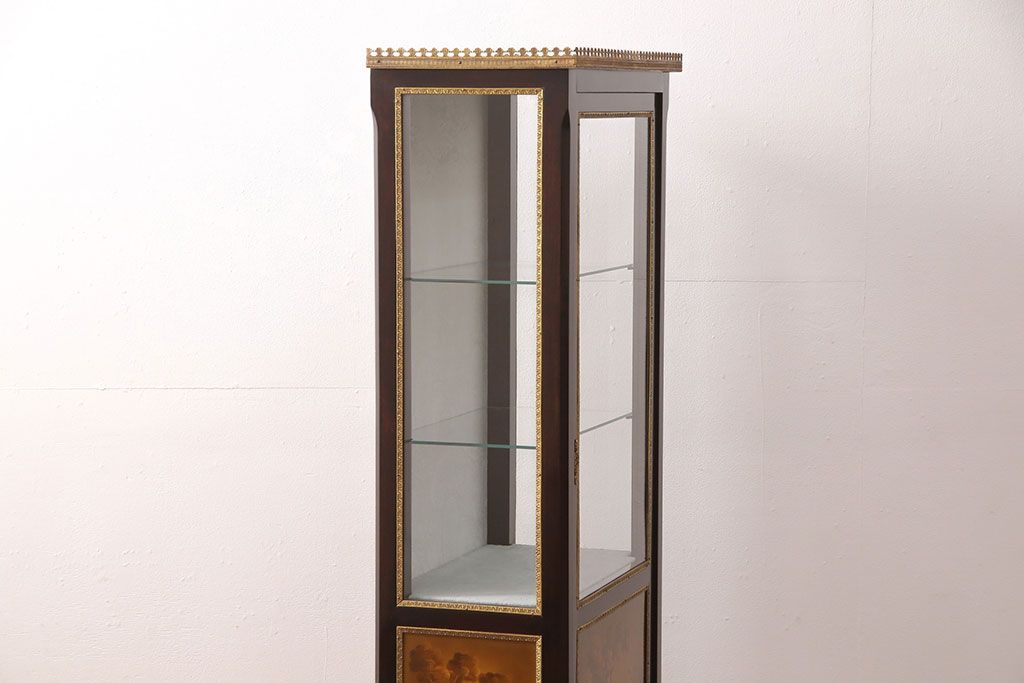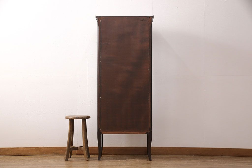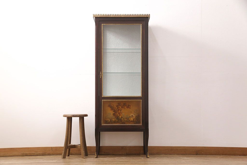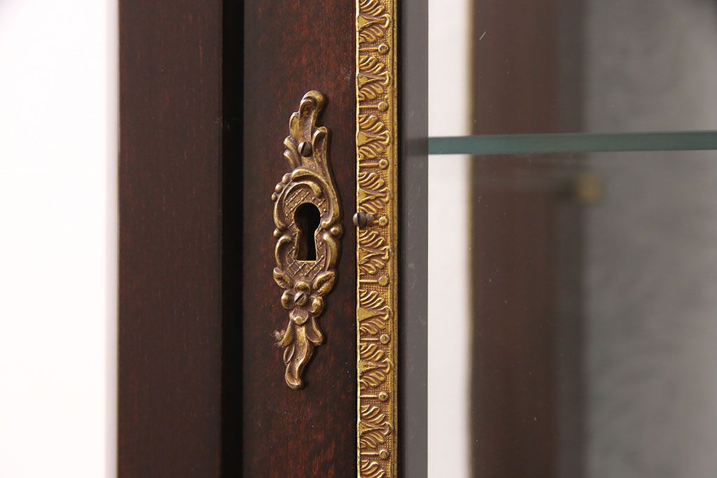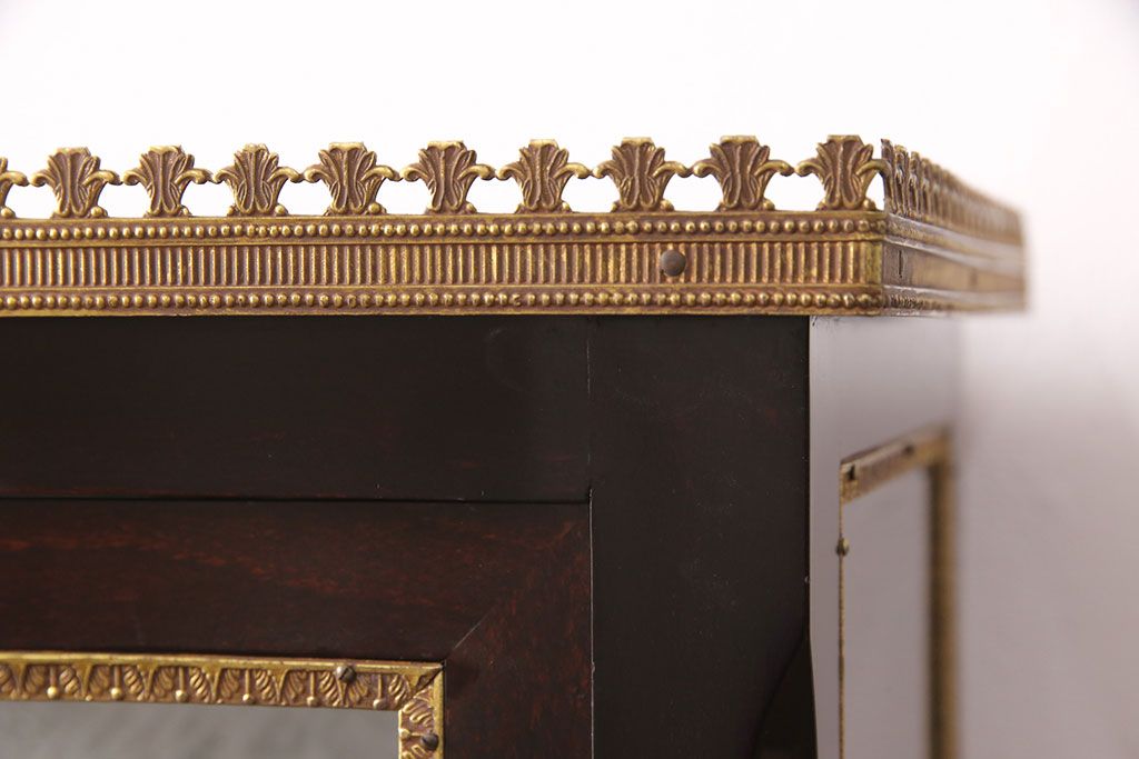 セミオーダー家具実績 > イタリアヴィンテージのショーケースをリペア&カスタム!扉内背面、底面の生地を張り替え。(ガラスケース、陳列棚、飾り棚、キャビネット)