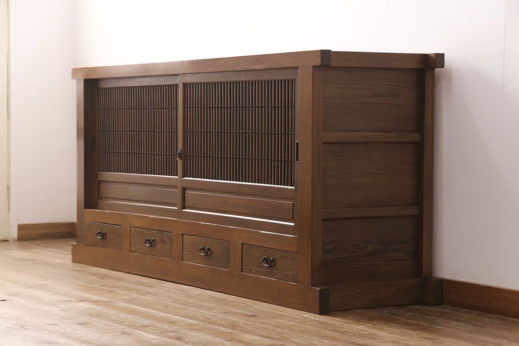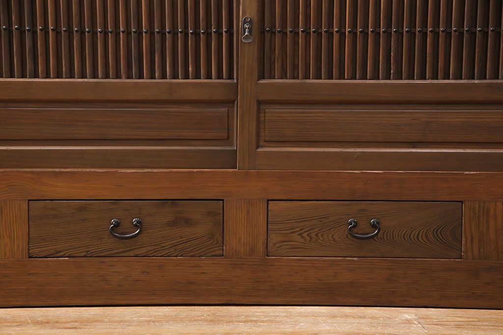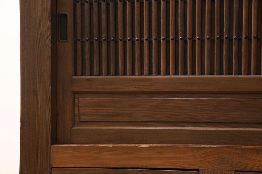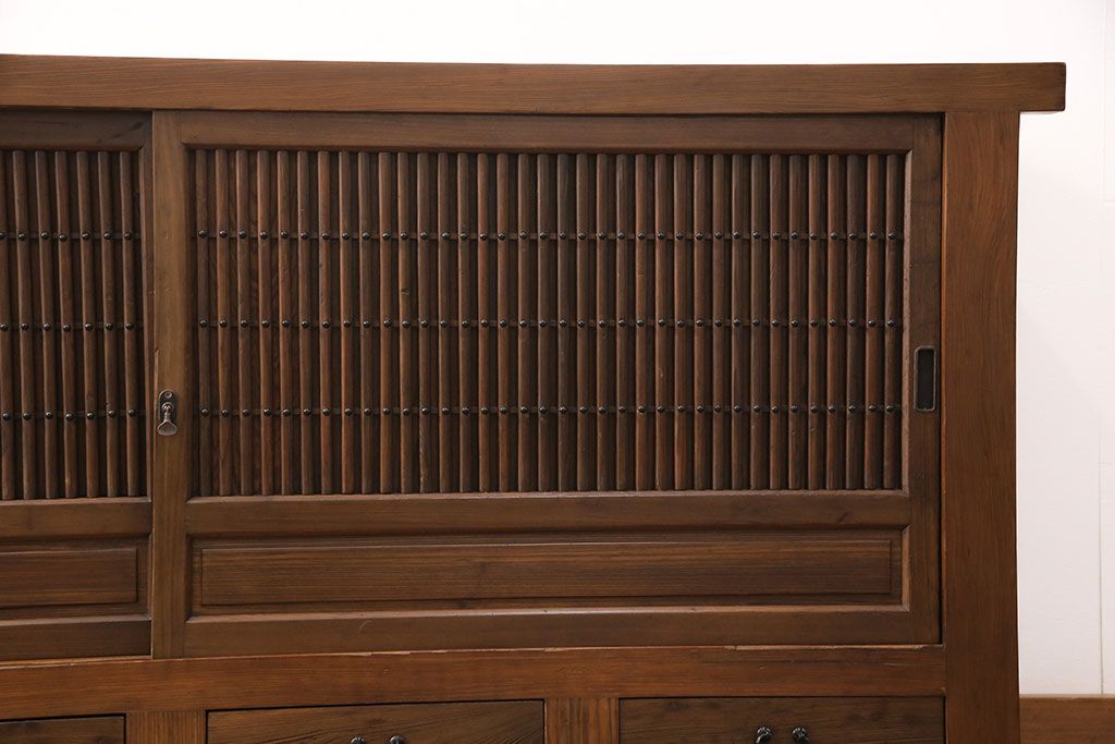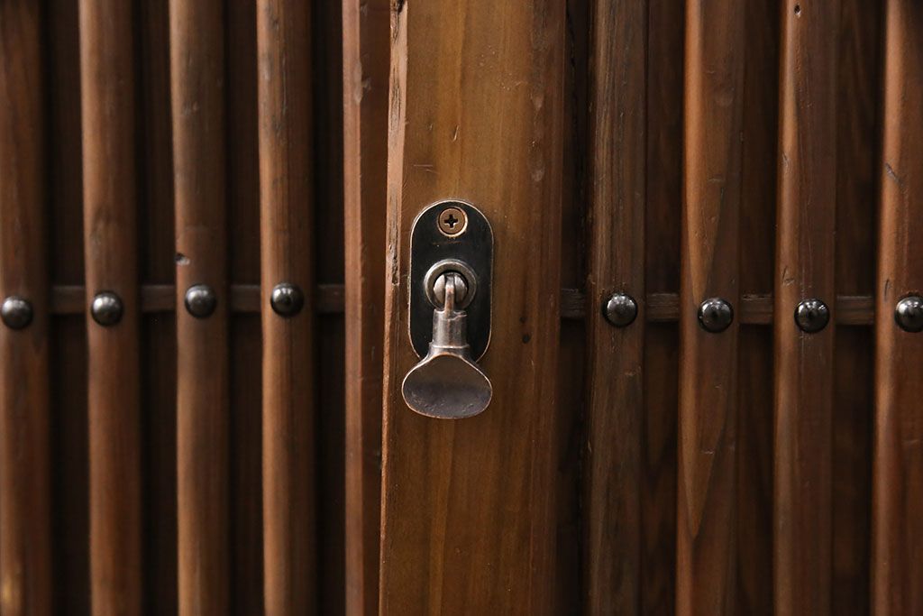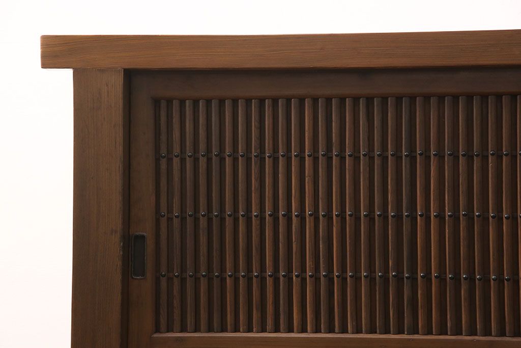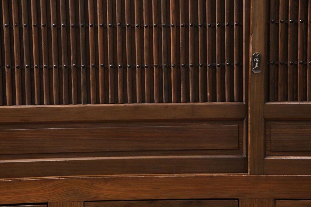 和箪笥> 水屋箪笥 > 水屋箪笥サイドボードをリペア&カスタム!格子戸に中折れネジ締り錠を取り付け。現状に近しい色味に着色し仕上げ。(水屋箪笥、収納棚、戸棚、食器棚、サイドキャビネット)
