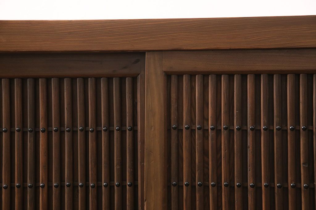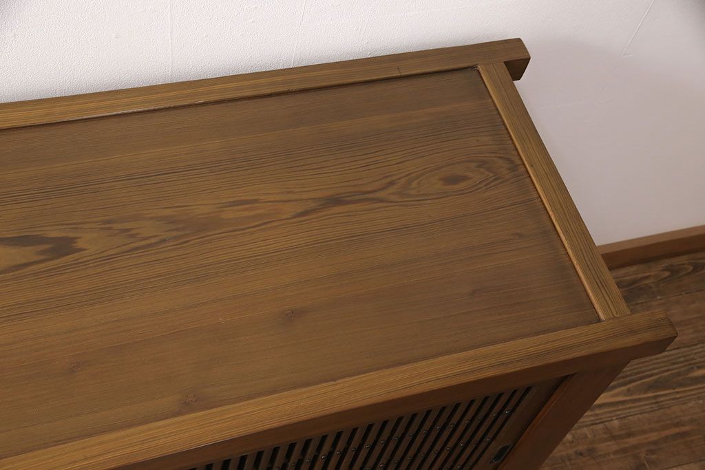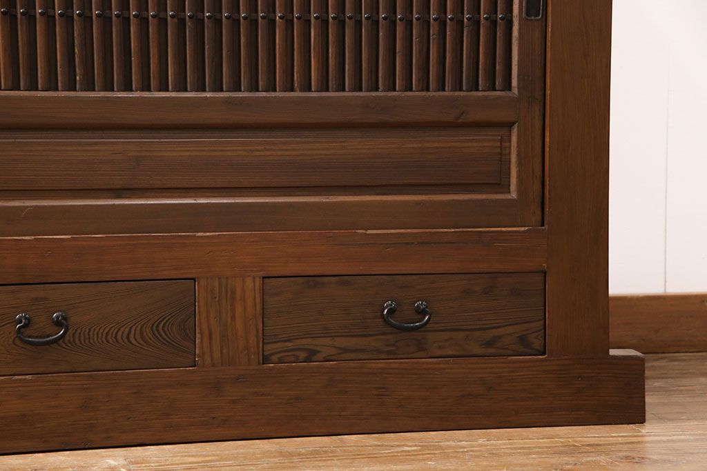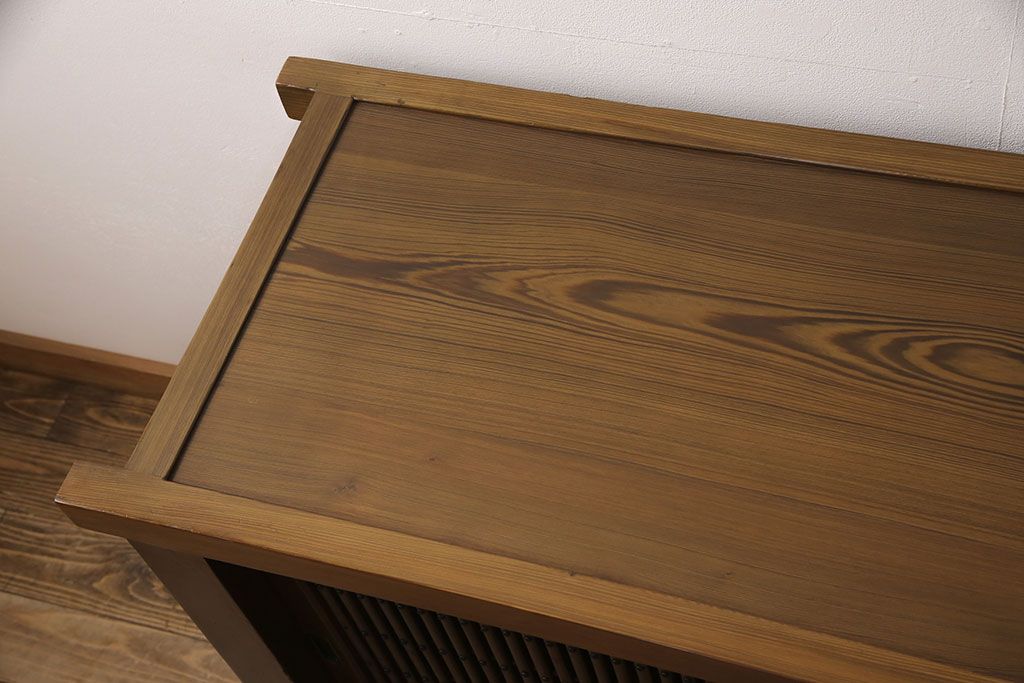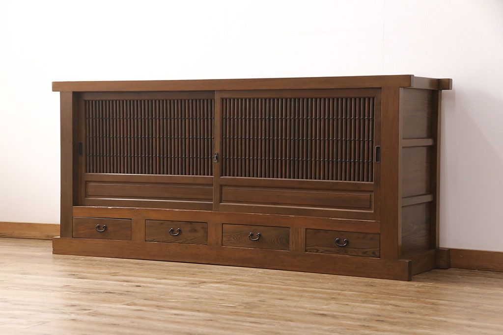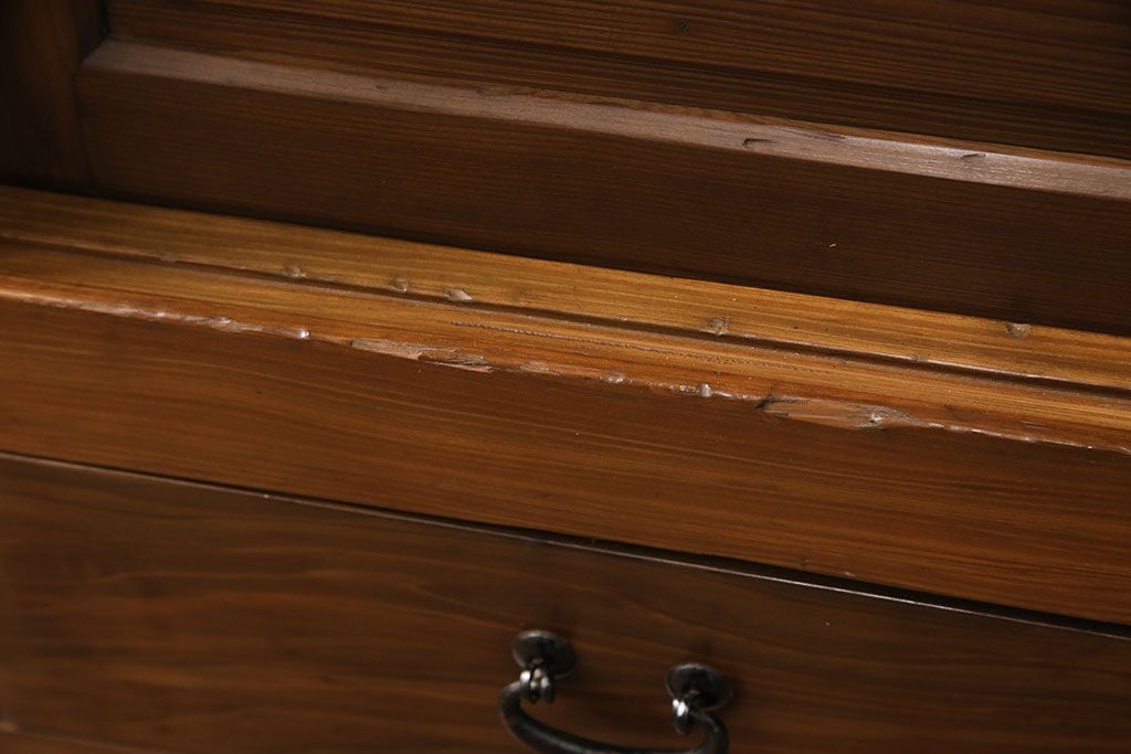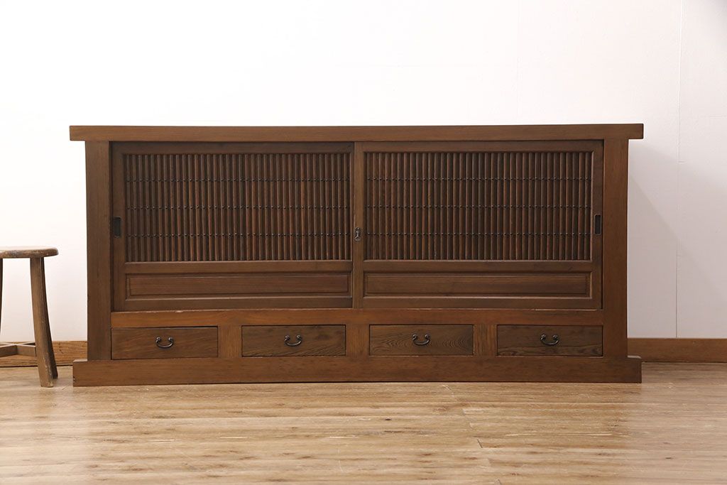 和箪笥> 水屋箪笥 > 水屋箪笥サイドボードをリペア&カスタム!格子戸に中折れネジ締り錠を取り付け。現状に近しい色味に着色し仕上げ。(水屋箪笥、収納棚、戸棚、食器棚、サイドキャビネット)