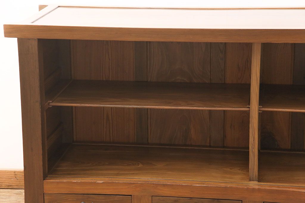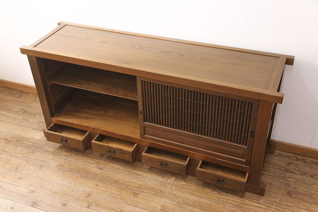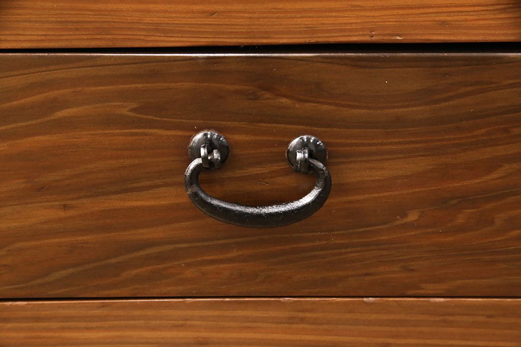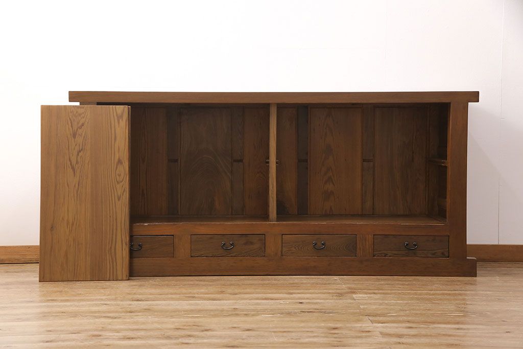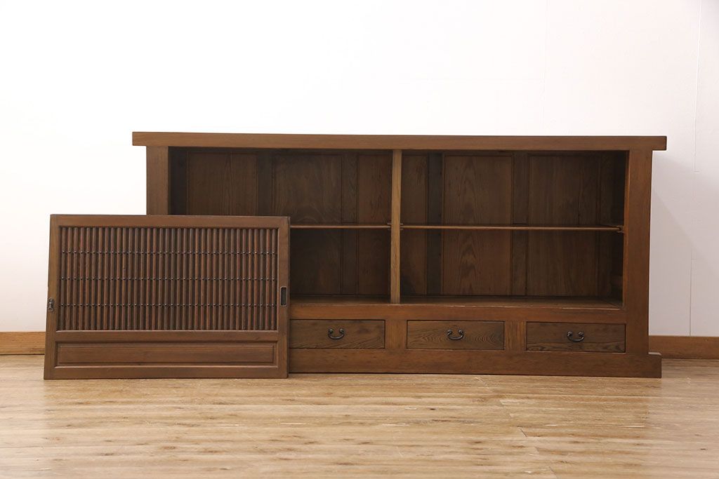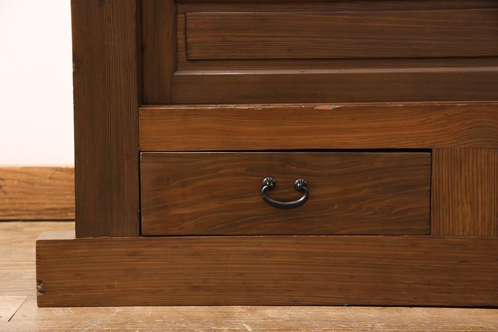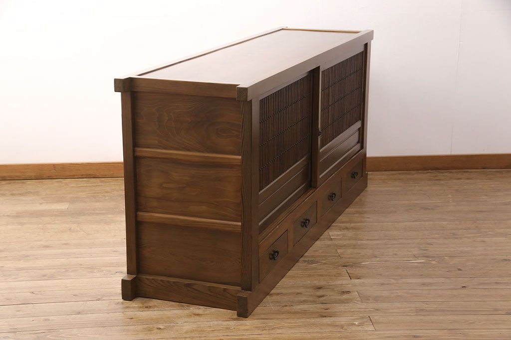 和箪笥> 水屋箪笥 > 水屋箪笥サイドボードをリペア&カスタム!格子戸に中折れネジ締り錠を取り付け。現状に近しい色味に着色し仕上げ。(水屋箪笥、収納棚、戸棚、食器棚、サイドキャビネット)