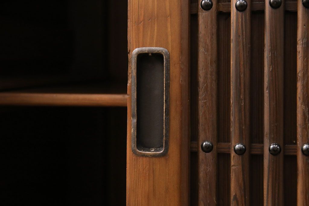 キャビネット・戸棚> 食器棚・カップボード > 水屋箪笥サイドボードをリペア&カスタム!格子戸に中折れネジ締り錠を取り付け。現状に近しい色味に着色し仕上げ。(水屋箪笥、収納棚、戸棚、食器棚、サイドキャビネット)