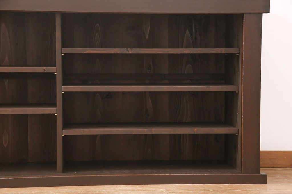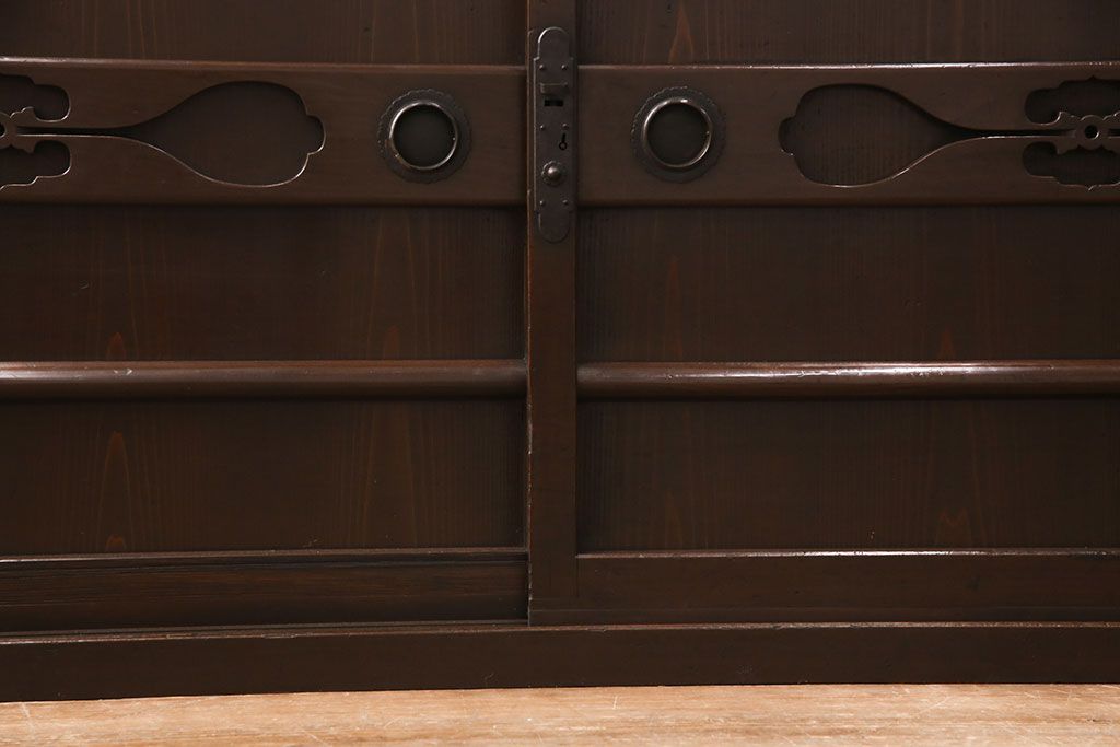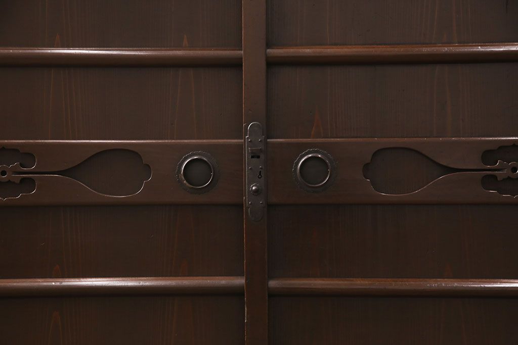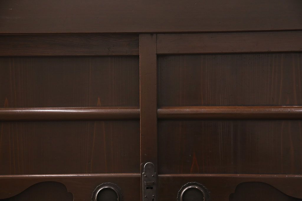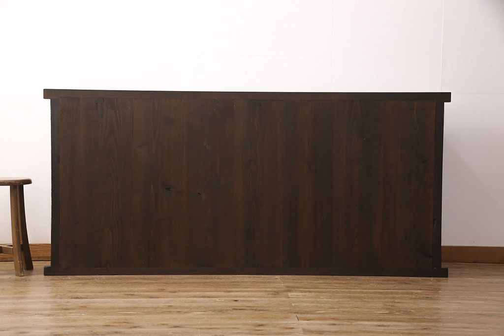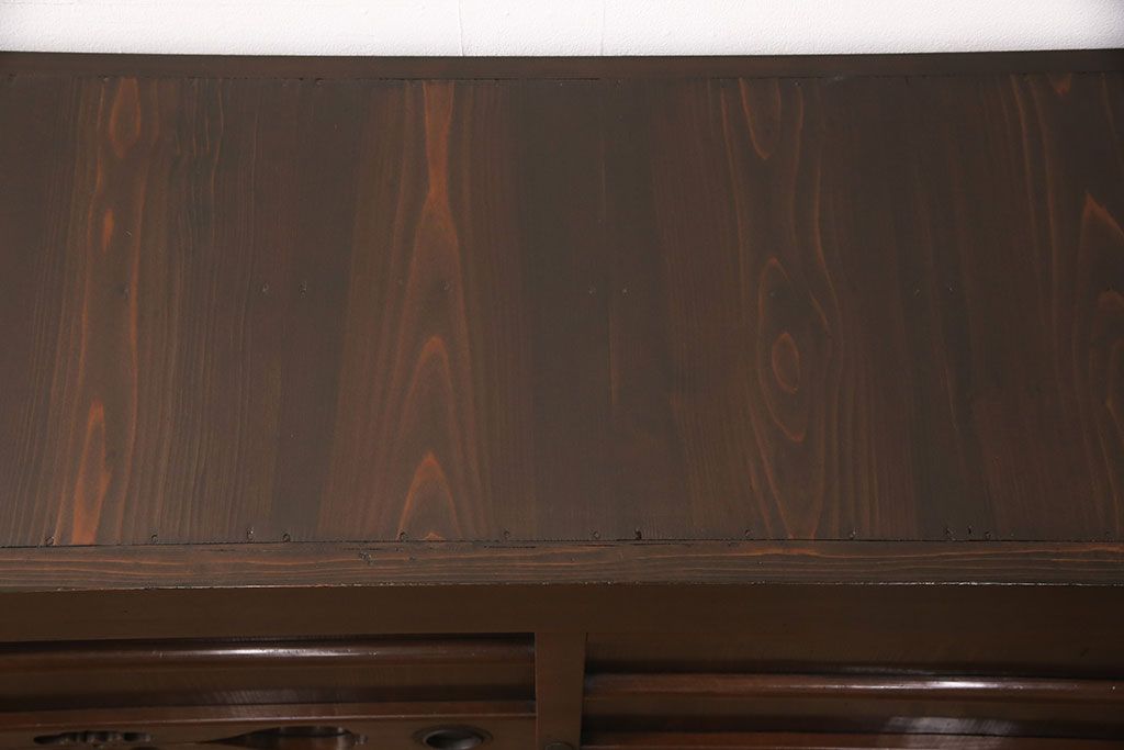 和箪笥> 水屋箪笥 > 明治期の収納箪笥サイドボードをリペア&カスタム!当店オーダー商品を参考に左右分割式・可動式の棚板を設置。現状に近しい色味に着色し仕上げ。(水屋箪笥、食器棚、収納棚、戸棚、キャビネット、サイドボード)