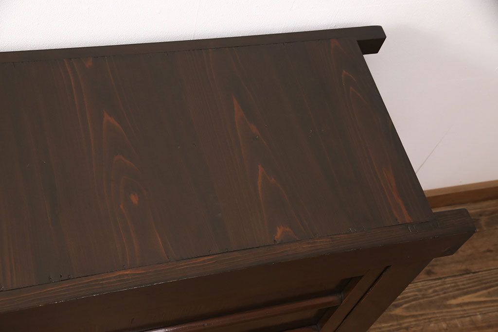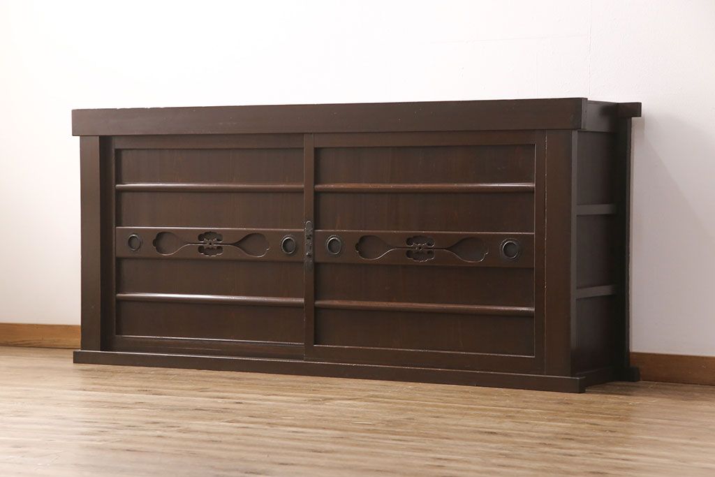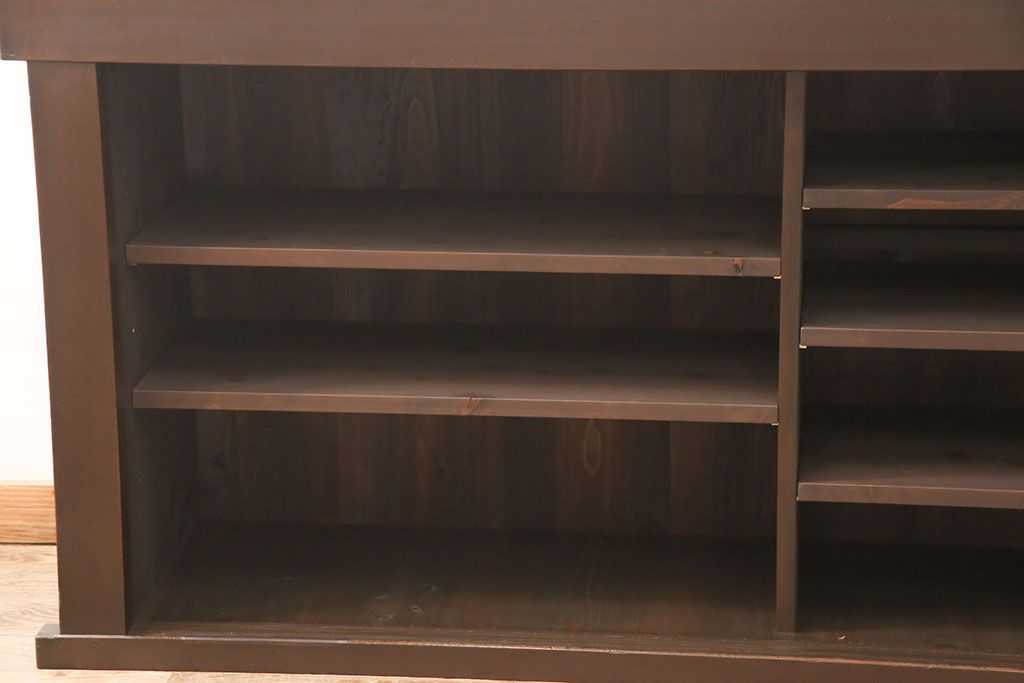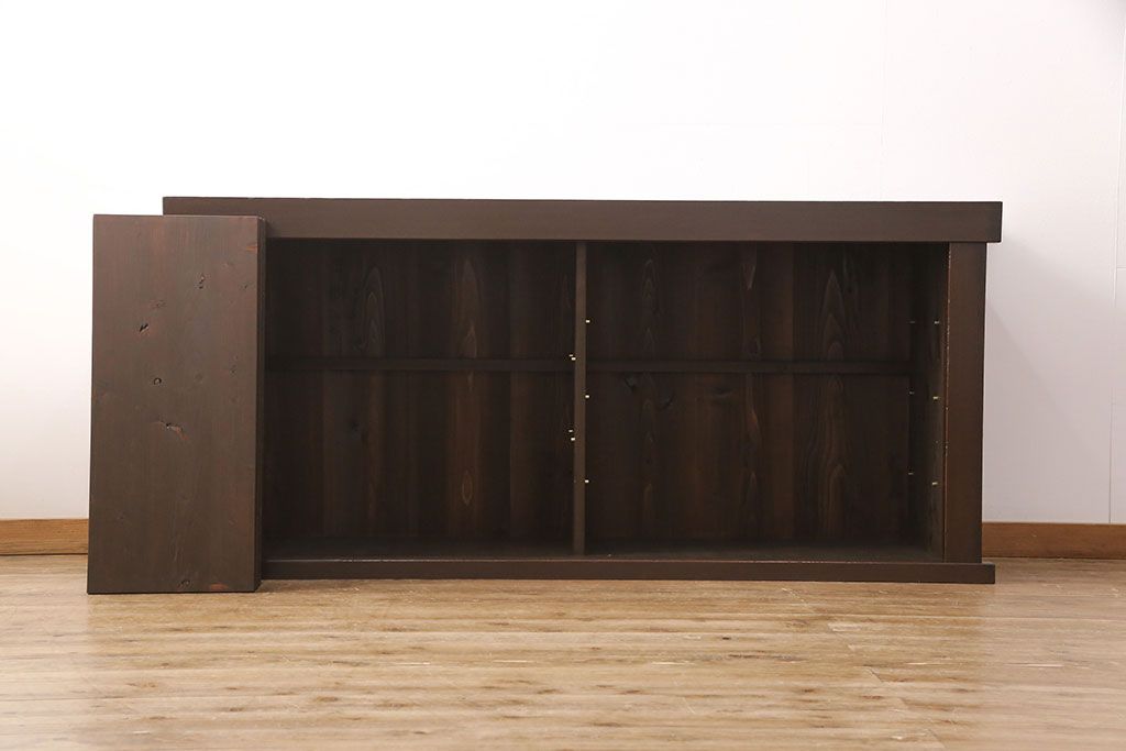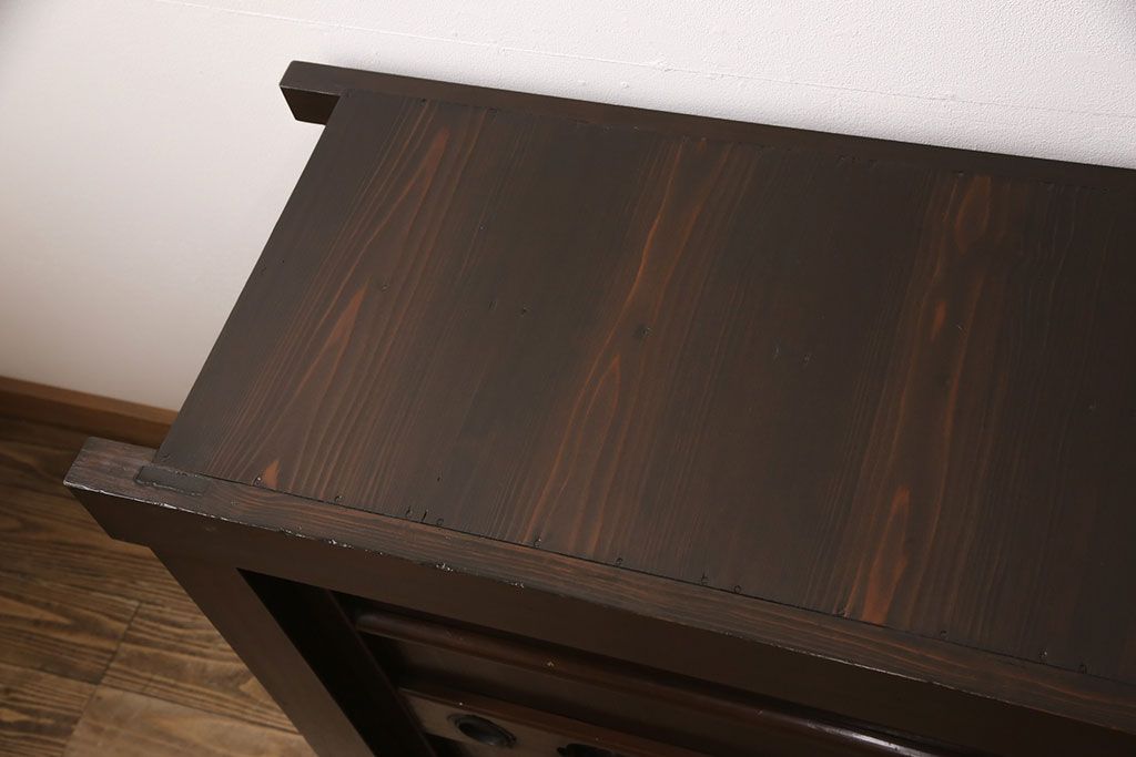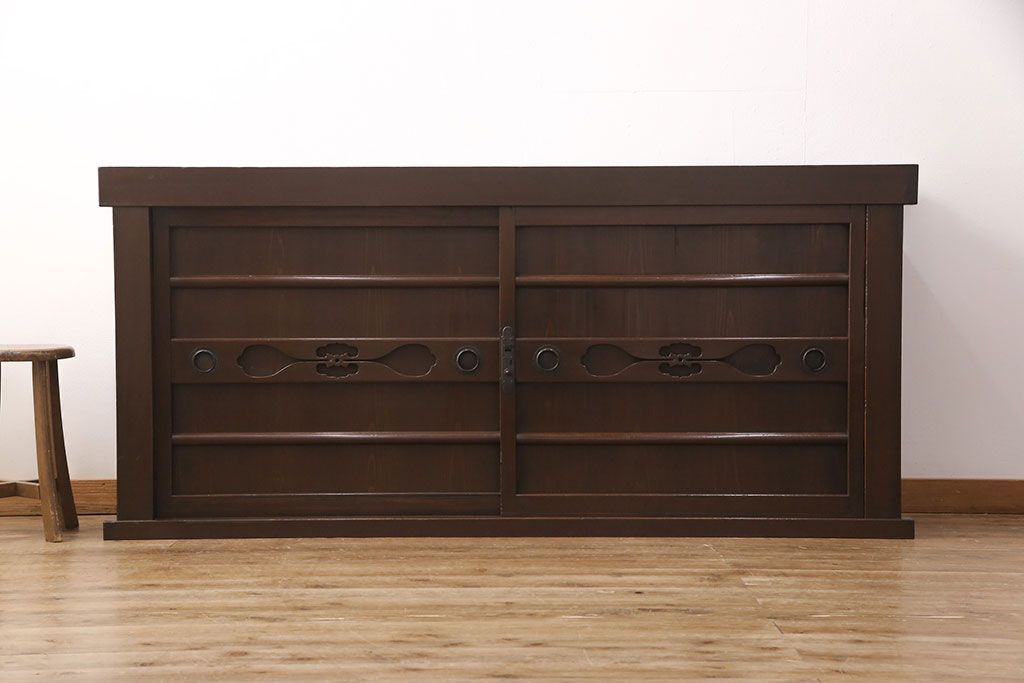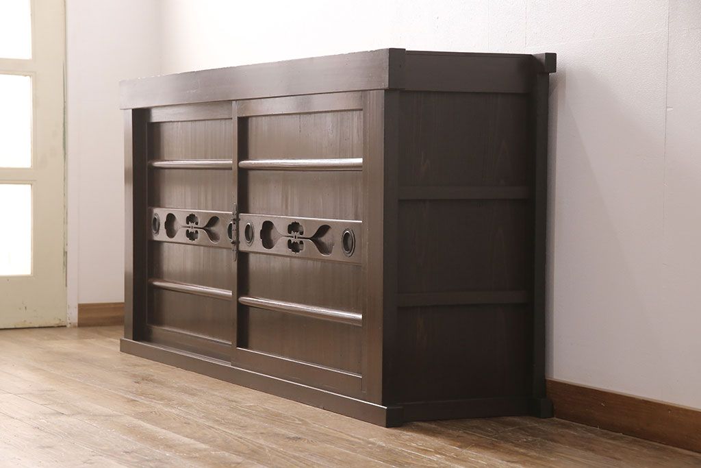和箪笥> 水屋箪笥 > 明治期の収納箪笥サイドボードをリペア&カスタム!当店オーダー商品を参考に左右分割式・可動式の棚板を設置。現状に近しい色味に着色し仕上げ。(水屋箪笥、食器棚、収納棚、戸棚、キャビネット、サイドボード)