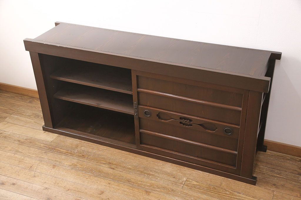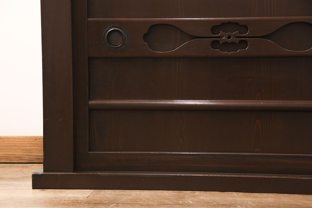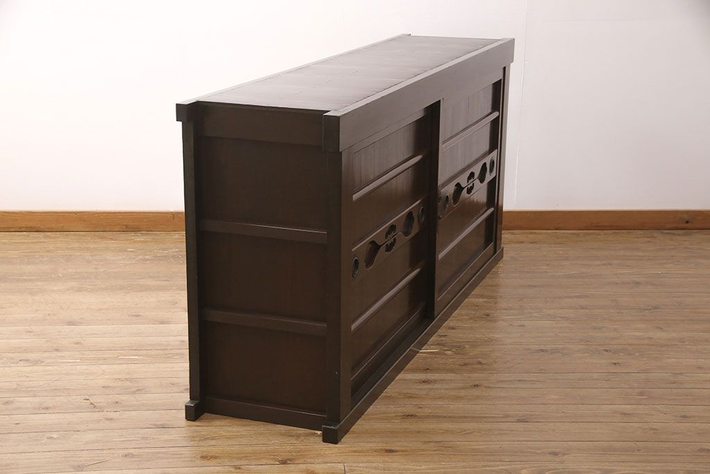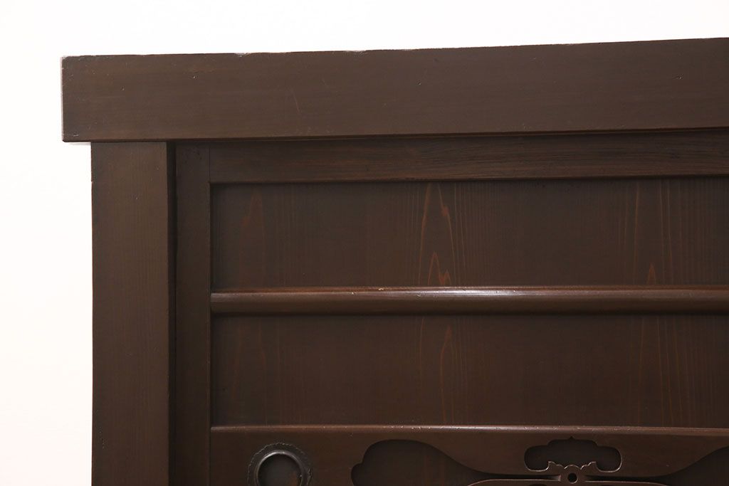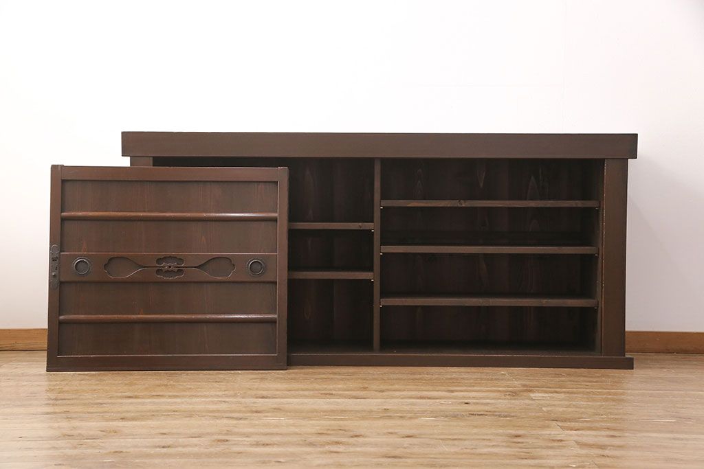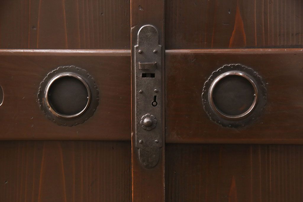 和箪笥> 水屋箪笥 > 明治期の収納箪笥サイドボードをリペア&カスタム!当店オーダー商品を参考に左右分割式・可動式の棚板を設置。現状に近しい色味に着色し仕上げ。(水屋箪笥、食器棚、収納棚、戸棚、キャビネット、サイドボード)