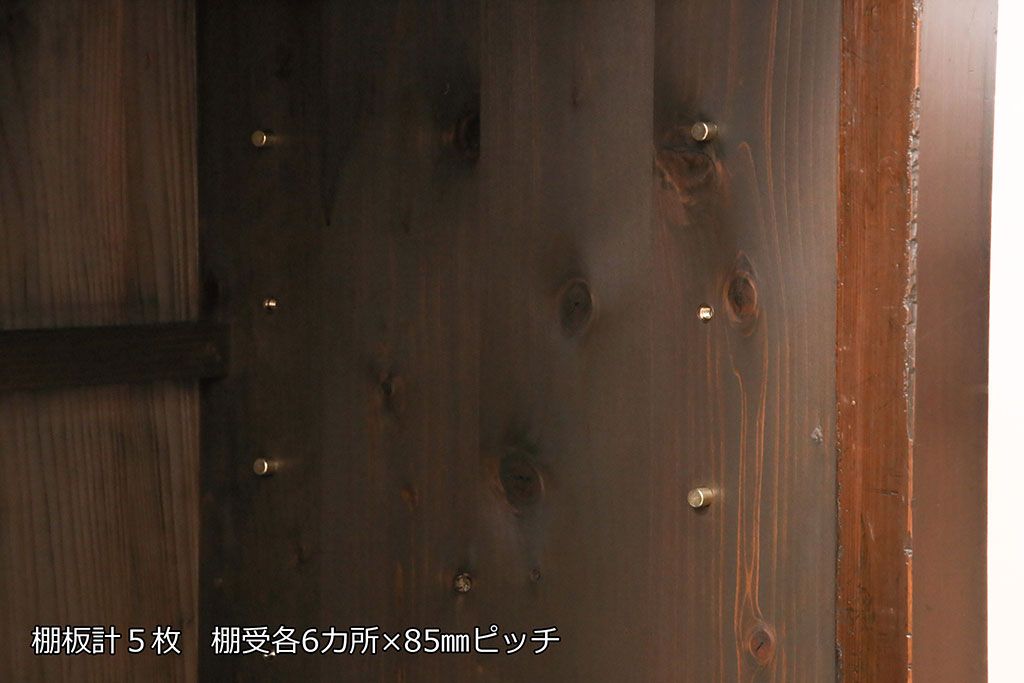 明治期の収納箪笥サイドボードをリペア&カスタム!当店オーダー商品を参考に左右分割式・可動式の棚板を設置。現状に近しい色味に着色し仕上げ。(水屋箪笥、食器棚、収納棚、戸棚、キャビネット、サイドボード)