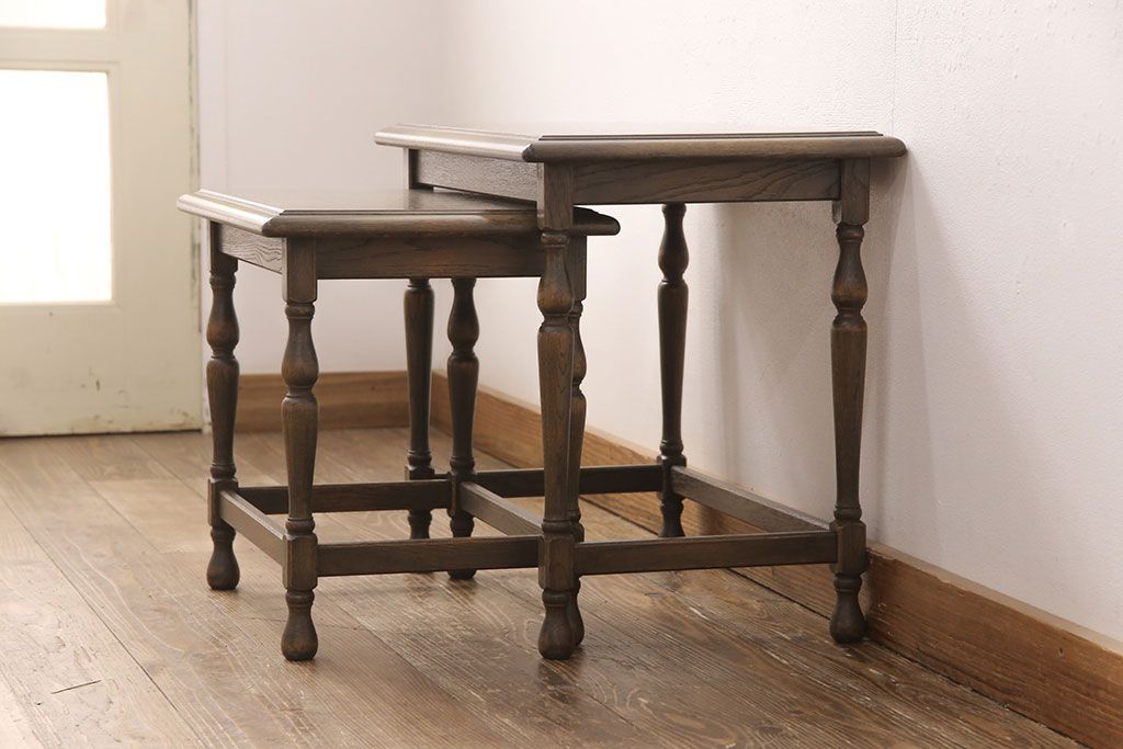 中古 美品 神戸洋家具・永田良介商店 クラシカルな雰囲気漂うネストテーブル(サイドテーブル、飾り台)(R-051690)