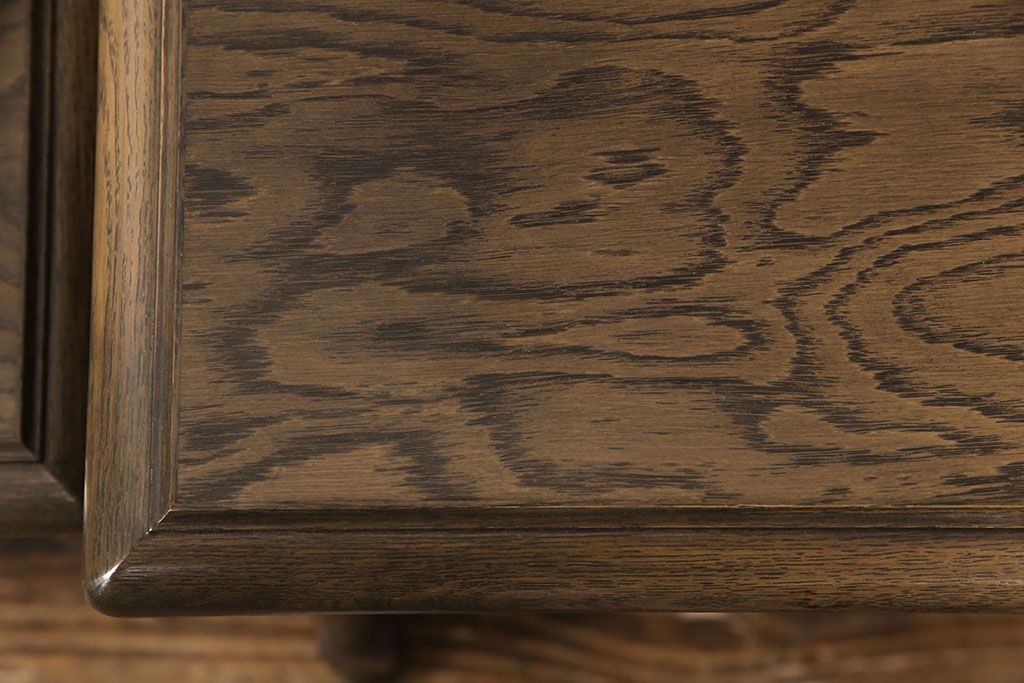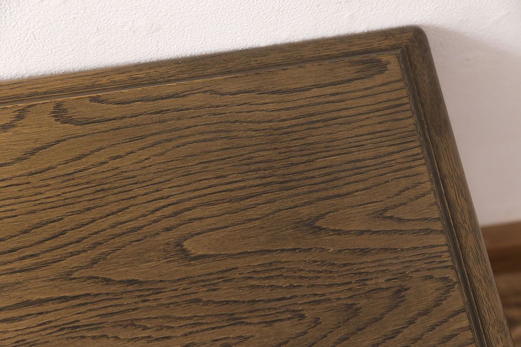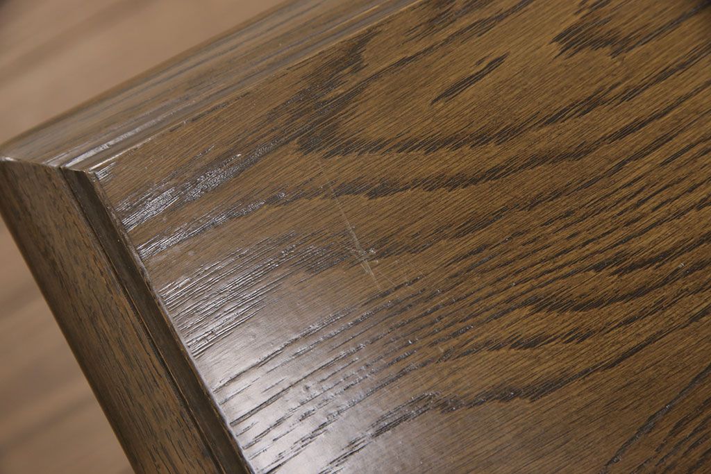 天板は当店でクリア塗装を施しております。小キズ等が目立ちにくく、耐水性と耐久性に優れたお手入れがしやすい仕上げです。