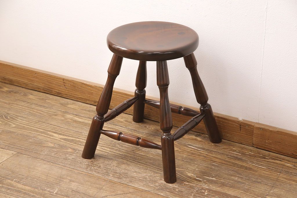 中古 美品 松本民芸家具 花台としても活躍する温もりあふれる四脚スツール(椅子、花台)(R-051703)