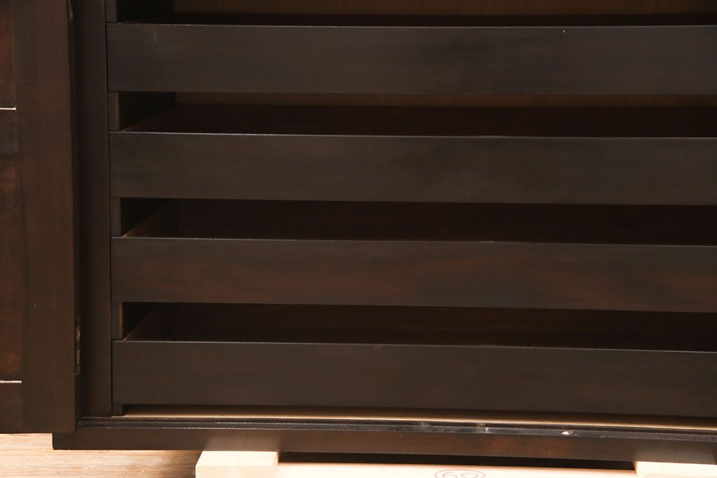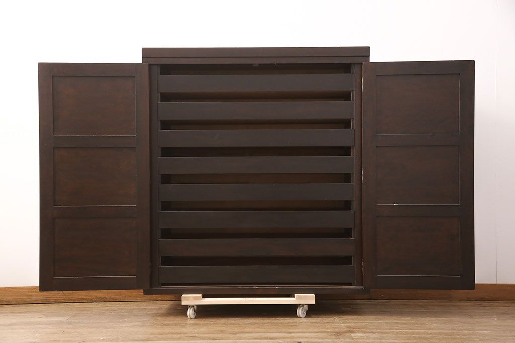 和箪笥 > 中古 松本民芸家具 脚(台輪)付きリメイク 取り入れやすいサイズが嬉しい!衣装盆付き収納棚(和タンス、着物箪笥、戸棚、引き出し)(R-051659)