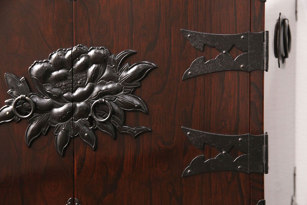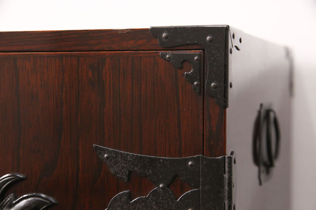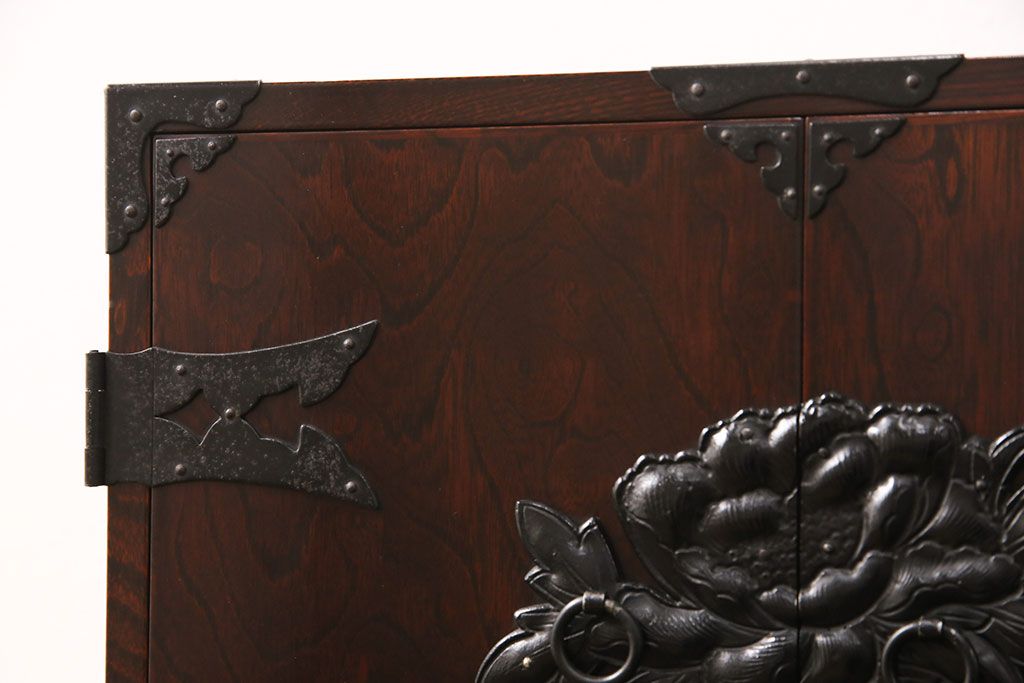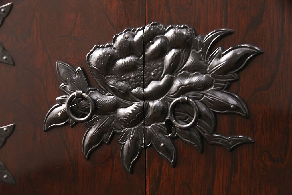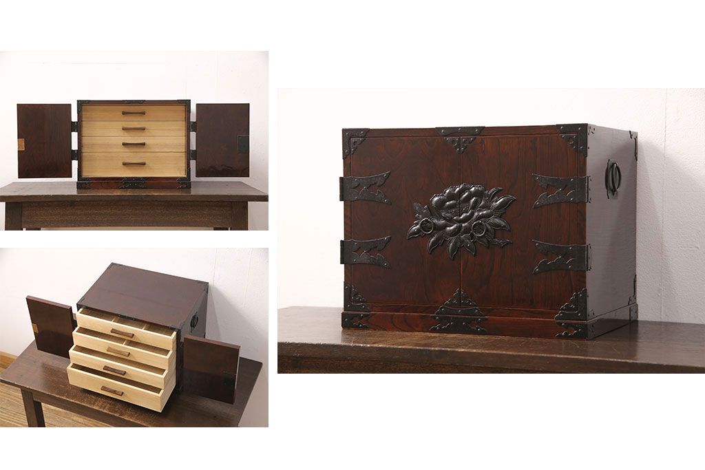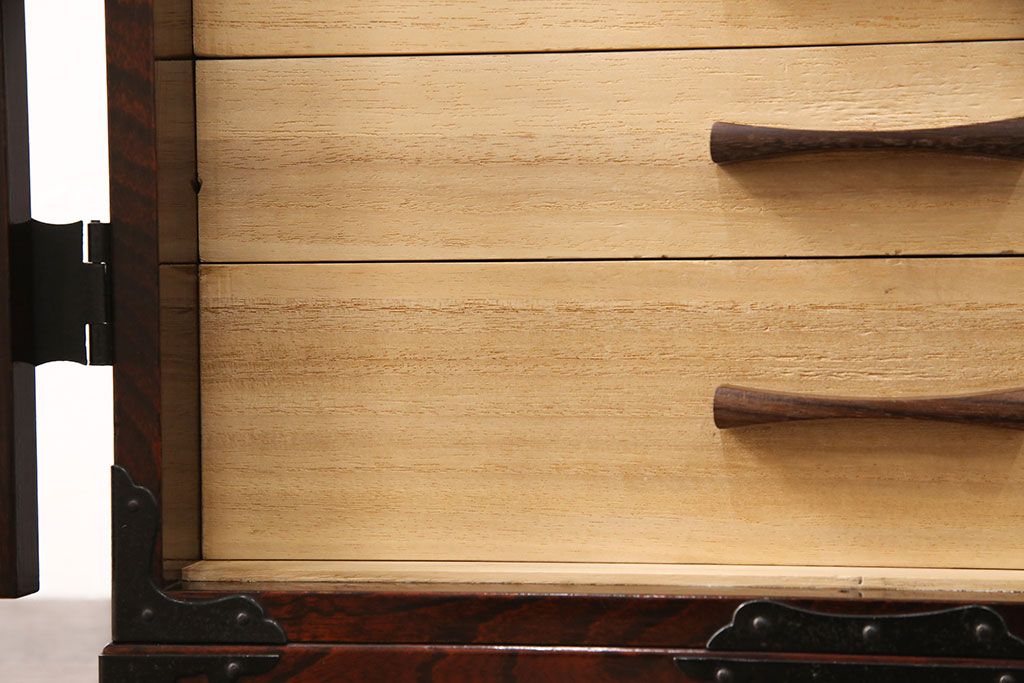豪華な金具が目を惹く民芸家具の小箪笥です。