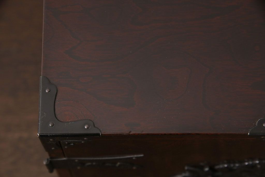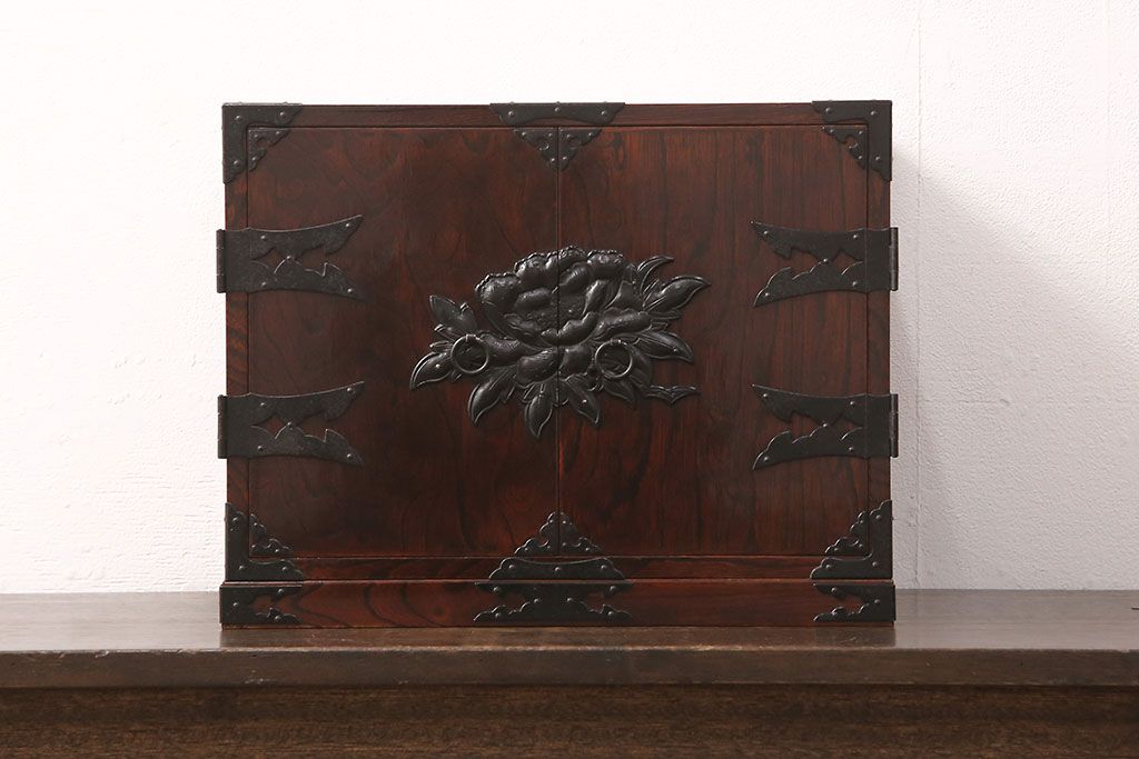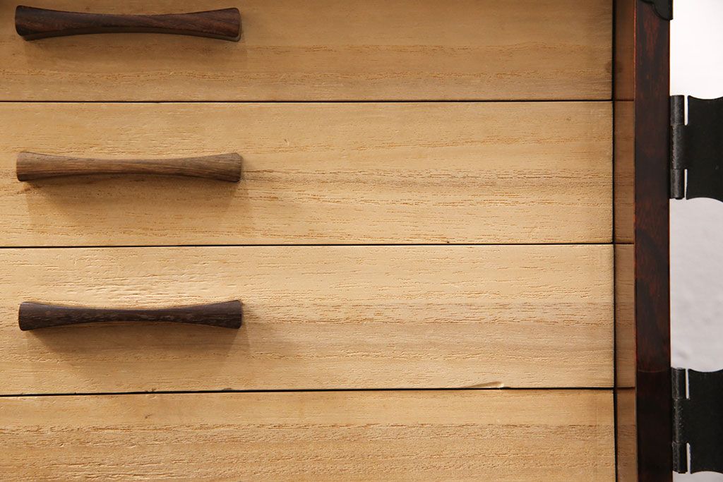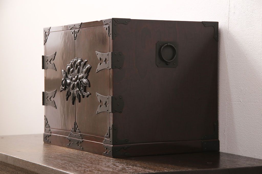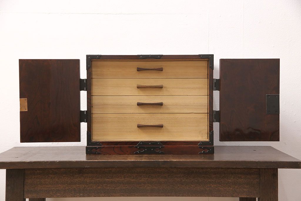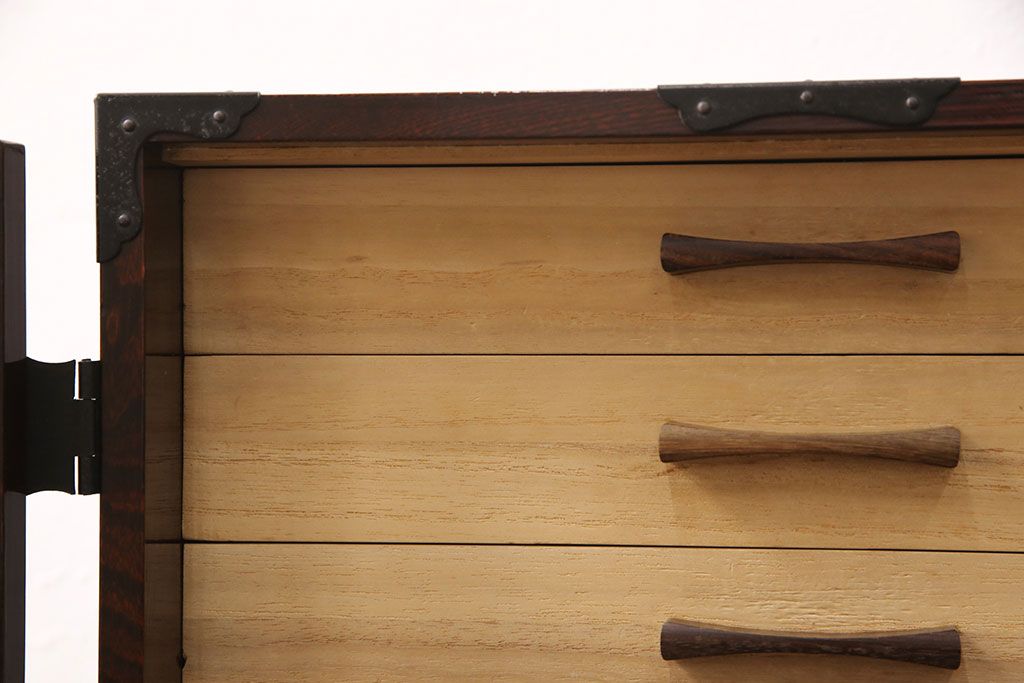 民芸家具 > 和製ビンテージ 民芸家具 立派な金具が目を惹く小箪笥(小引き出し、小抽斗、小物収納、卓上収納、ヴィンテージ)(R-051706)