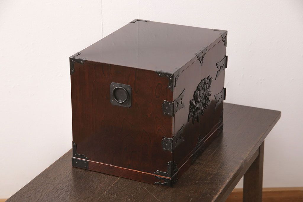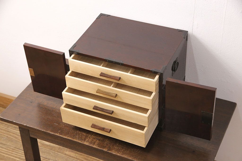 小物収納・トランク> 小引き出し > 和製ビンテージ 民芸家具 立派な金具が目を惹く小箪笥(小引き出し、小抽斗、小物収納、卓上収納、ヴィンテージ)(R-051706)