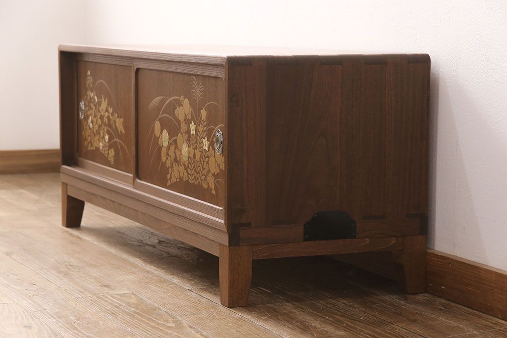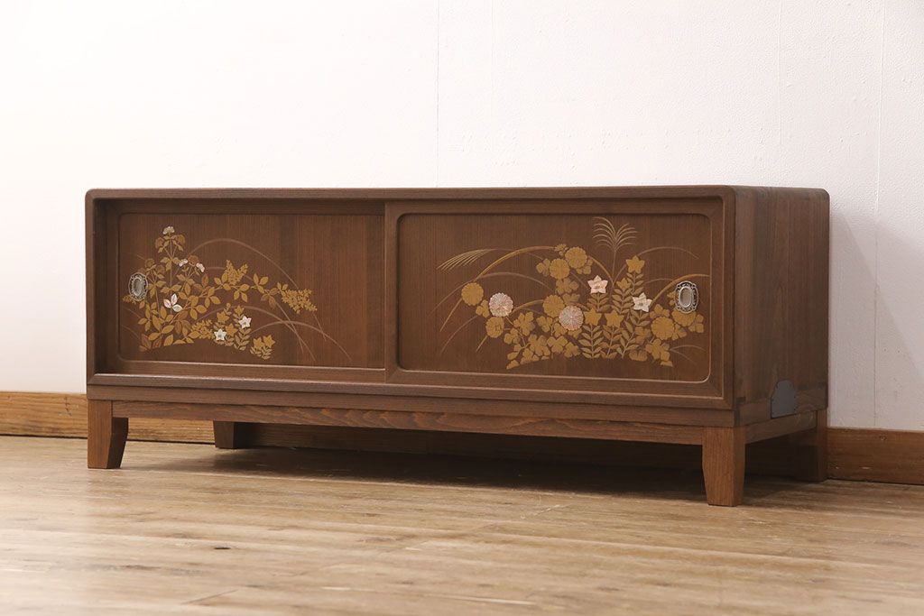中古 極上美品 脚付きリメイク 金蒔絵と螺鈿が素晴らしい!落ち着いた佇まいが魅力のローボード(テレビ台、テレビボード、収納棚、リビングボード)(R-051726)