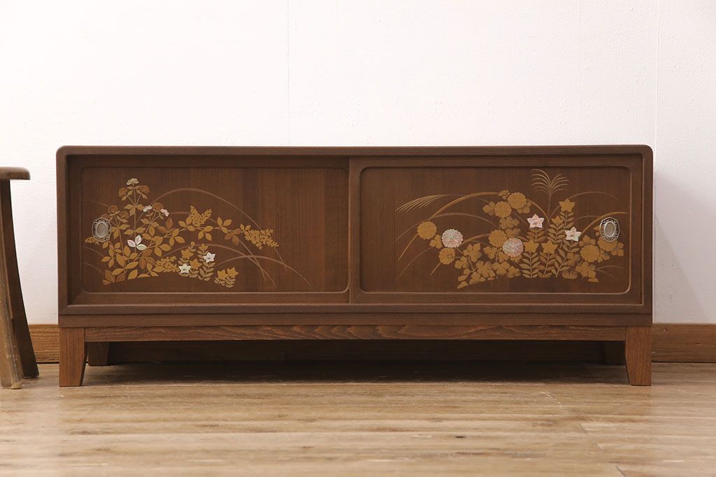 キャビネット・戸棚> テレビ台・ローボード > 中古 極上美品 脚付きリメイク 金蒔絵と螺鈿が素晴らしい!落ち着いた佇まいが魅力のローボード(テレビ台、テレビボード、収納棚、リビングボード)(R-051726)
