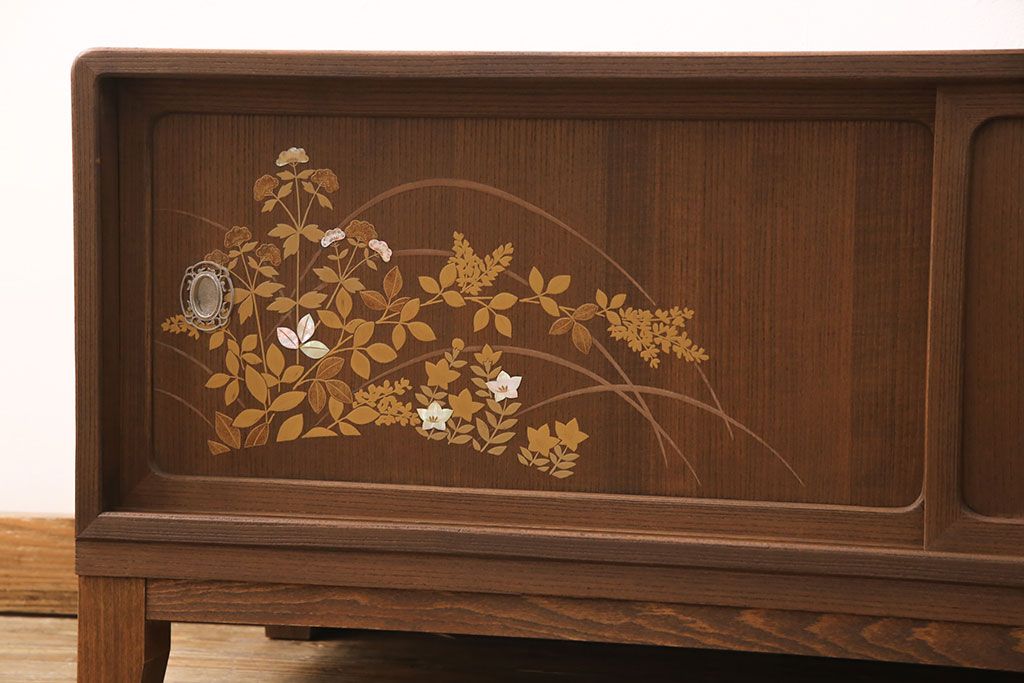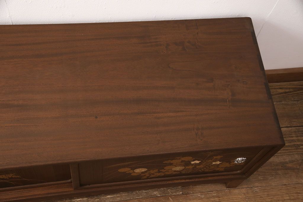 和箪笥 > 中古 極上美品 脚付きリメイク 金蒔絵と螺鈿が素晴らしい!落ち着いた佇まいが魅力のローボード(テレビ台、テレビボード、収納棚、リビングボード)(R-051726)